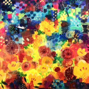「Flowers」(NO.2522 / 6号F / ケント紙(0.5ミリ厚)にアクリル絵の具不透明 / 額付きー額はガラスでなくアクリル板付きです-額は取り寄せになりますので1週間ほどお待ち願います / 安本太ん 芸大卒 / 画像をクリックすると拡大画像になります