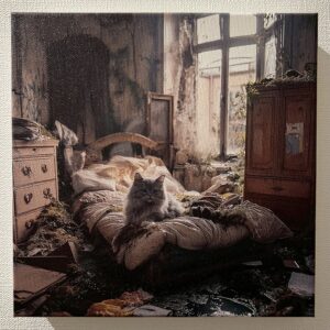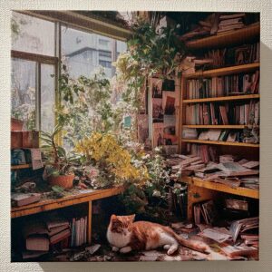 ネコの置物と多肉植物寄せ植え(PP-009-4・半切)