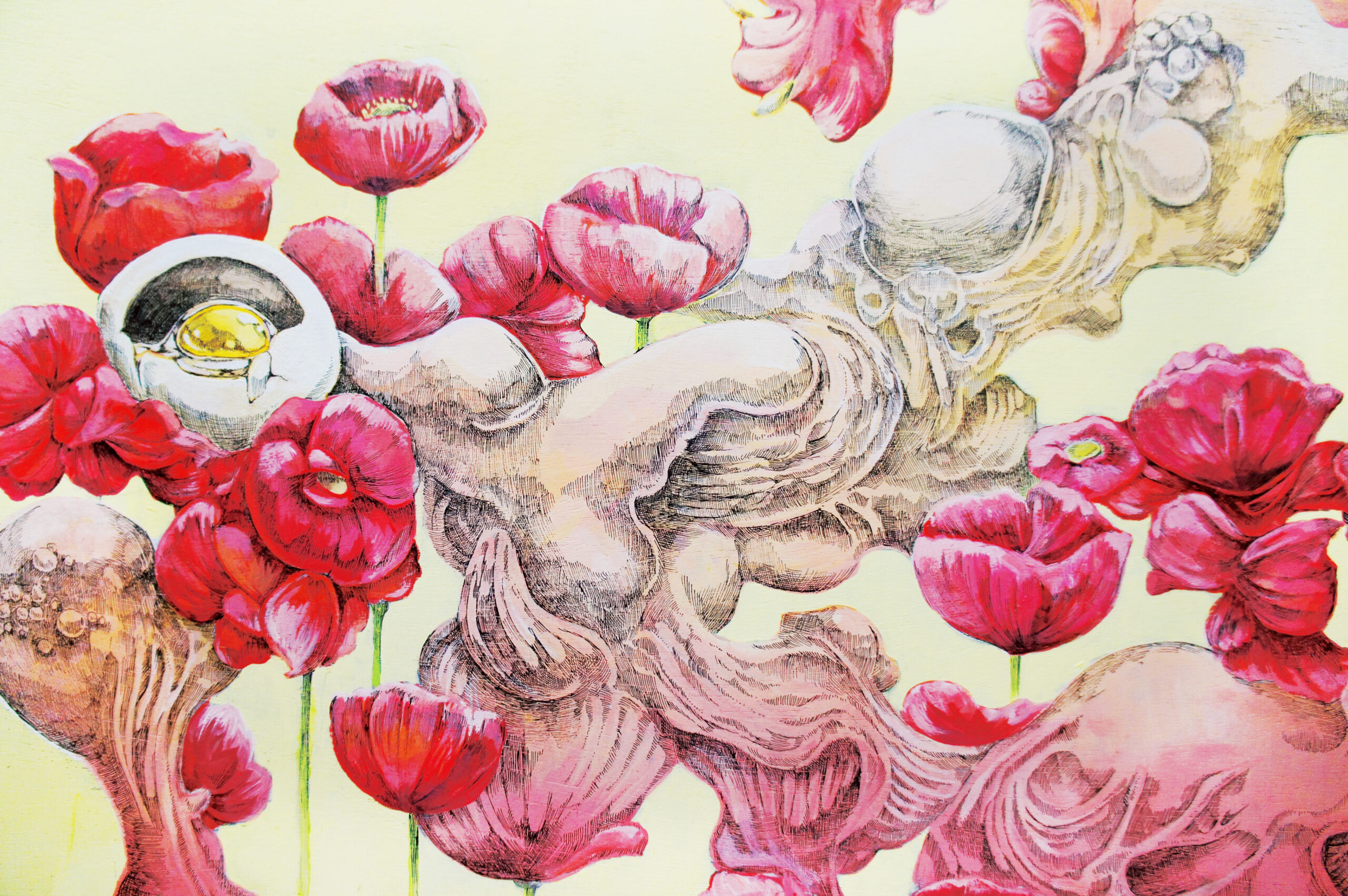 幻覚を見せるOpiumをモチーフに、ゆめうつつをテーマとして制作しました。インテリアとしても、コレクションとしても楽しめる作品だと思います。