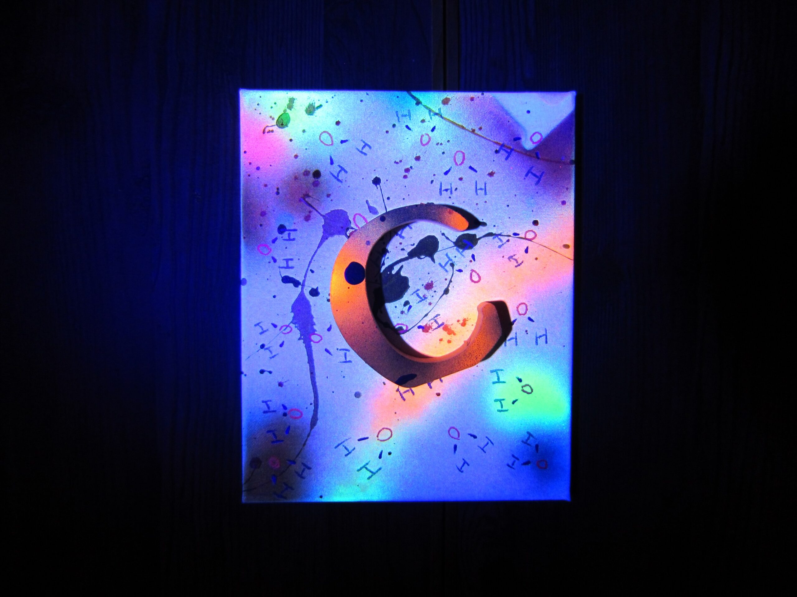キャンバスのH2Oは人間に必要な水を表していますが・・・CとOとOが繋がるとどうなるのか?