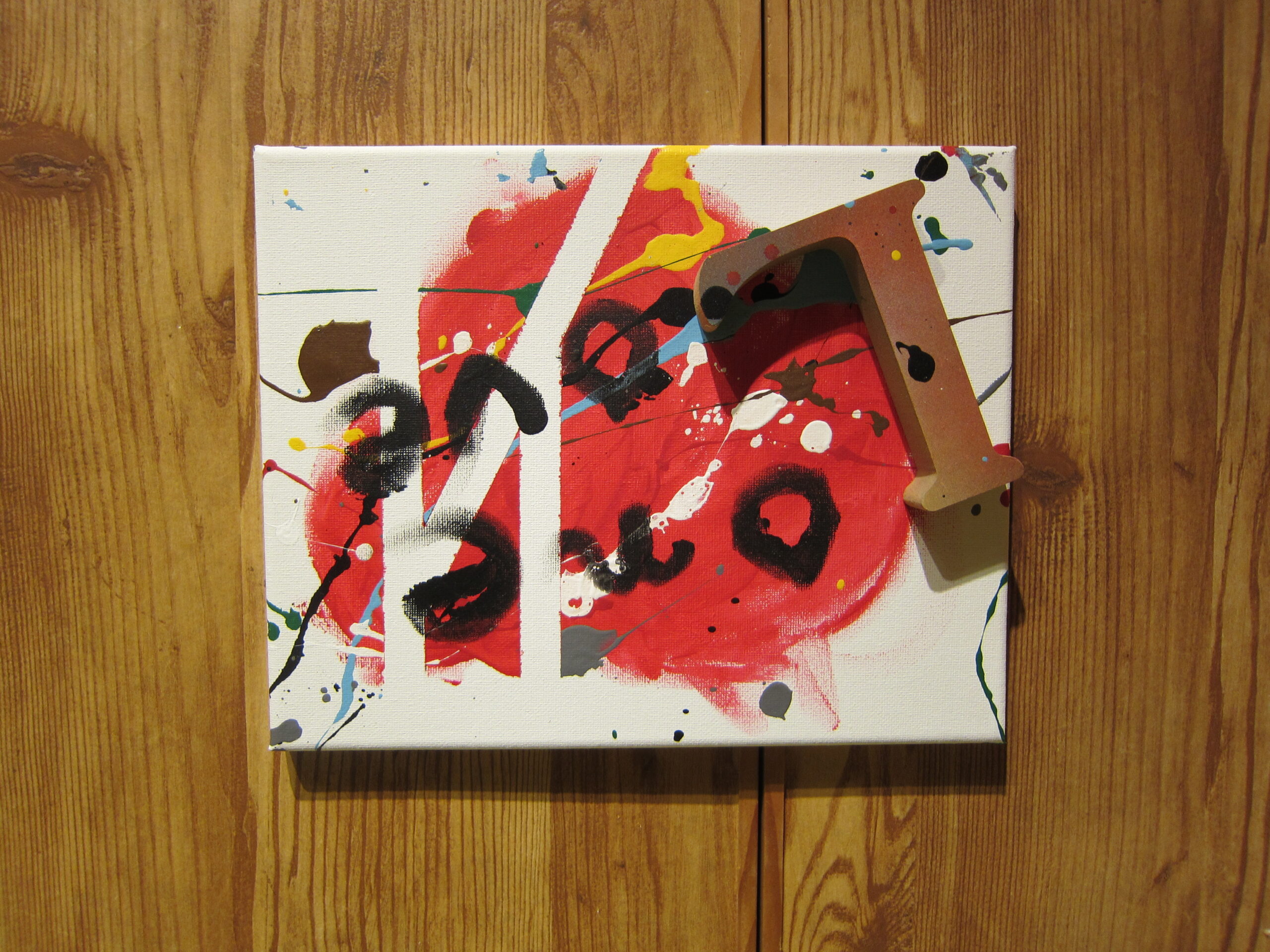 ※作品により異なりますがこのシリーズはキャンバス・木材・ロウ・スプレー・アクリル絵の具・マーカー・ペイント・折り紙・鋲などを使用しています