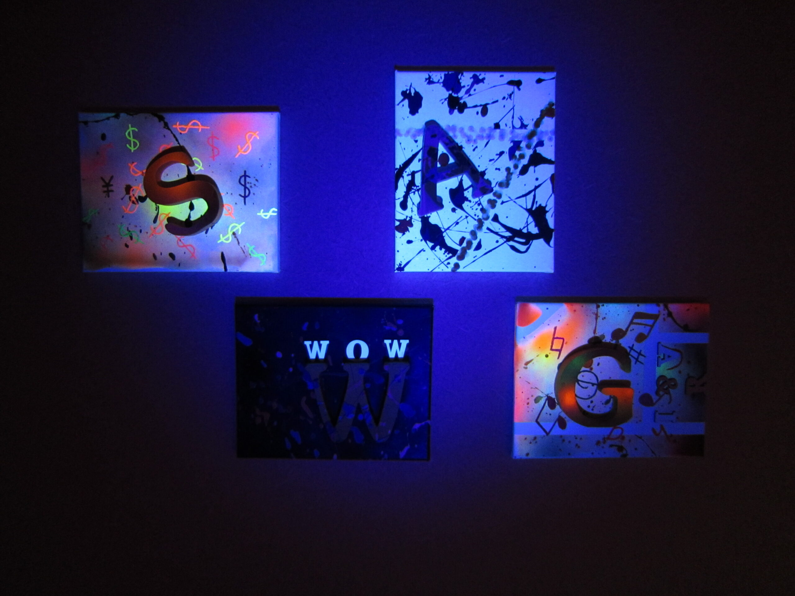 ブラックライトを作品に当てると