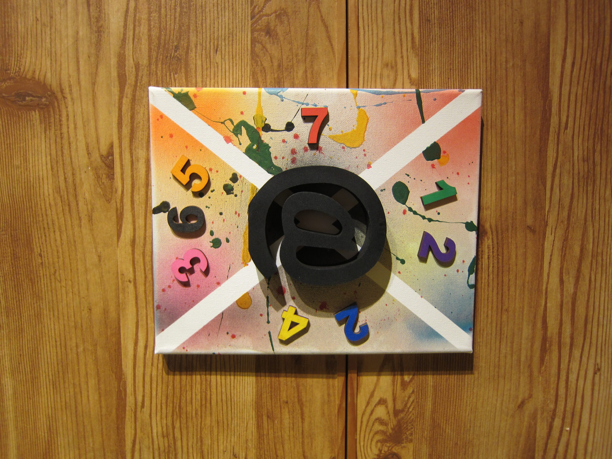 @1 yearは1年をイメージした作品でキャンバスの色は春夏秋冬を数字は24時間・7日間・12ヶ月・365日を表しています