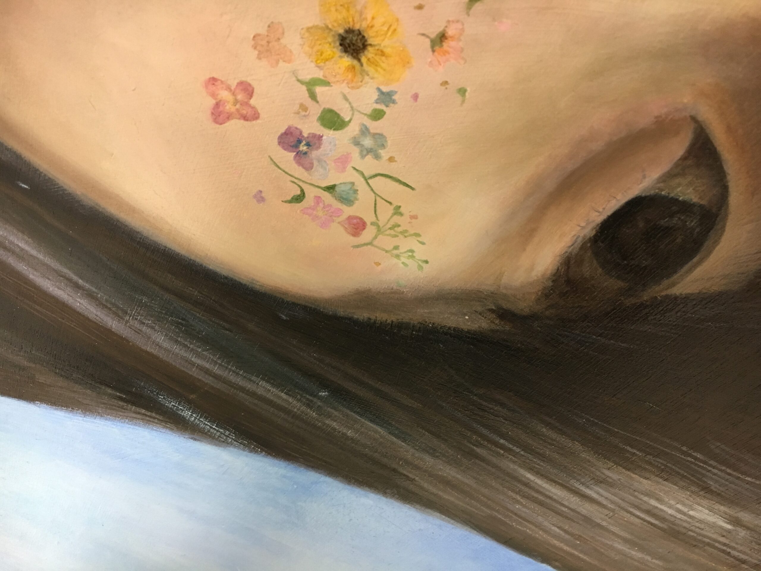 コンプレックスも、自分次第で長所となり得るという事を自らの経験を元に表現致しました。この作品ではそれがそばかすにあたります。なお、自画像ではございません。