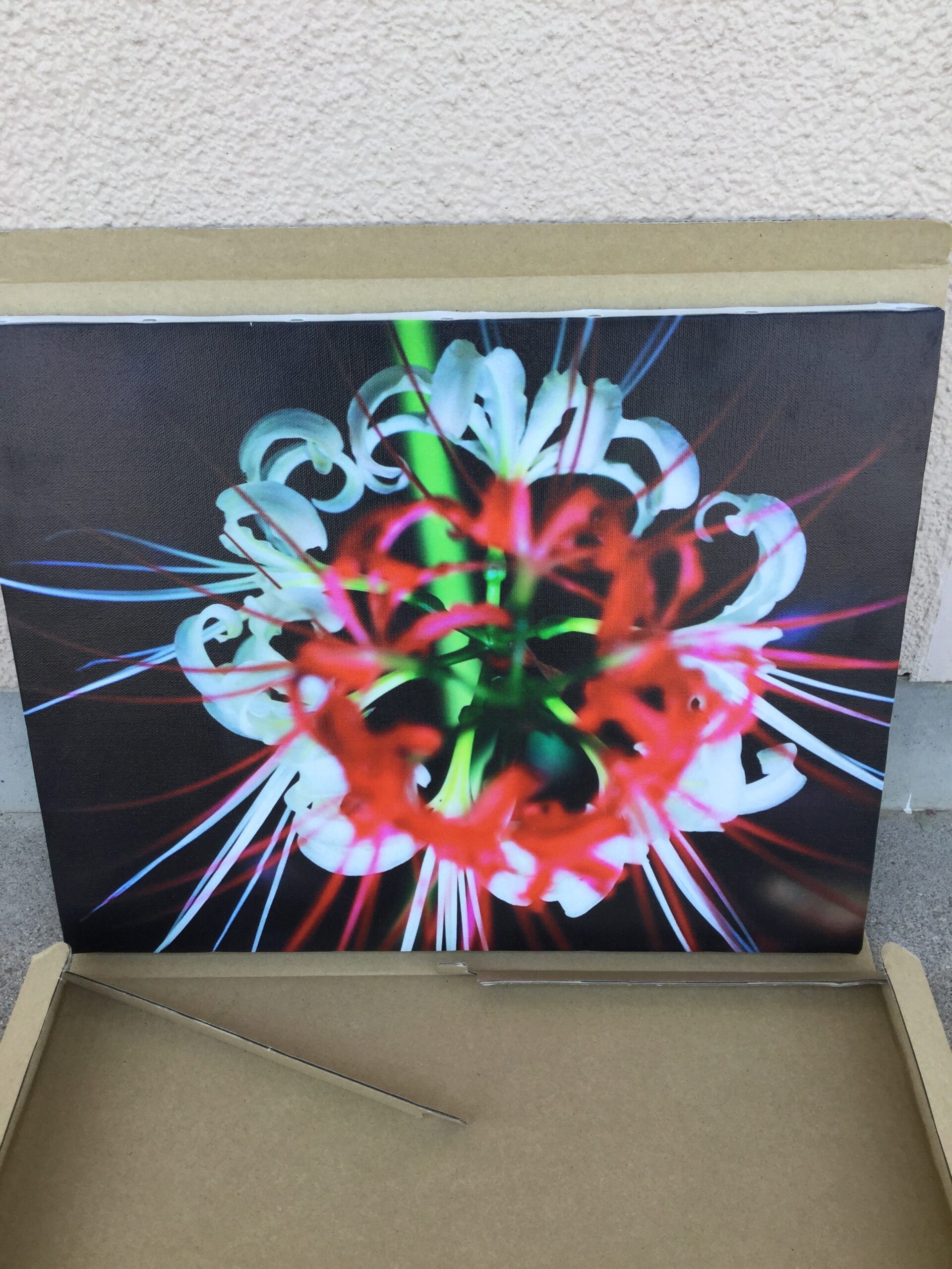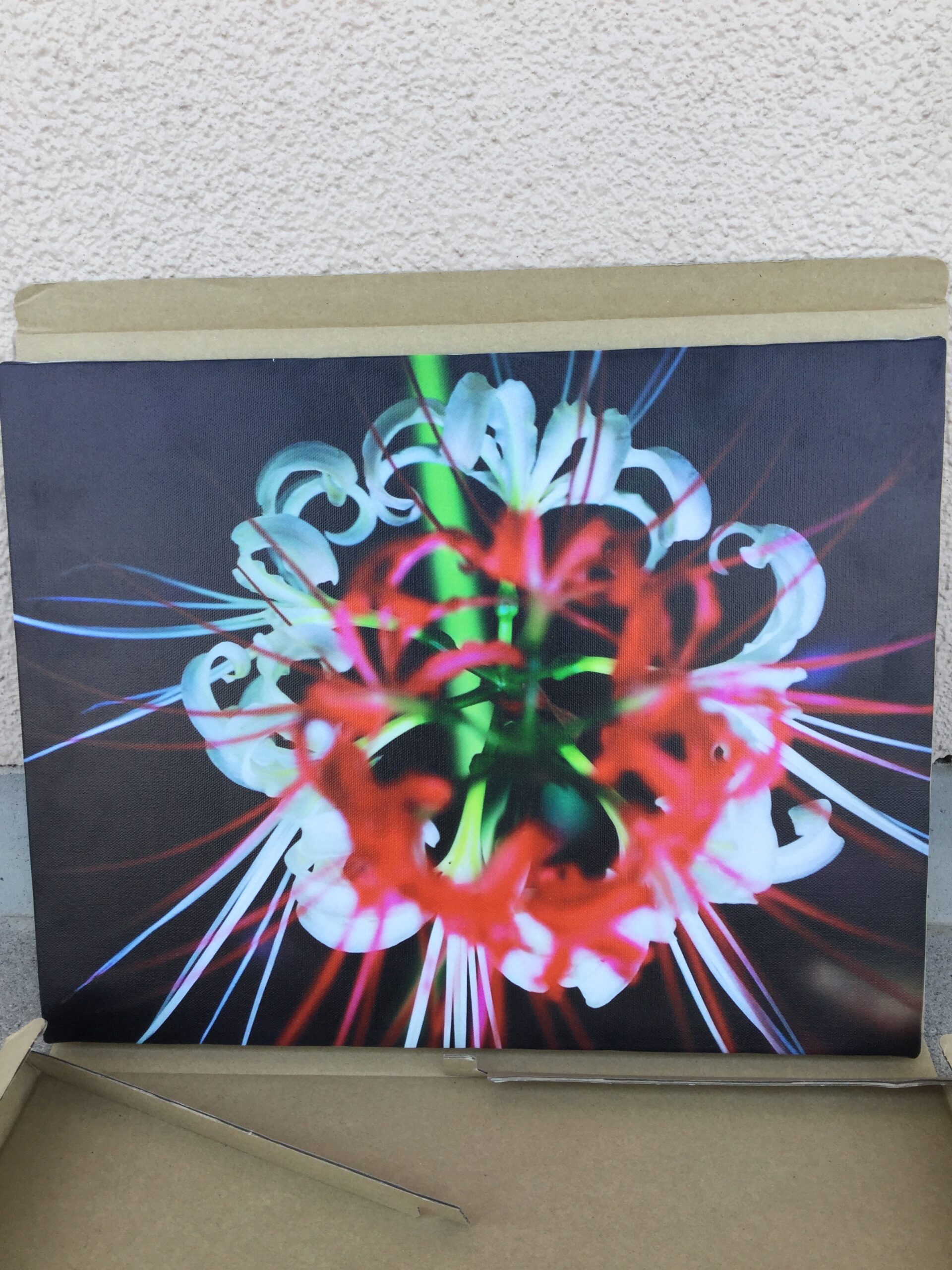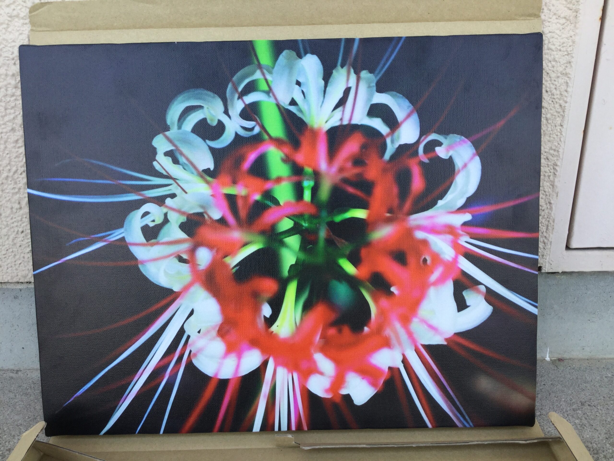 彼岸花の写真をキャンバスにプリントしています。一見 すると油絵に見えるように作っています。
