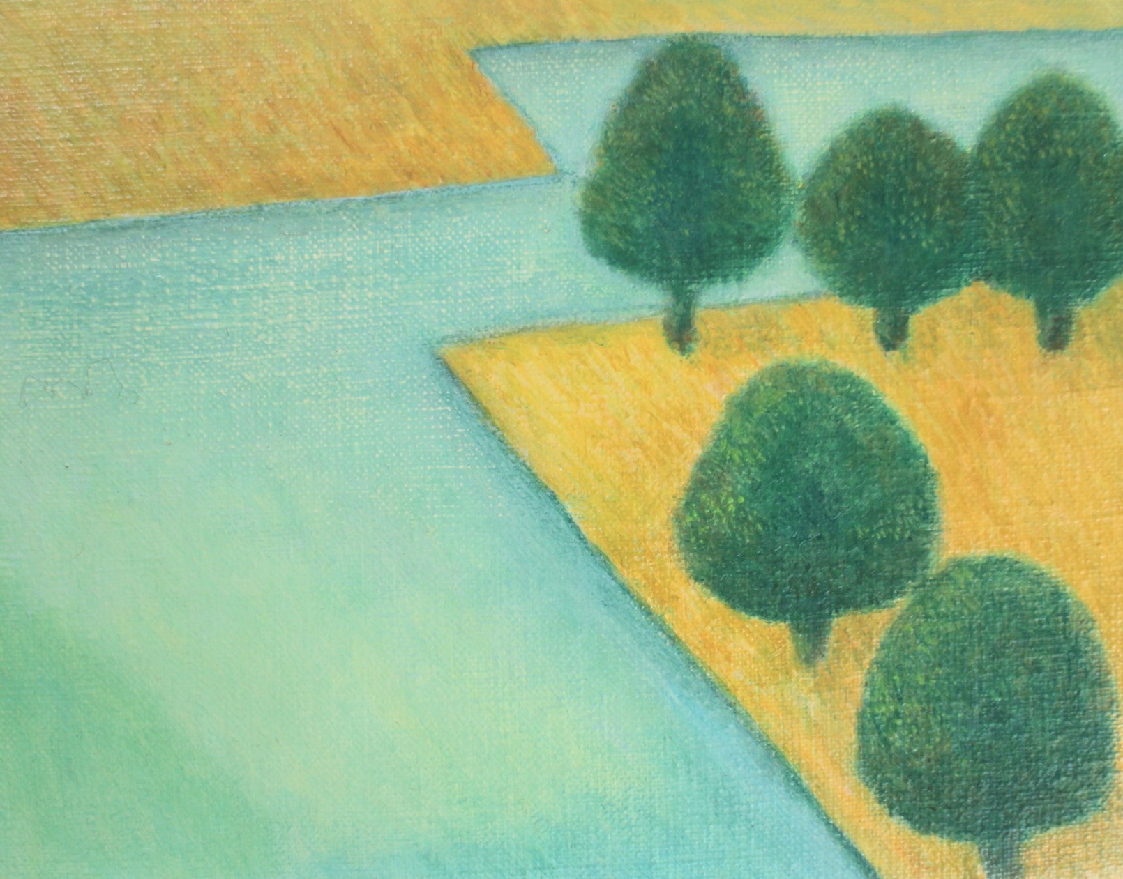 迷路のような住宅地の風景画。