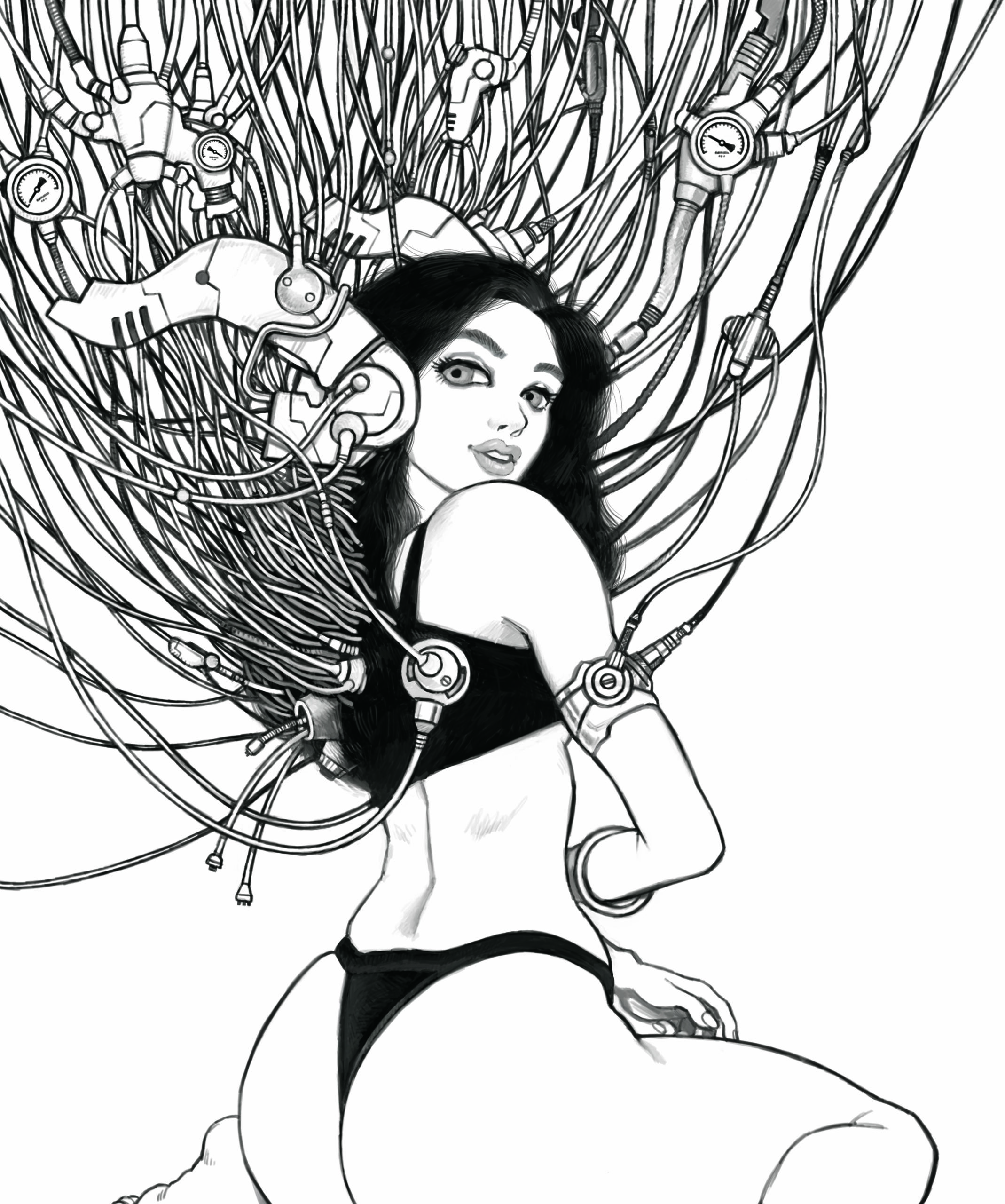 モデル、ヨヴァンナ・ベンチュラさんのイメージで描きました。昔のSFに出てくるセクシーな女性…みたいな感じでしょうか。