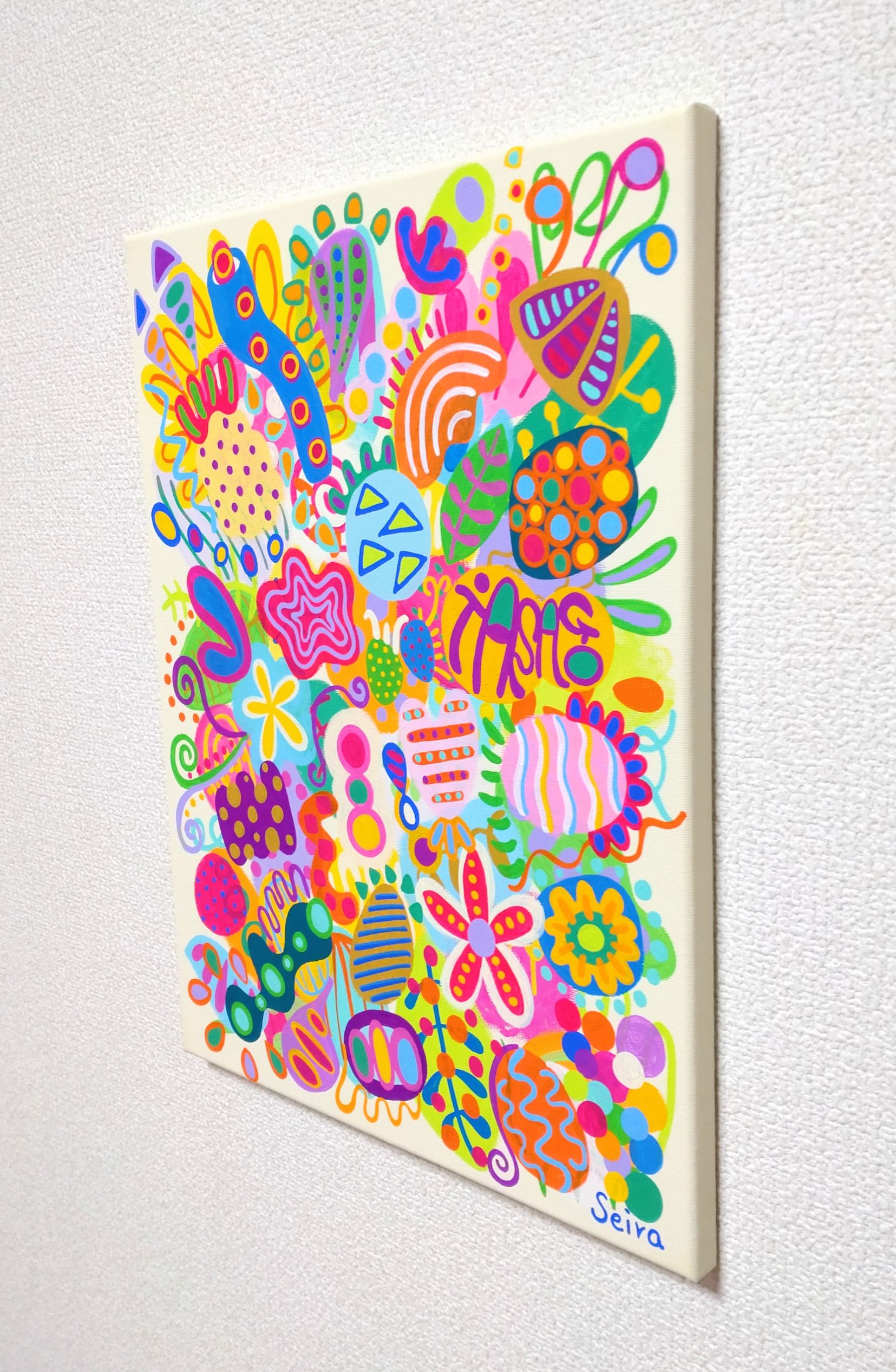 お寿司がお好きな方、お花がお好きな方、カラフルな作品をお探しの方、お部屋のイメージを変えたい方におススメです。