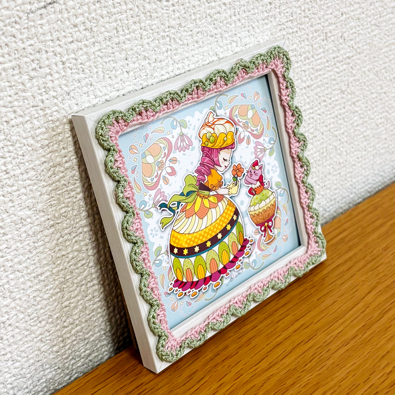 デジタルイラストとかぎ針編みを組み合わせた、額装作品です。
