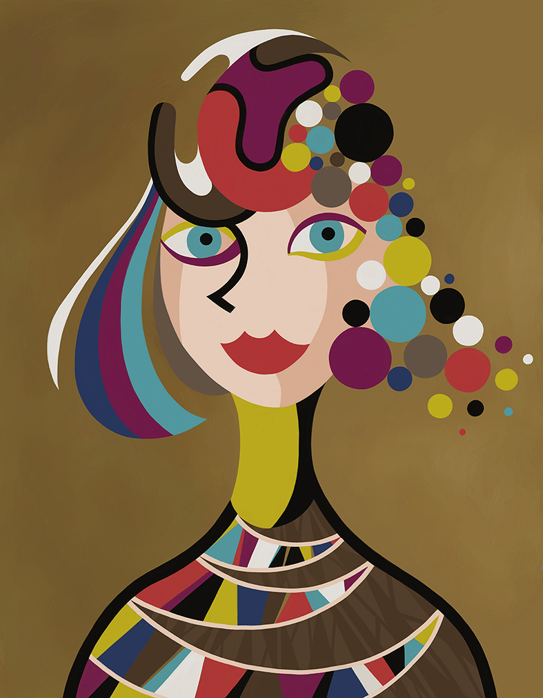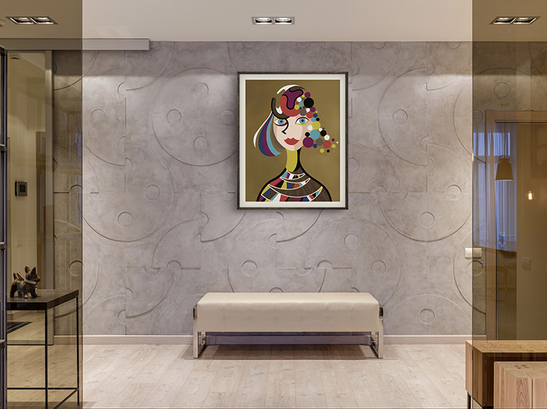 被写体の女性を抽象的に変換し、グラフィカルな色の組み合わせで表現したシリーズ作品の中の1点。こちらは額装での販売となります。尚、サイズは適度な大きさでの販売になりますが、デジタル作品につき可能な限りサイズ変更が可能です。価格等は変動致しますがご相談ください。