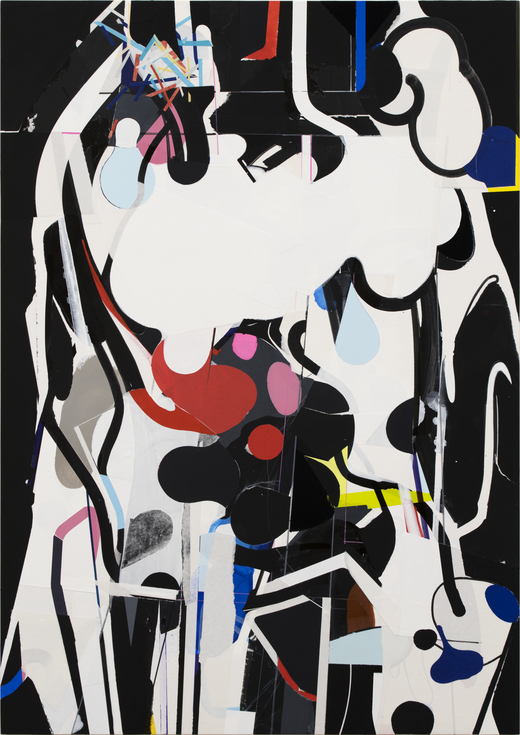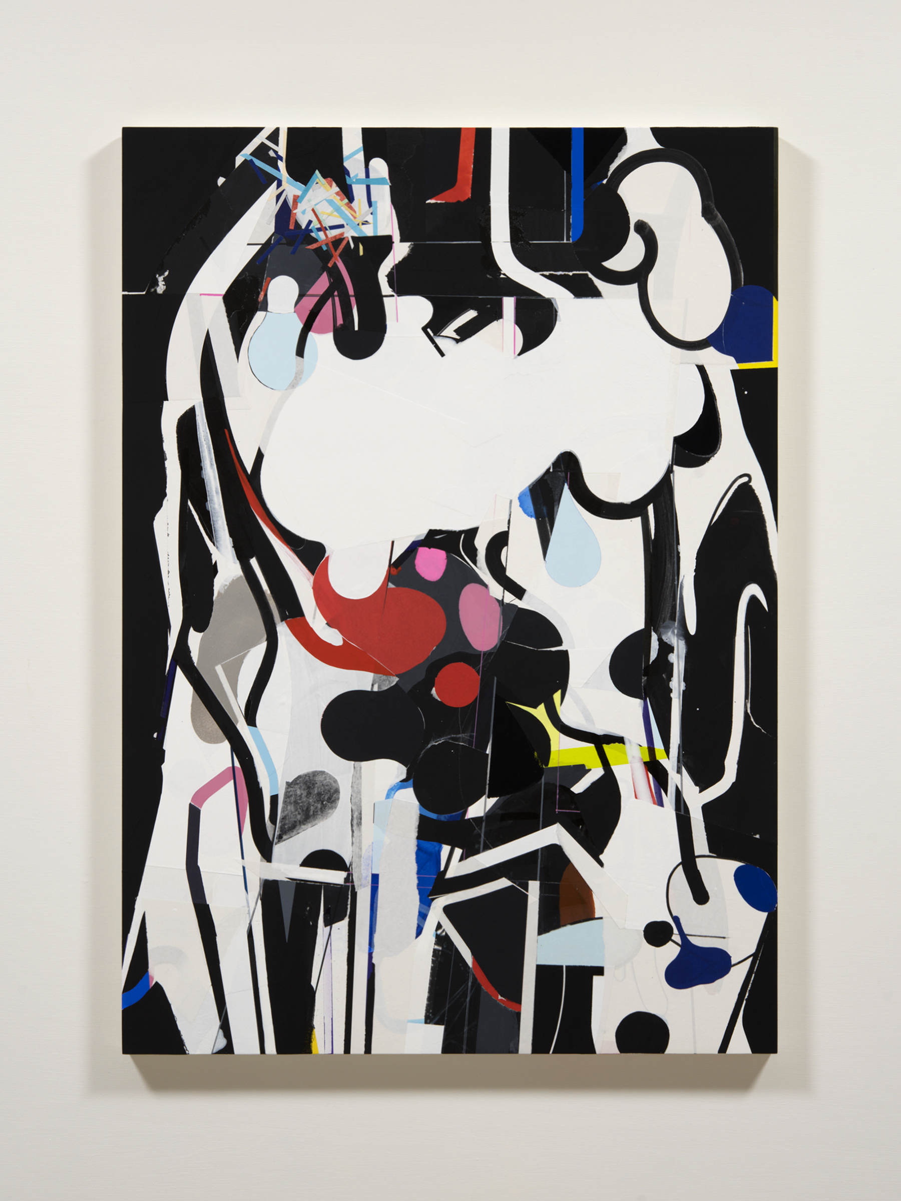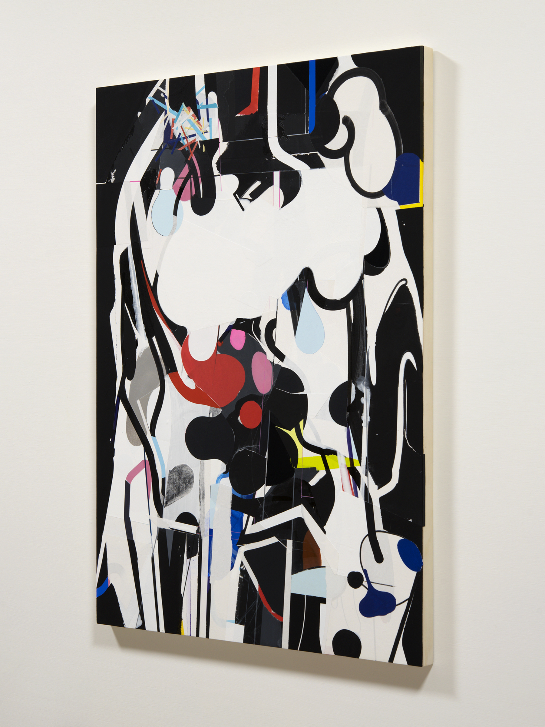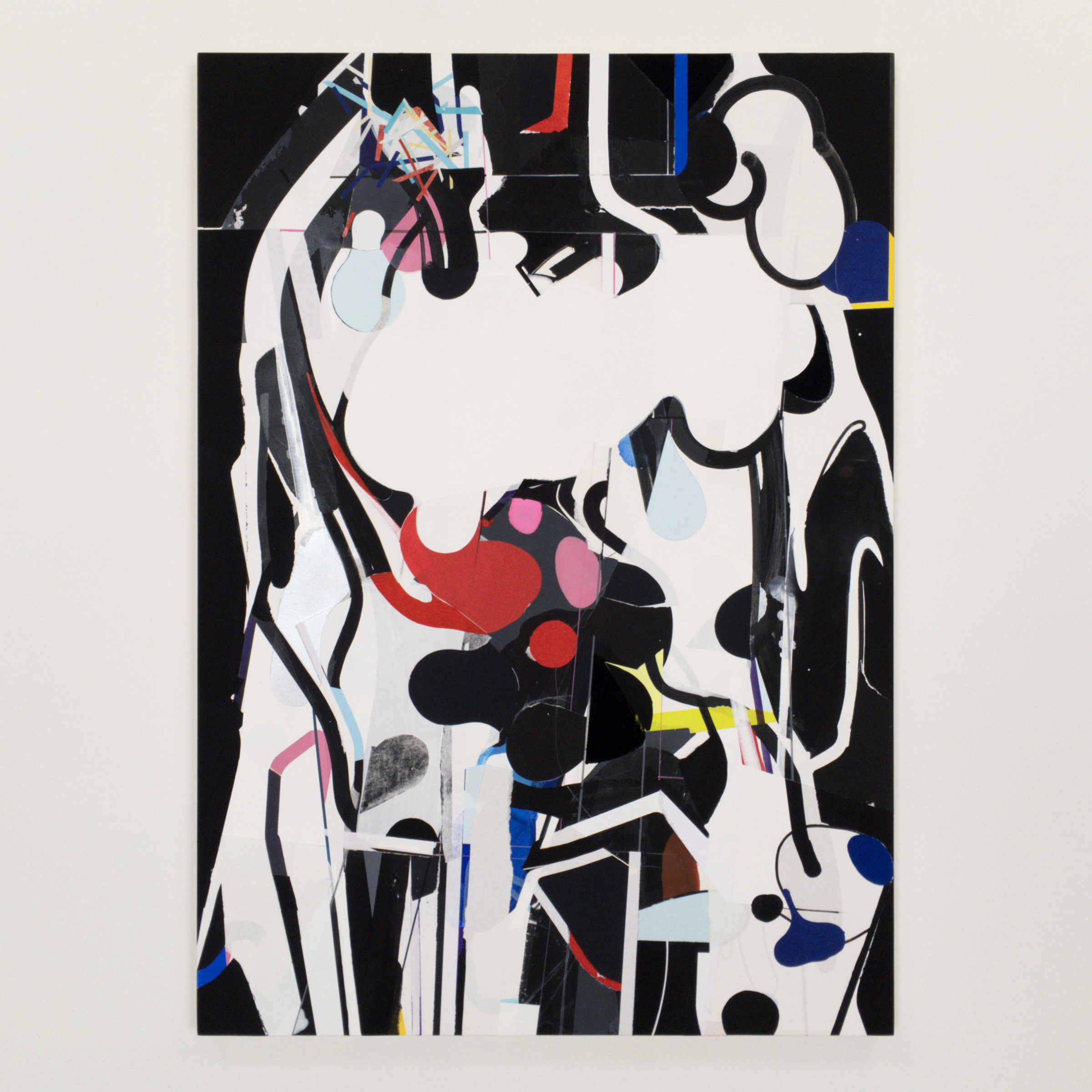 木製パネルにアクリル絵具、マーカー、紙と印刷された紙を使用したコラージュで制作されました。