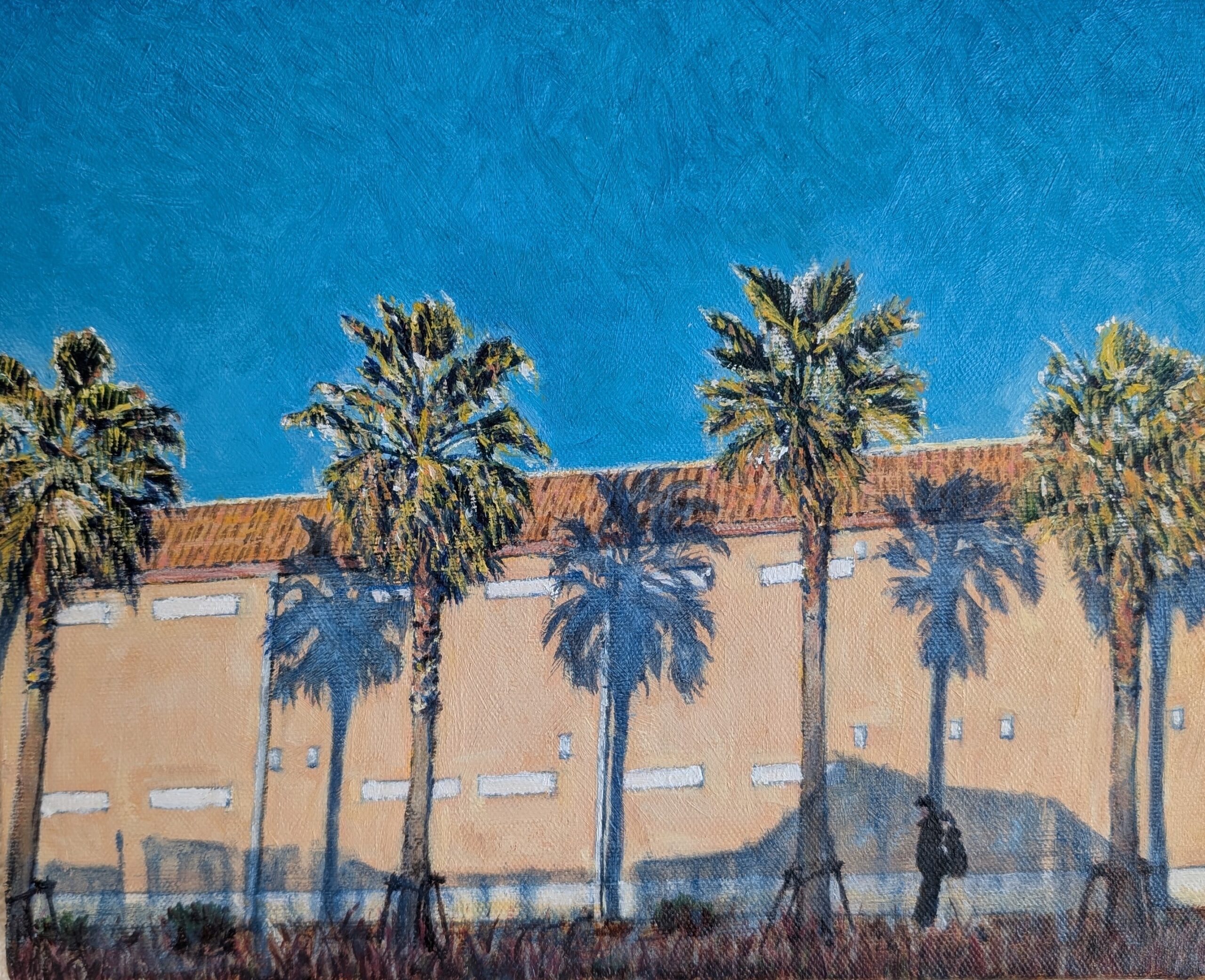 晴天の冬のある日。季節外れに、キラキラとヤシの木が輝いていた。深い影に、冬を思い出した。