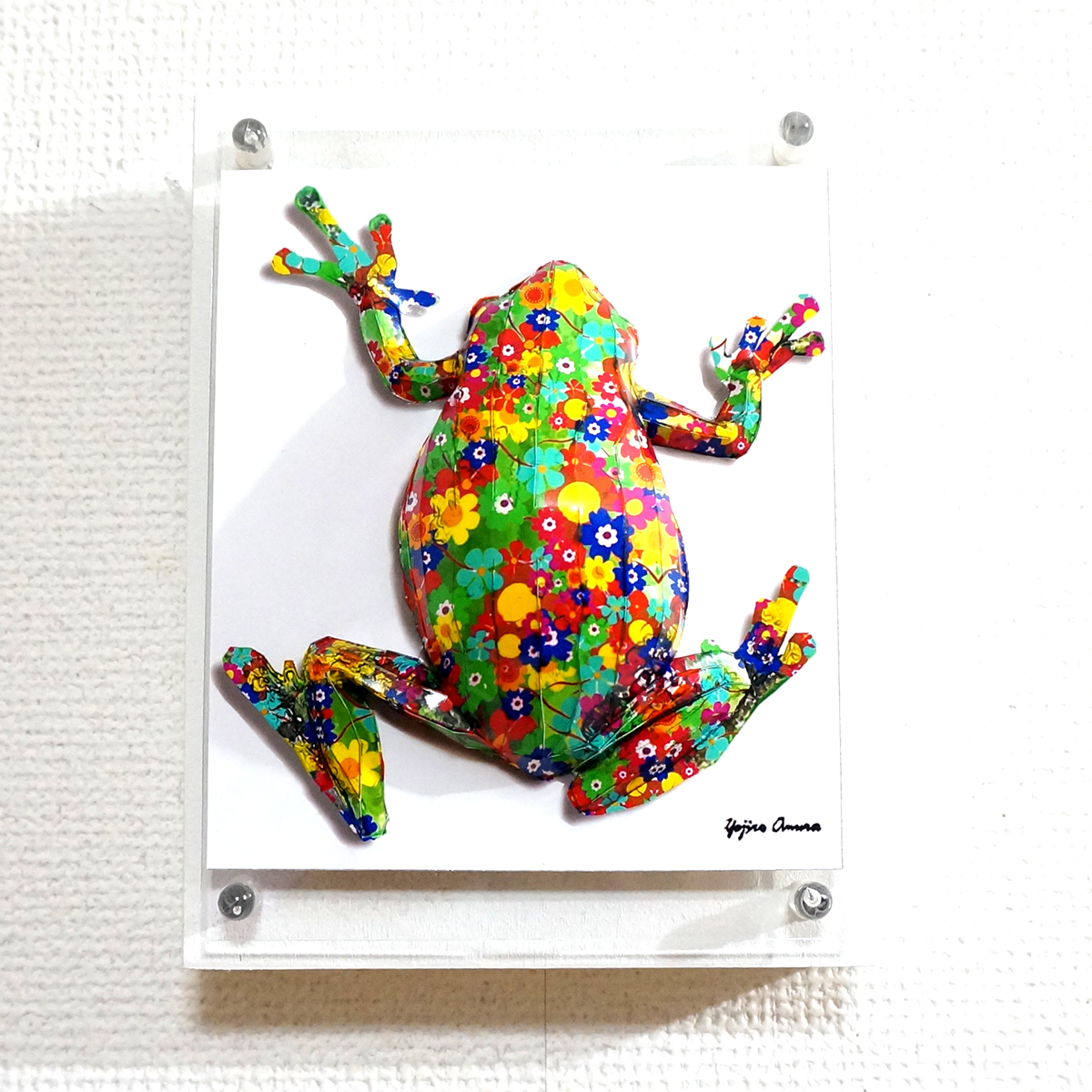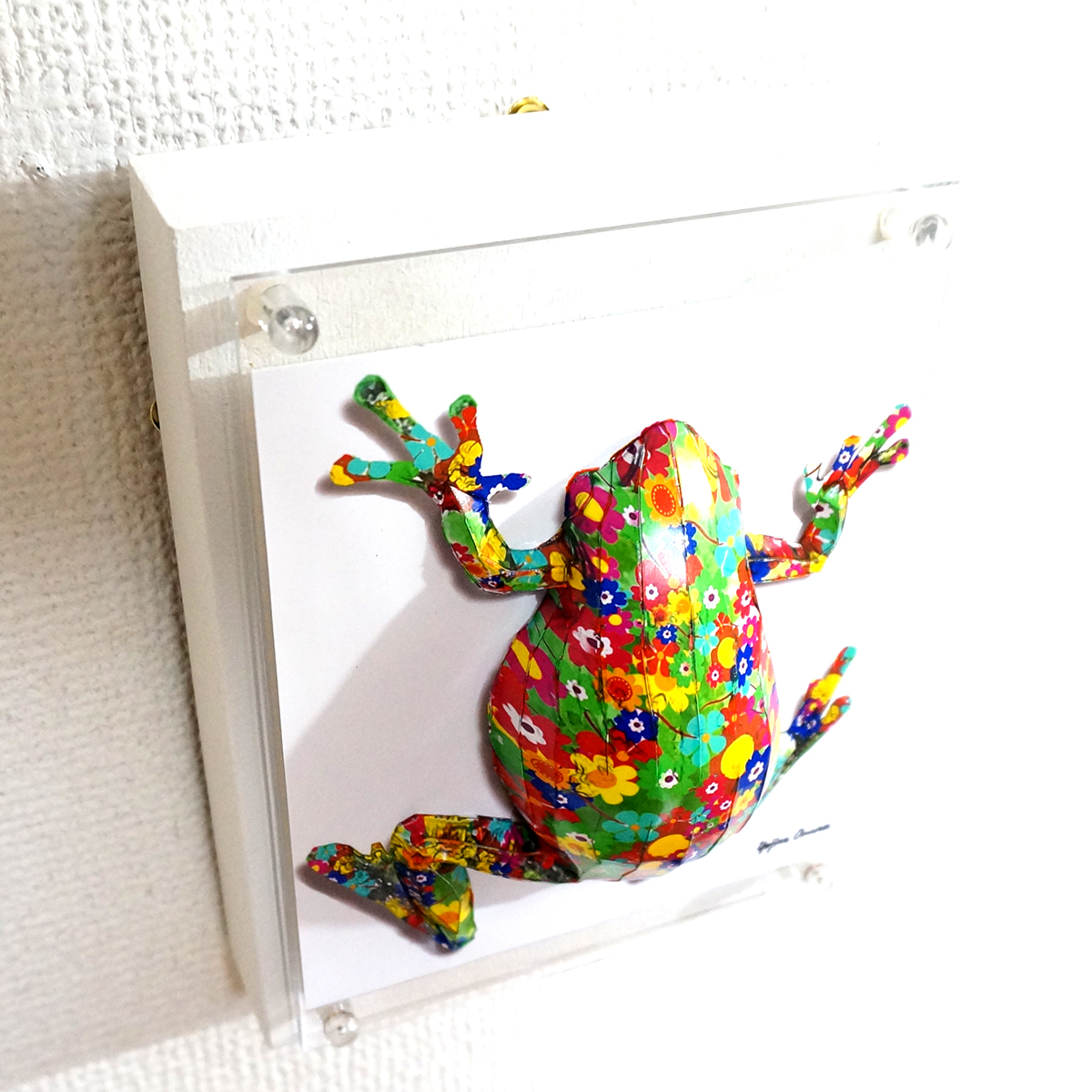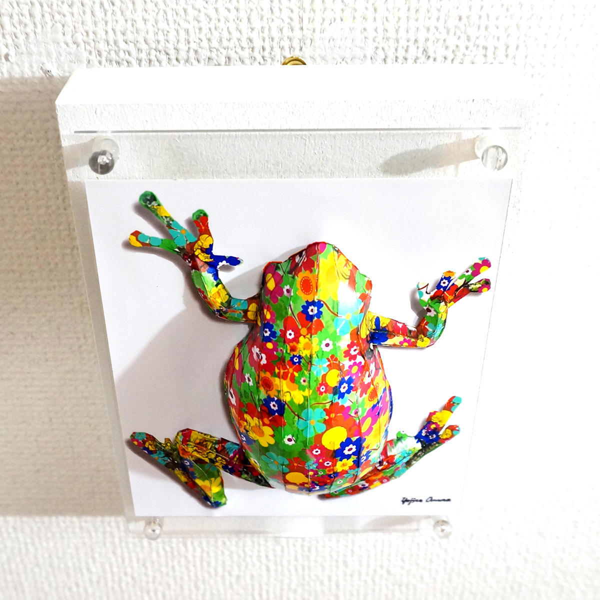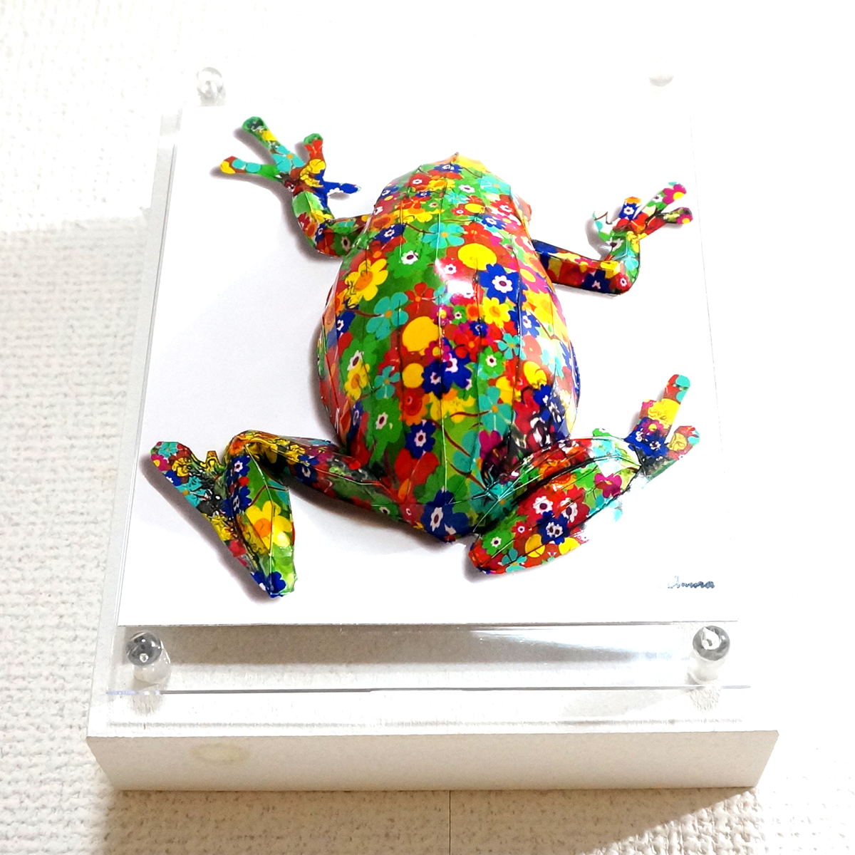 丸々と太ったカエルのボディーにふんだんに彩られた花柄が美しい、ポップなイメージの作品に仕上がっております。