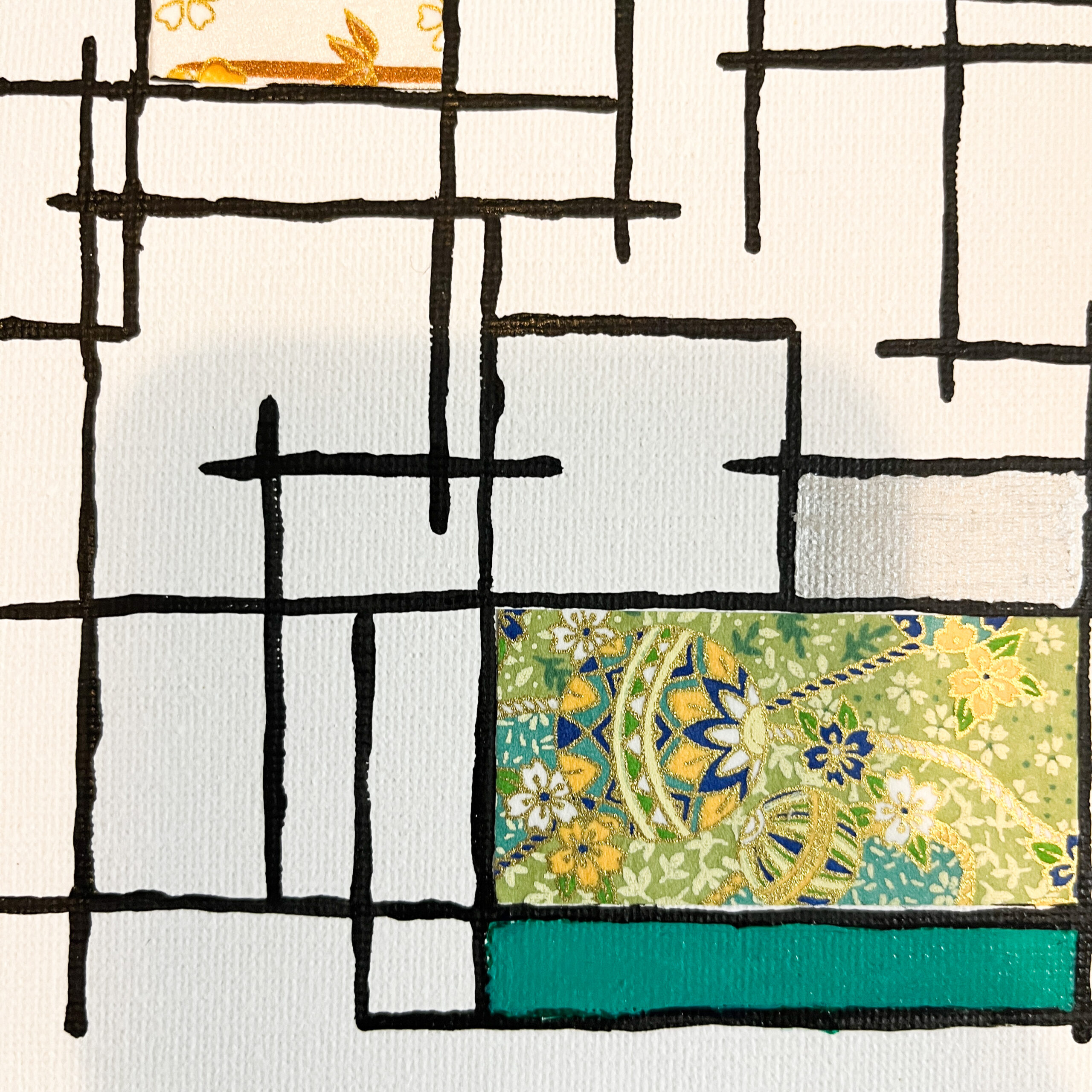 キュビズムの巨匠モンドリアンの作風と侘び寂びを感じてもらえたら嬉しいです。