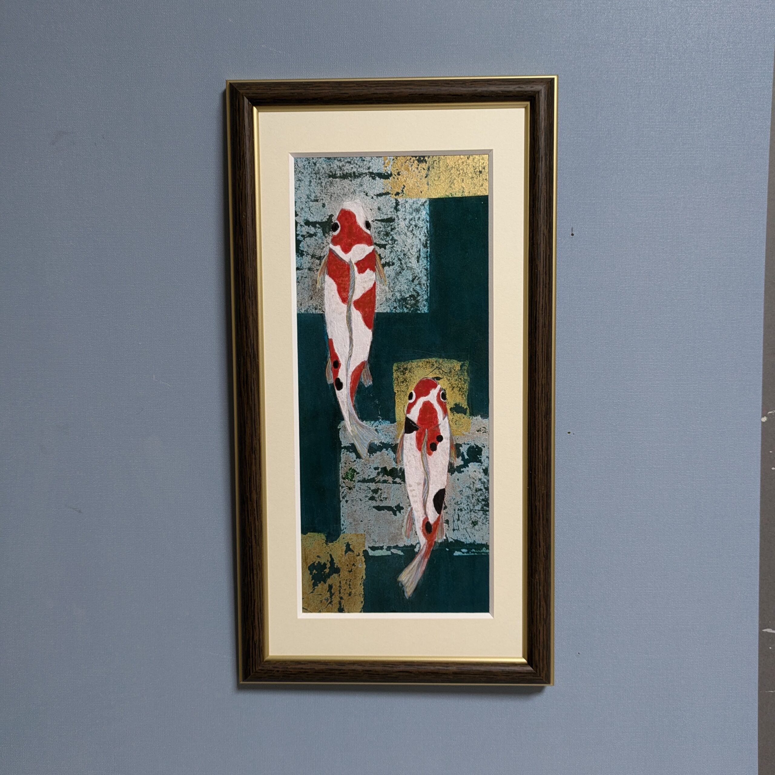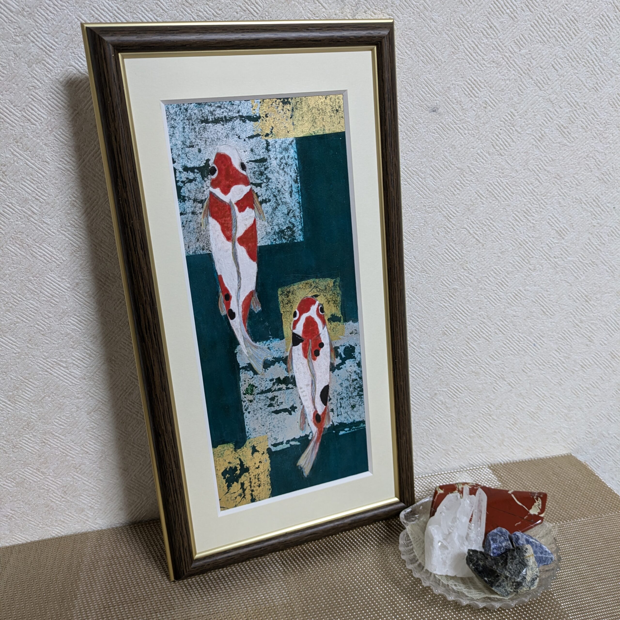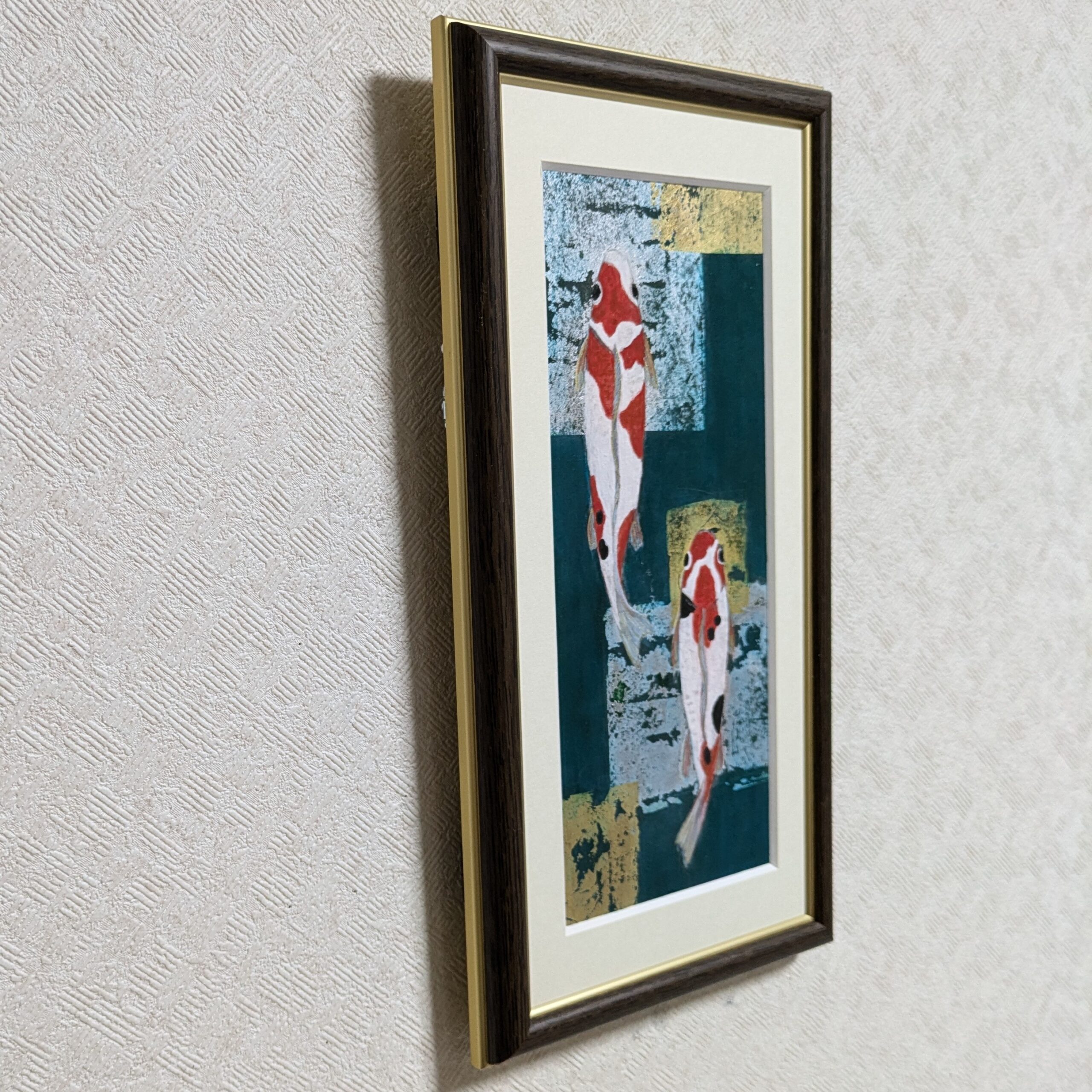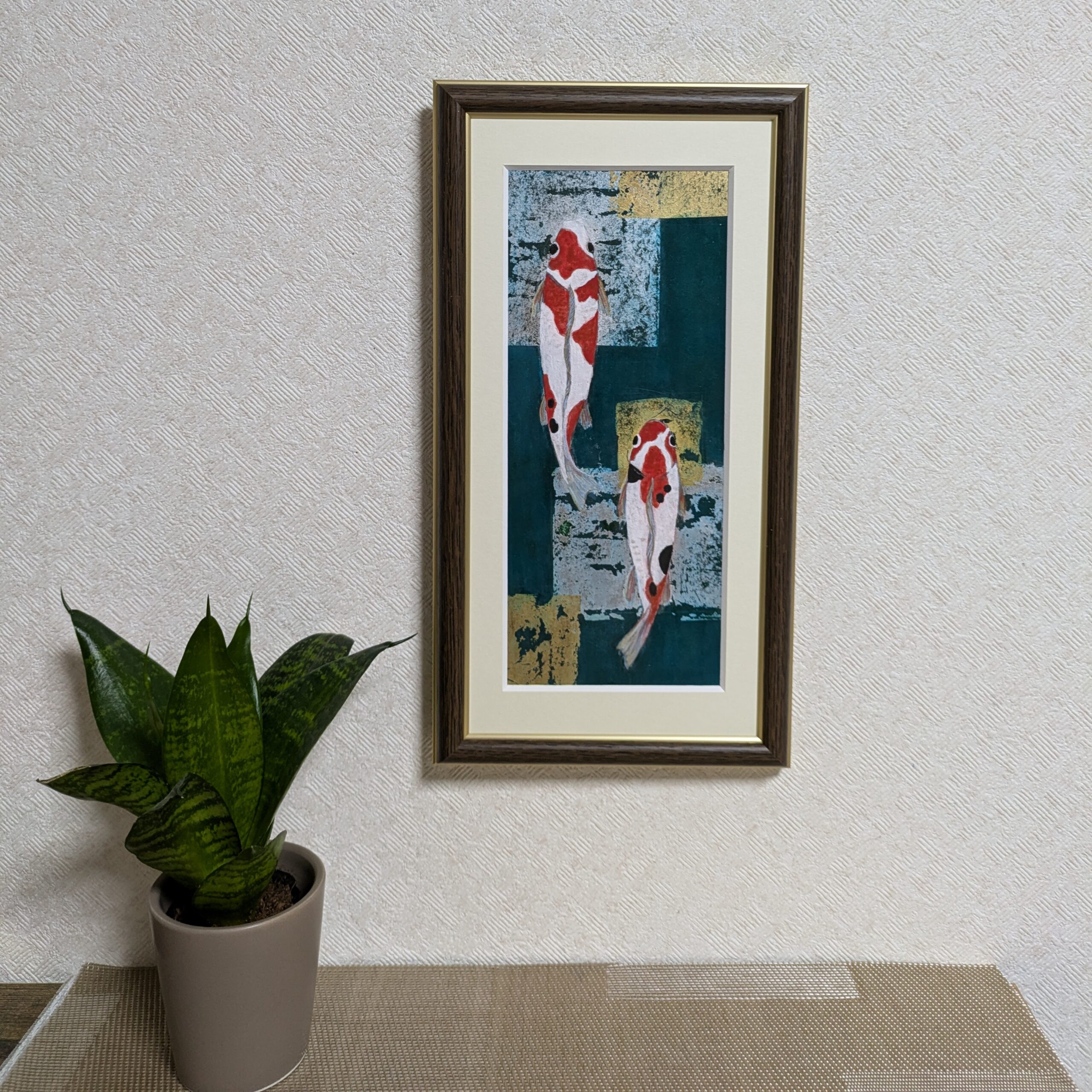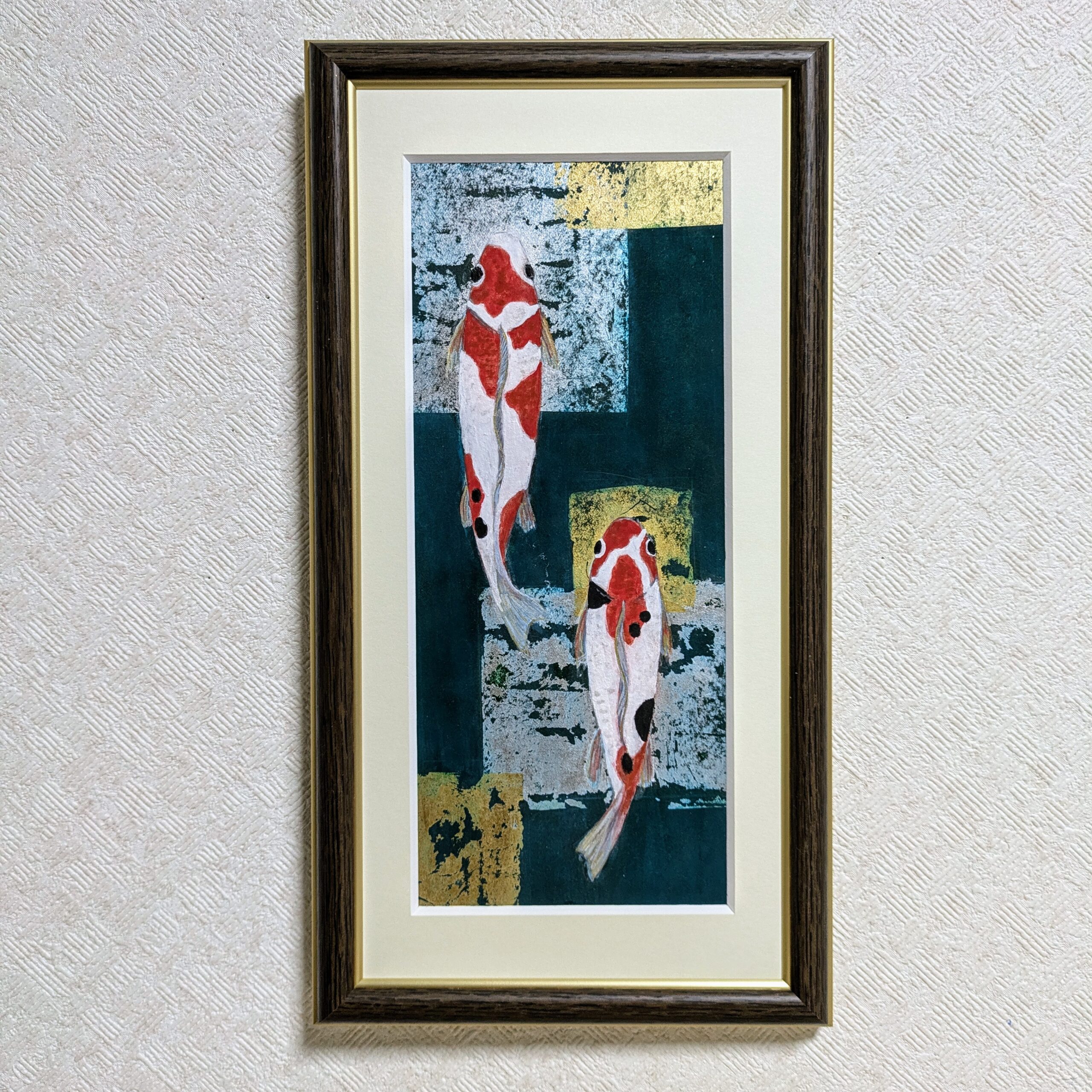 子供の成長を願う端午の節句の鯉のぼりに因んで、並んで泳ぐ錦鯉を描きました。