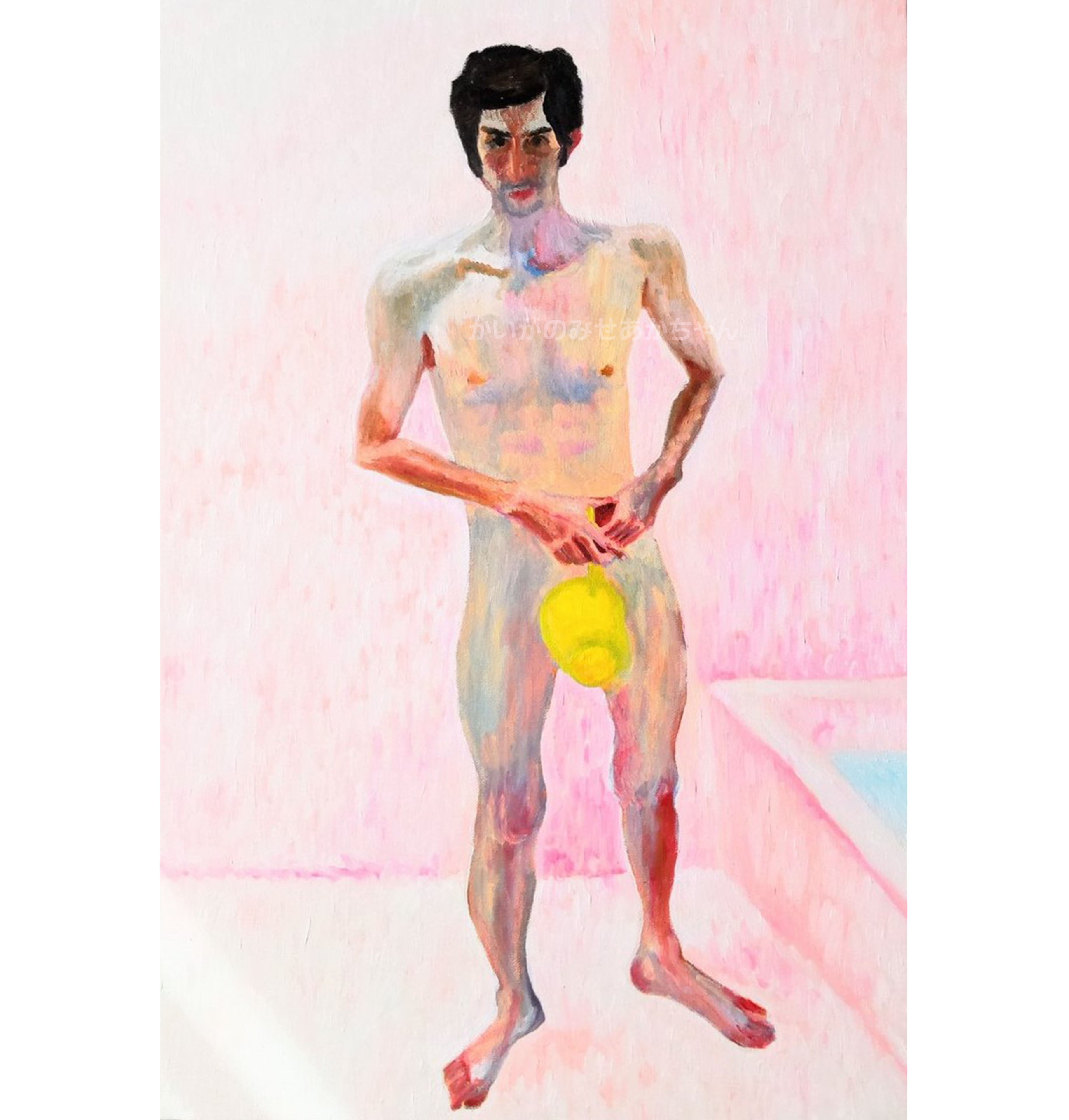 41×61㎝「浴室に立つ裸の男」M12・原画・油彩
