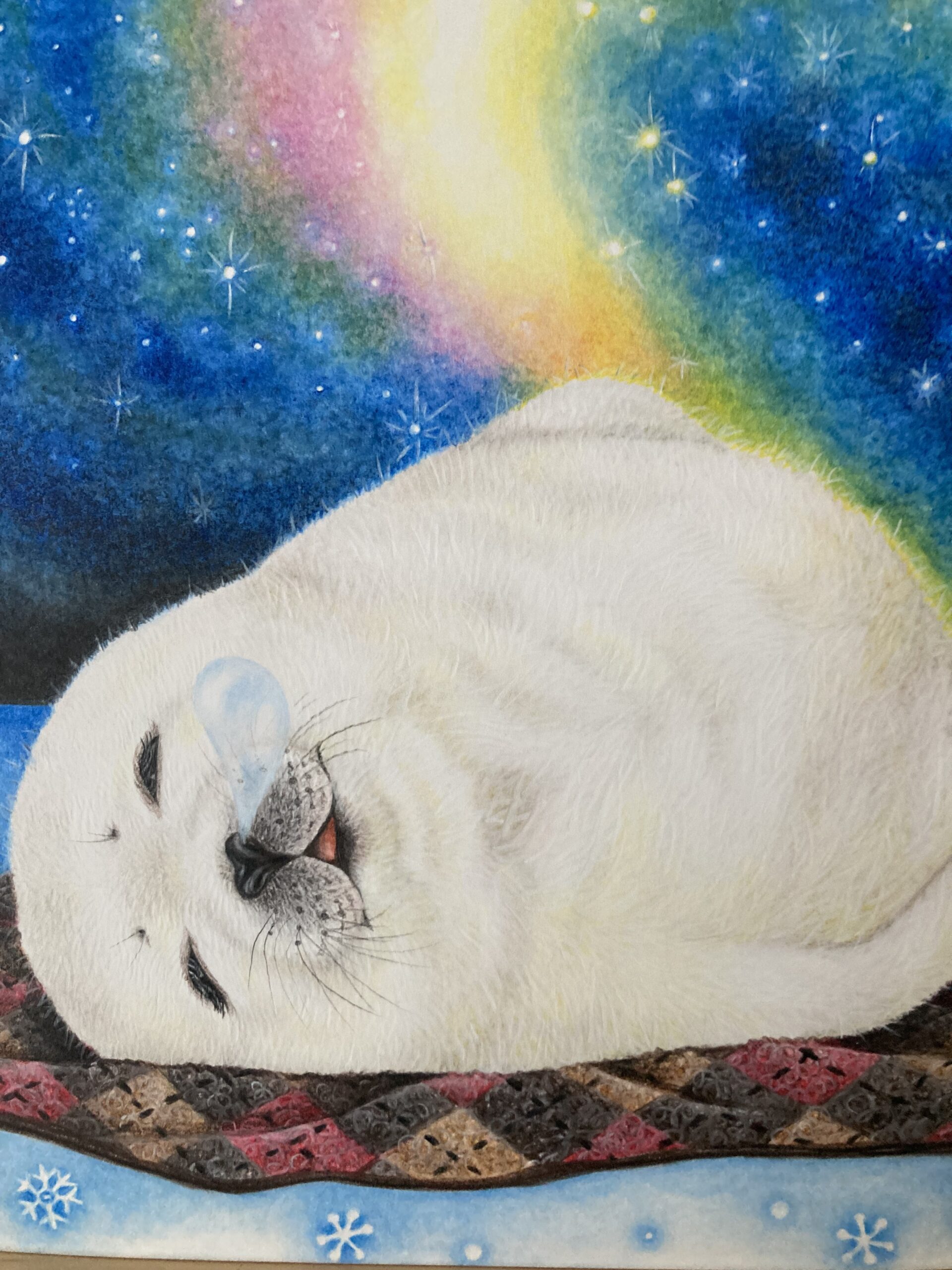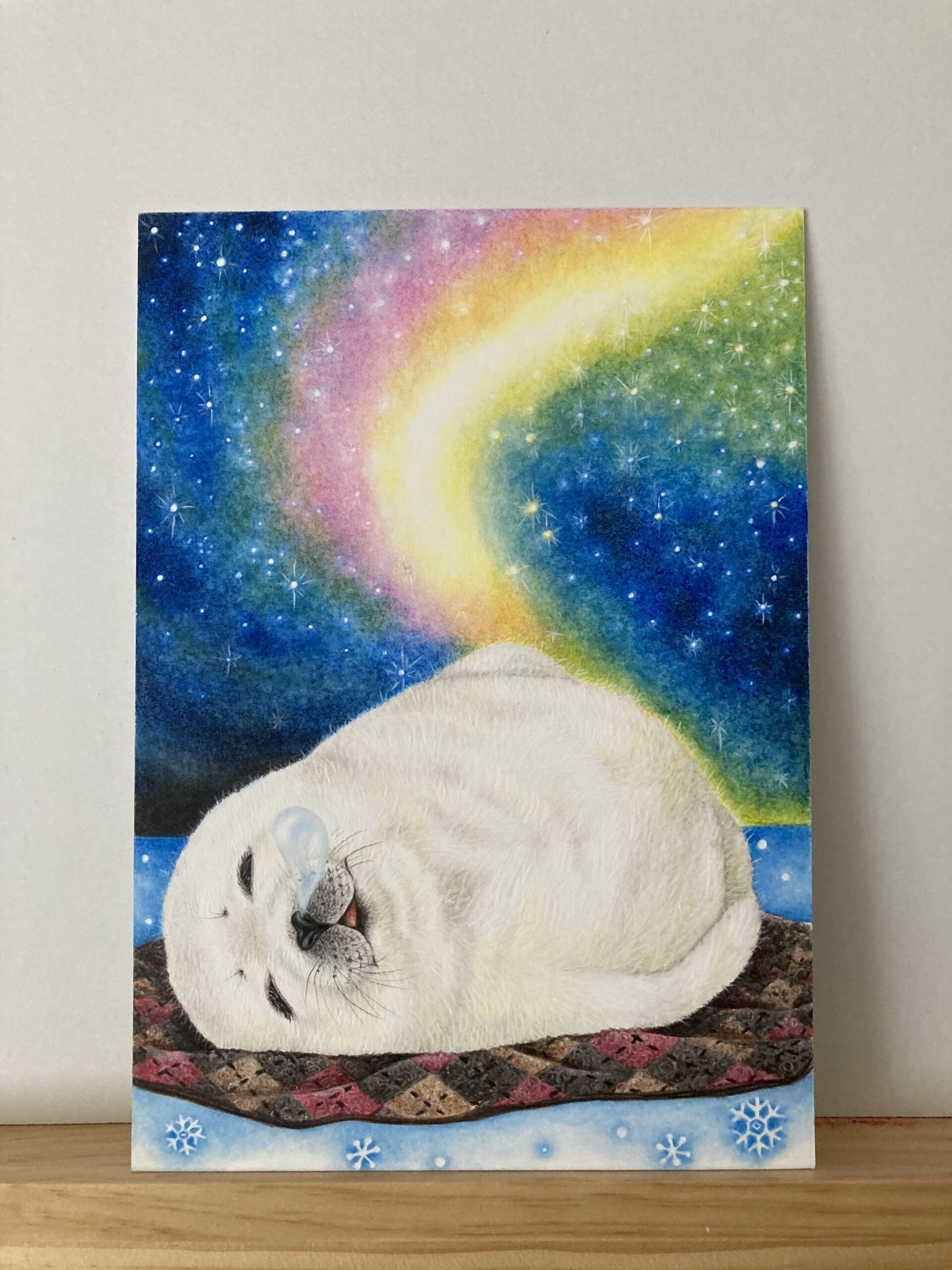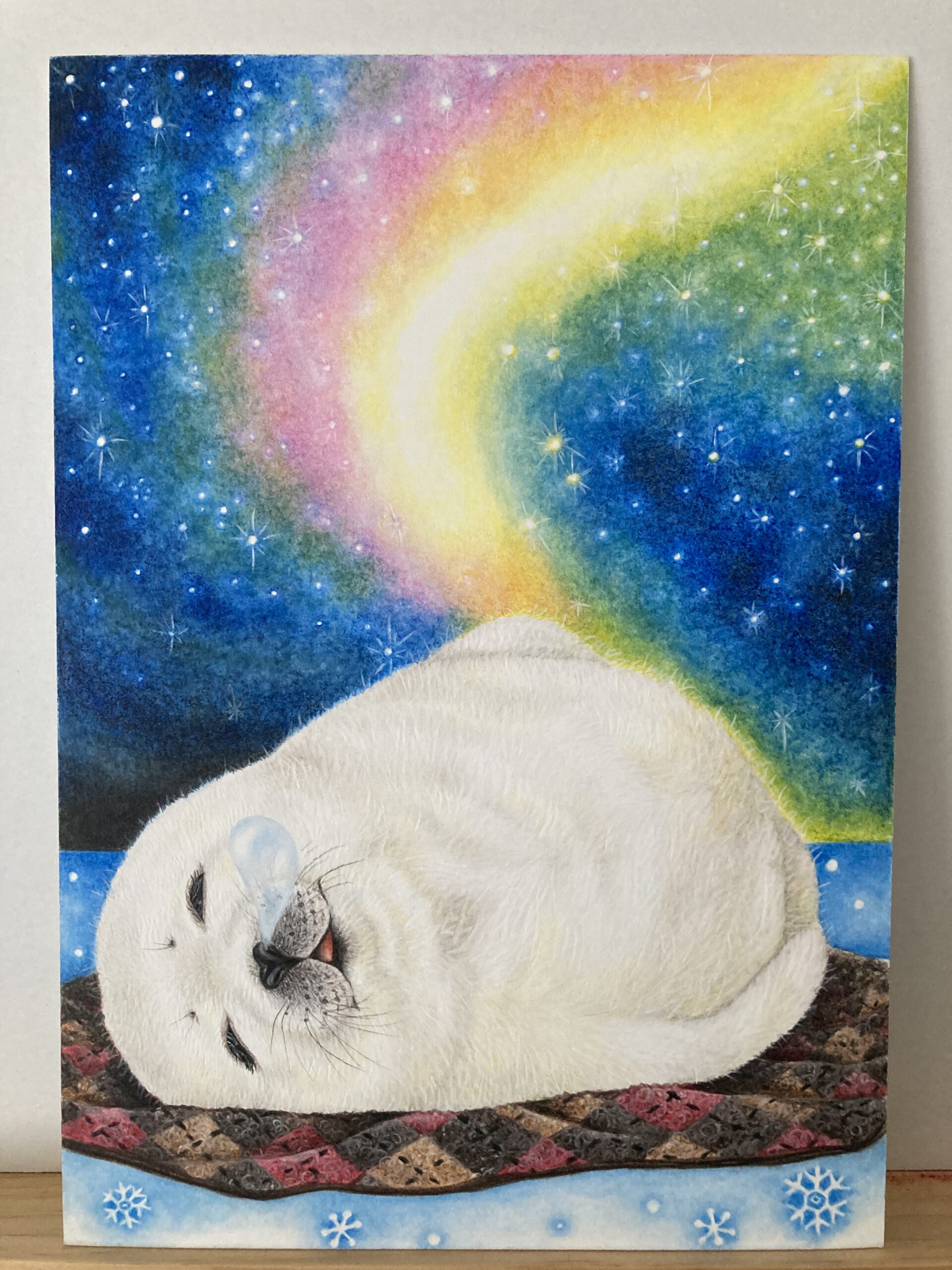 美しい夢みたいなオーロラの下、眠るアザラシ。そして鼻ちょうちん。