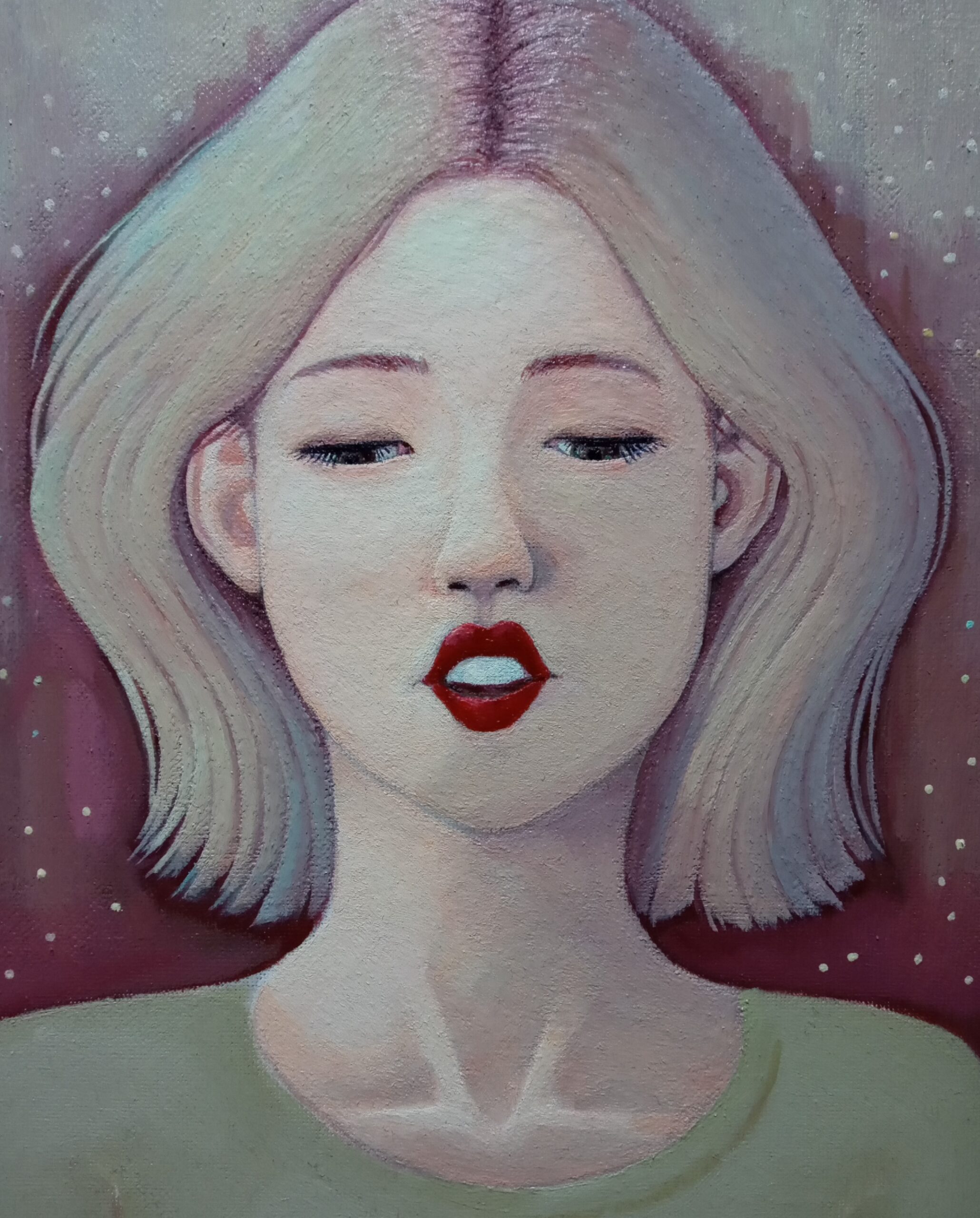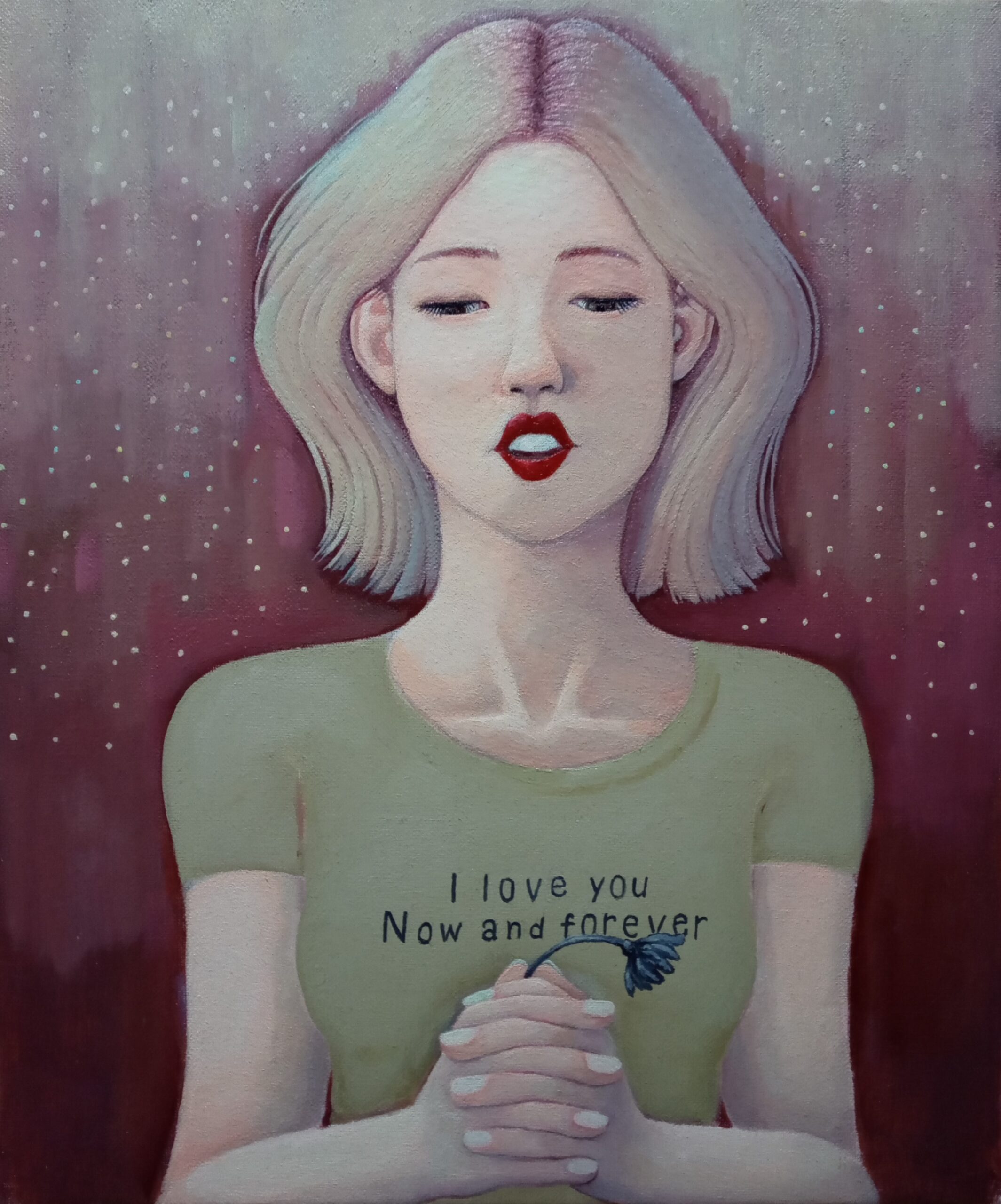 series Women㉙ 今を生きる女性をスパイスを効かせた愛で表現しました。 この世界に永遠なんてものはあるのでしょうか…一瞬一瞬の煌めきがずっと続いているだけなのかも知れません。 手に持った枯れた花はモノクロで表現して、それとの対比で唇に真っ赤な紅を引いてみました。