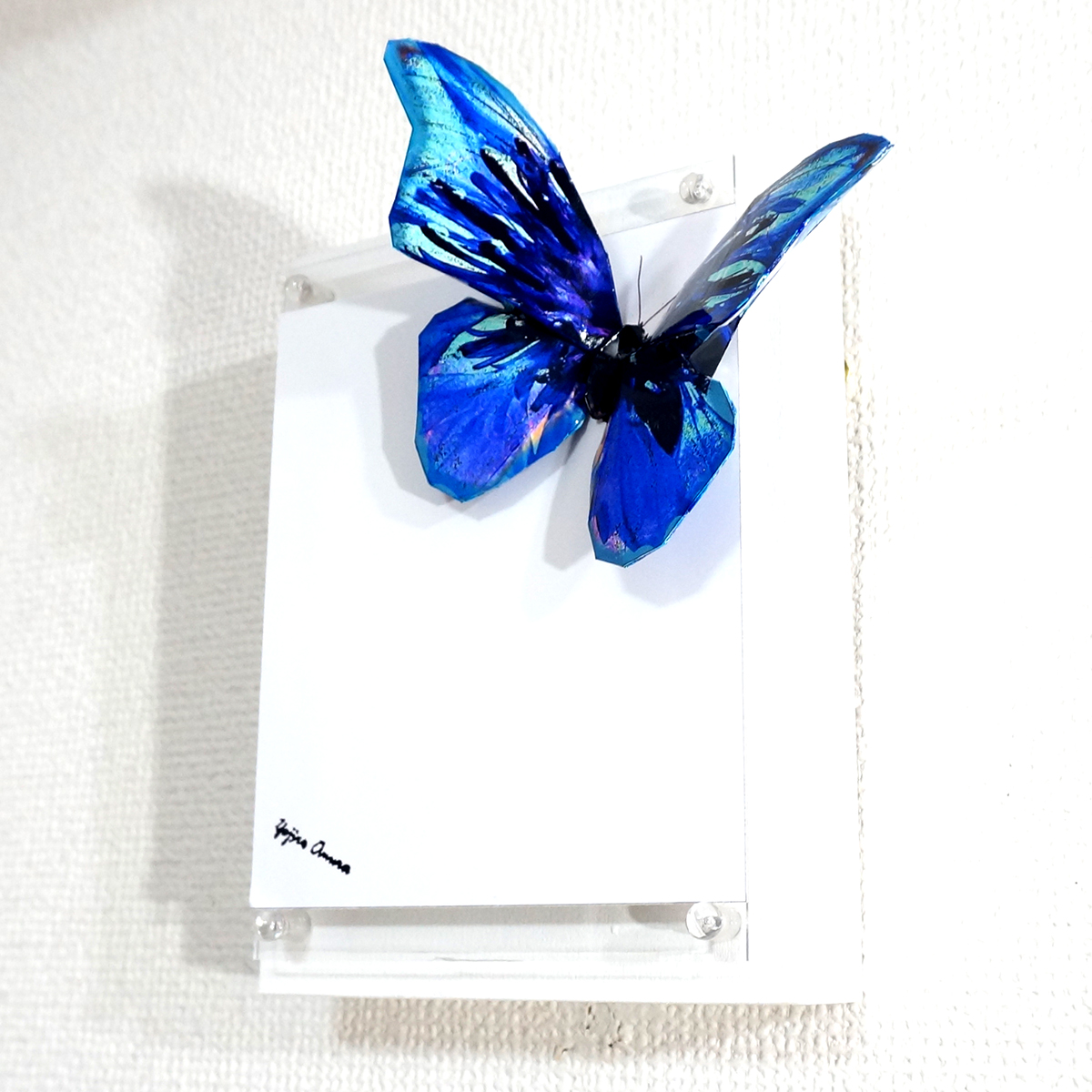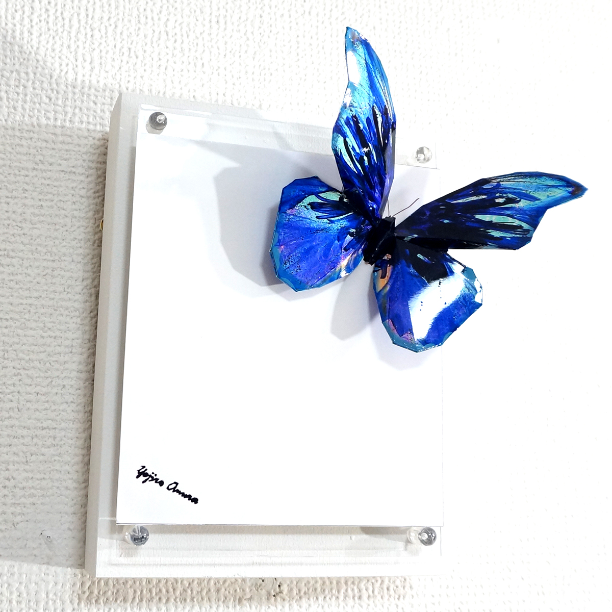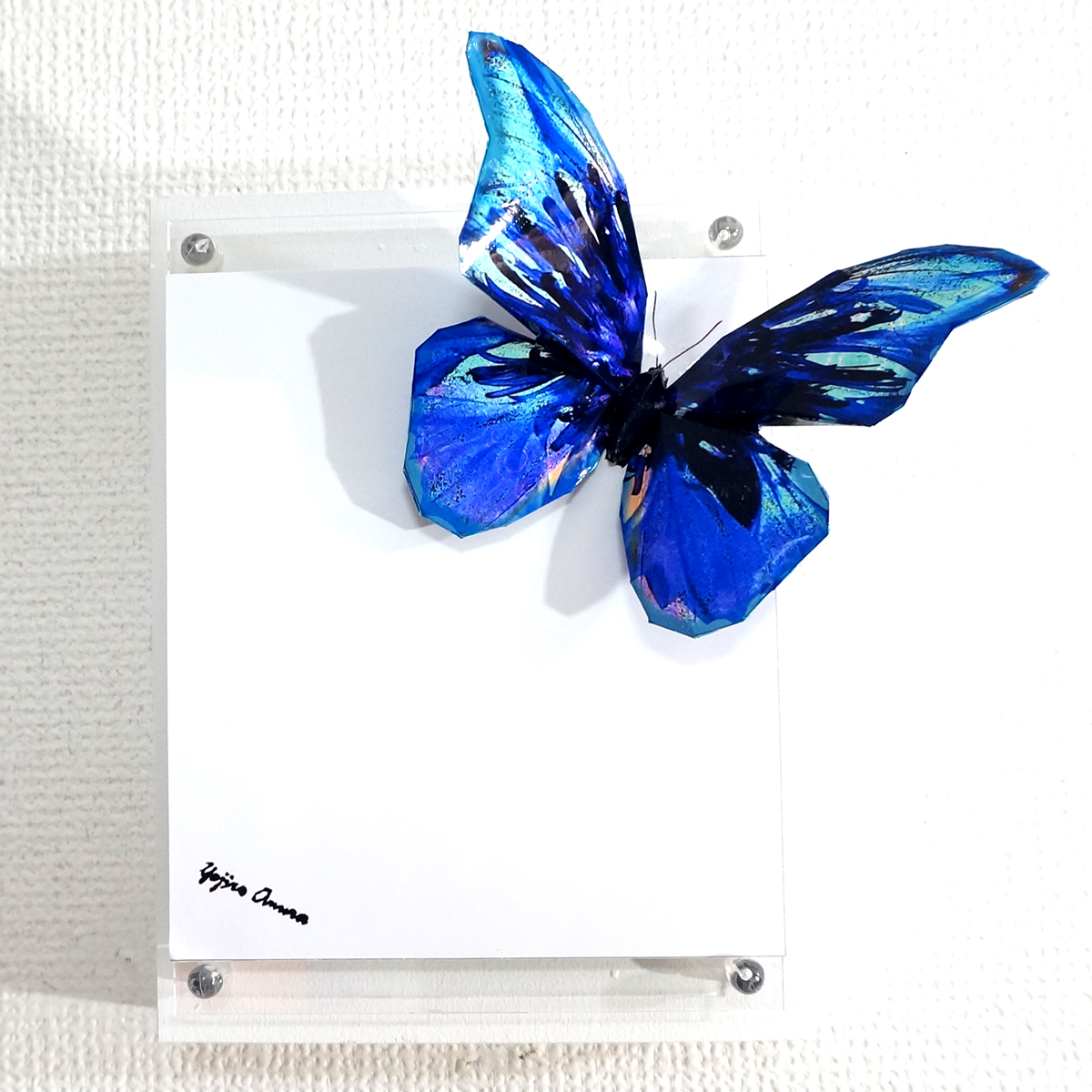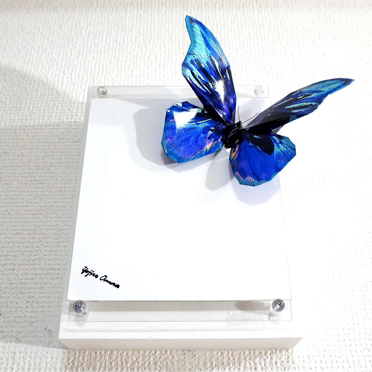 綺麗な青色の蝶々がパネルの隅っこにふわりと着地した様子を表現いたしました。