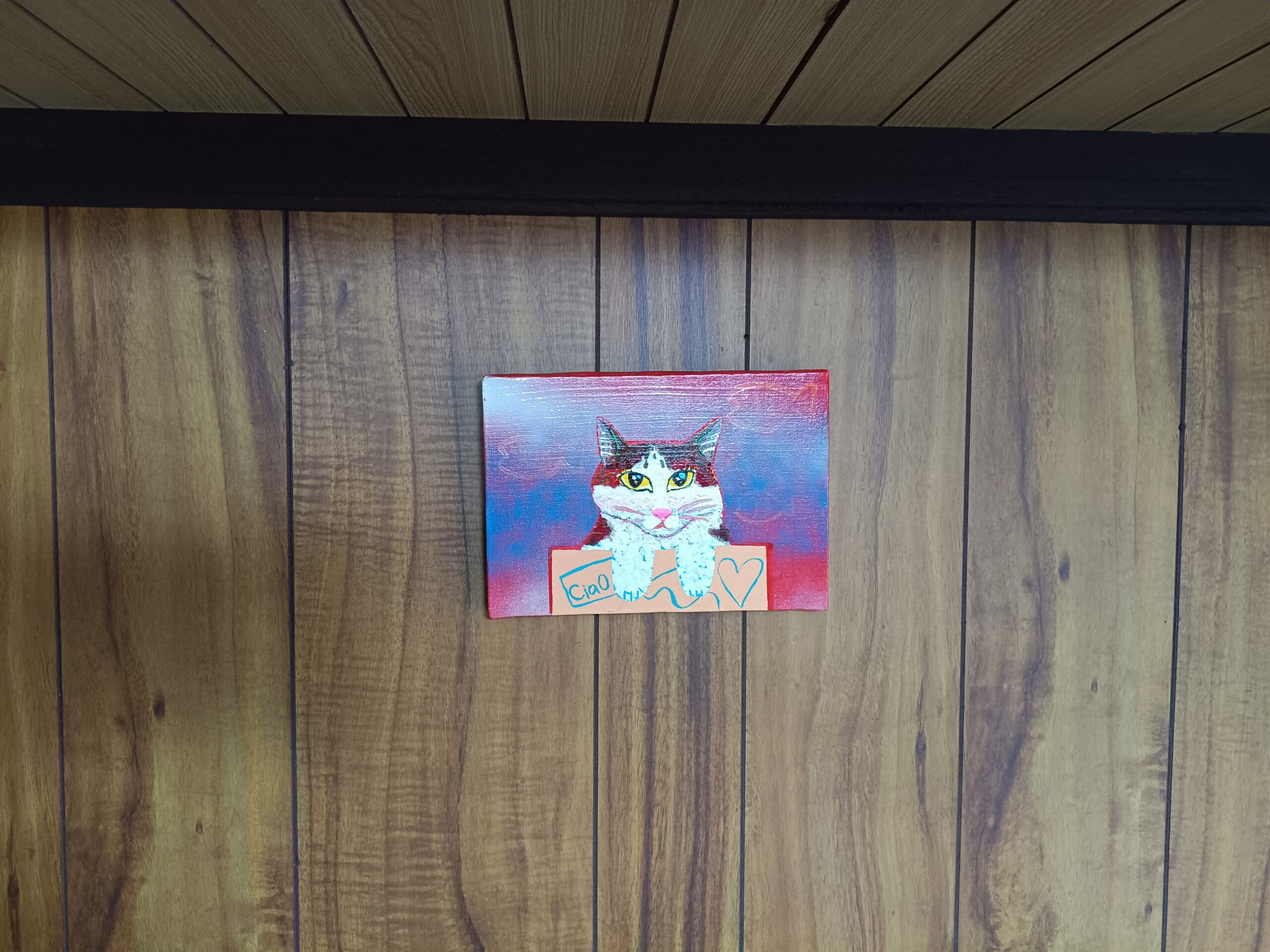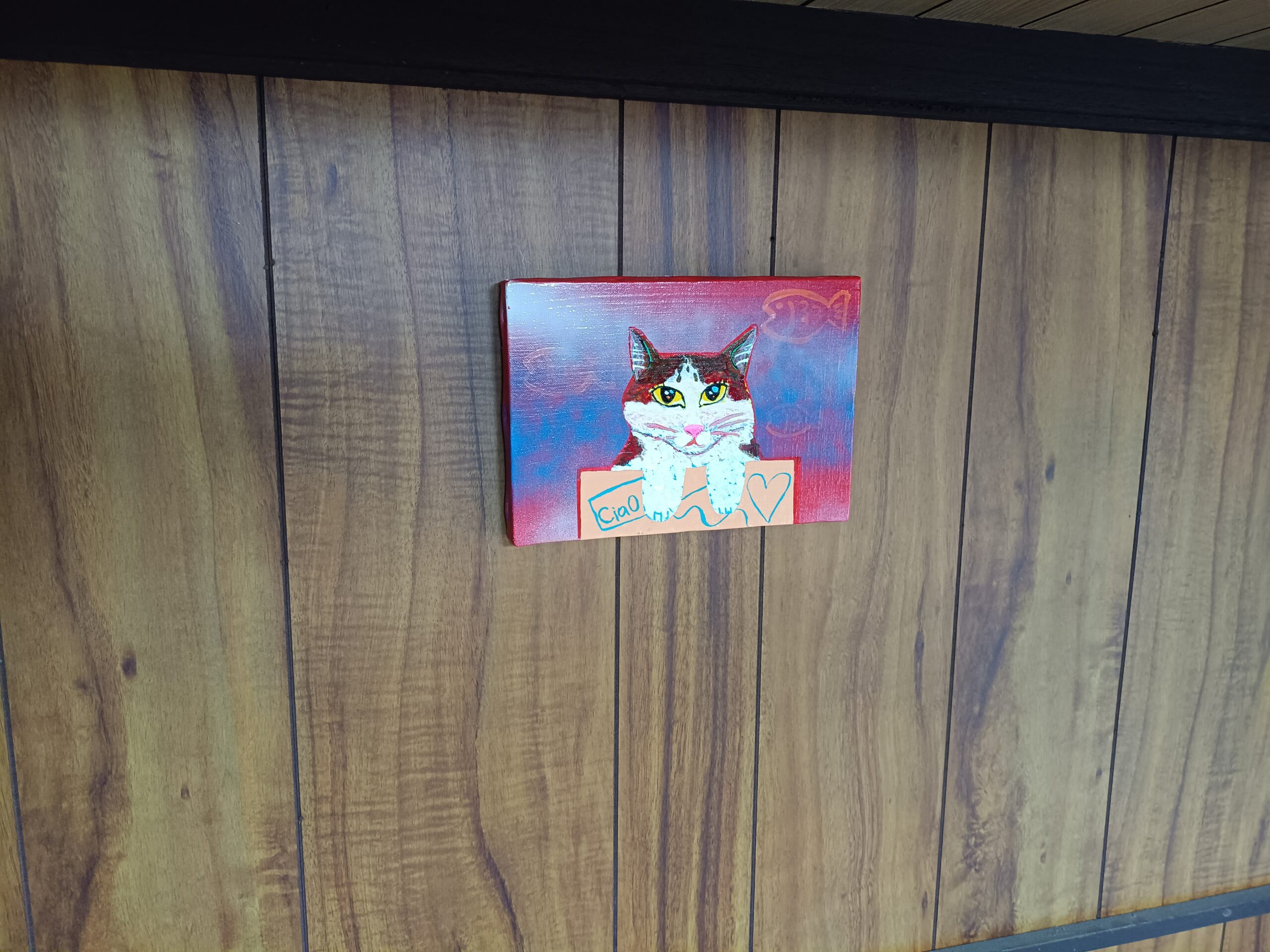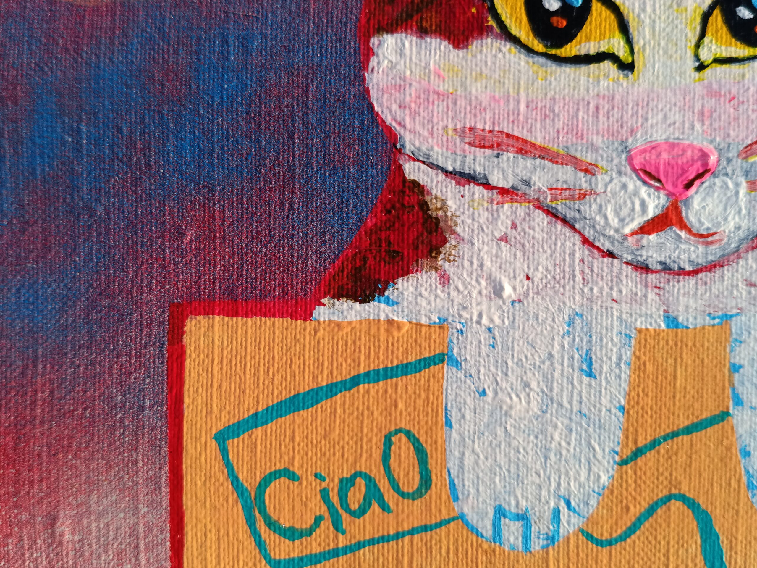 この作品には、アクリル、グアッシュ、スプレーを巧みに組み合わせ、遊び心のあるポップアートの精神と抽象的な感覚を融合させ、躍動感あふれるエネルギーを注ぎ込みました。猫の気まぐれな視線は温かさと好奇心を誘い、滴る水の質感は人生の予測不可能さを表現しています。この作品は喜びを放ち、どんな空間にも温かく愛情深い雰囲気をもたらします。魅力と自発性を称えるこの作品は、心からの喜びで周囲を活気づけます。