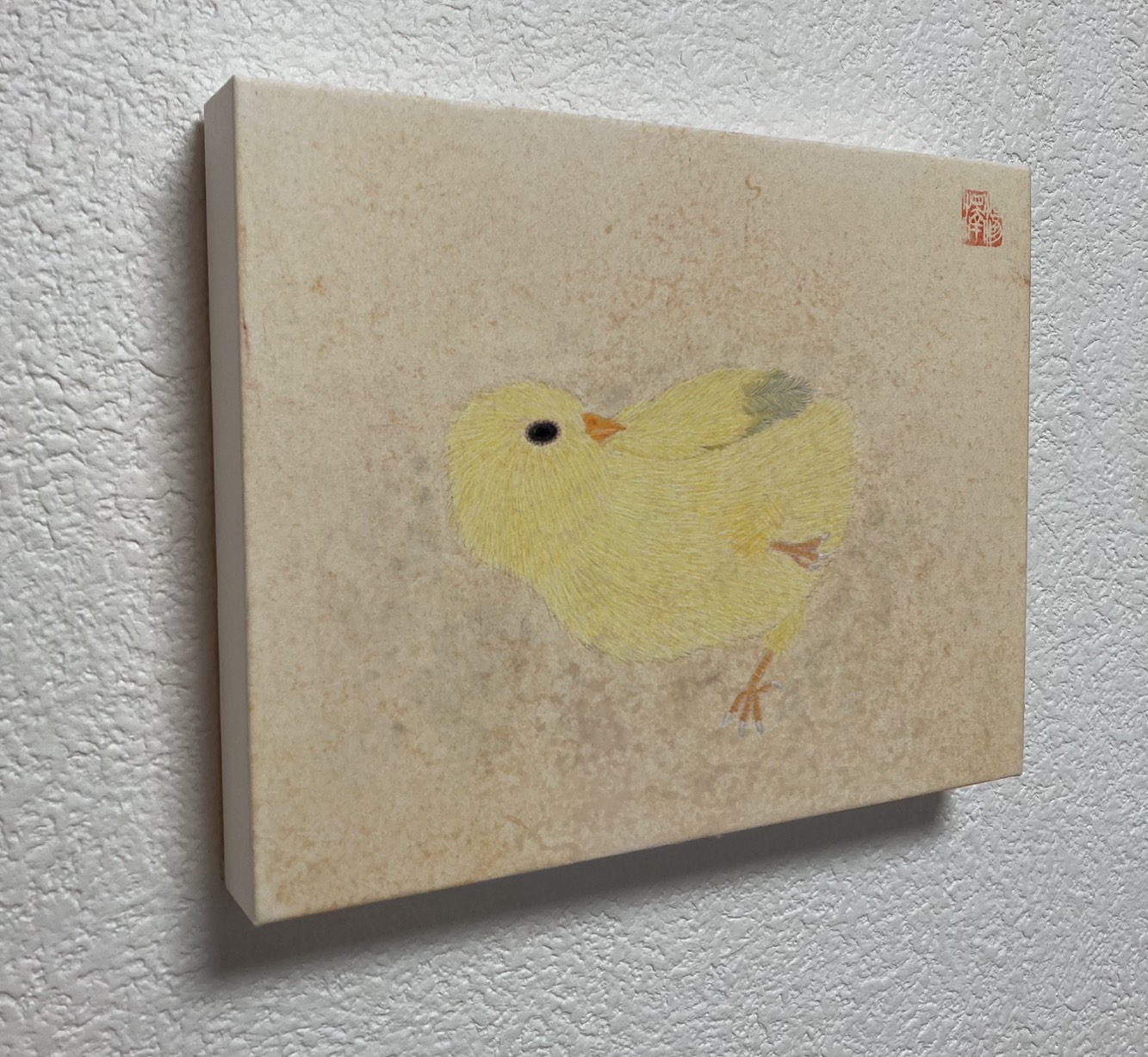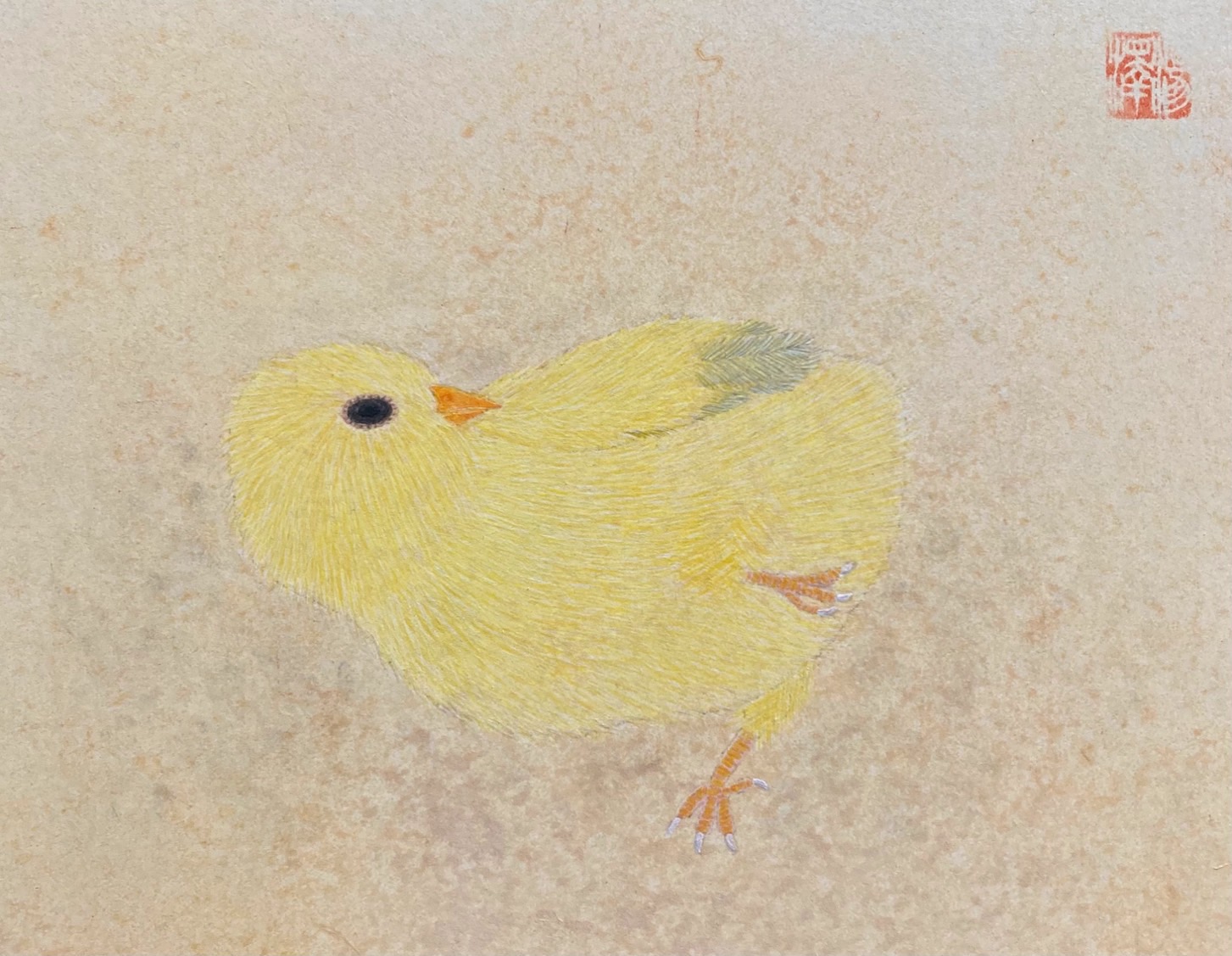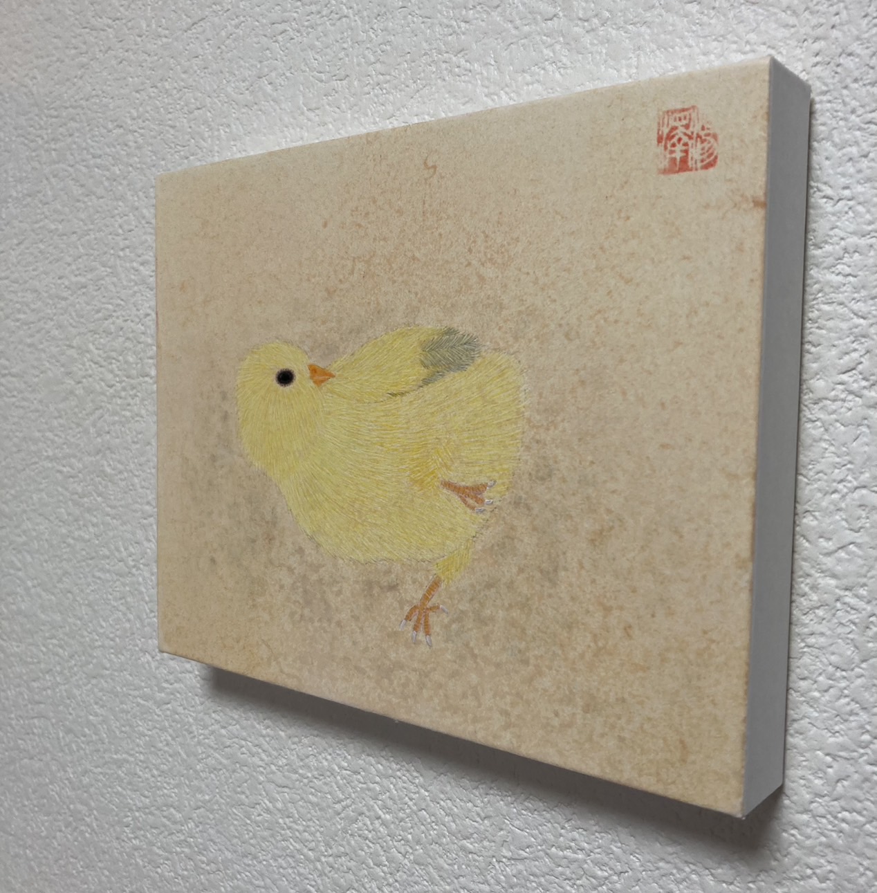 ふわふわのひよこがごろっと寝転んでいる姿をイメージしながら描きました。可愛さを感じて頂ければ嬉しいです。