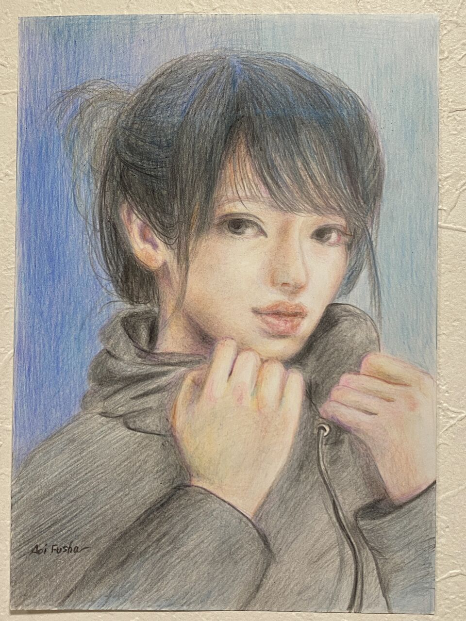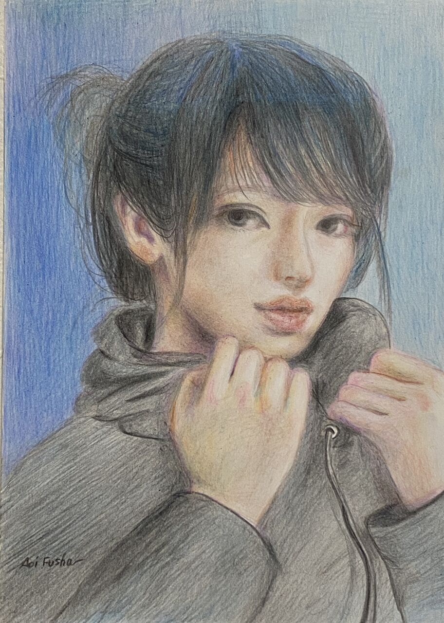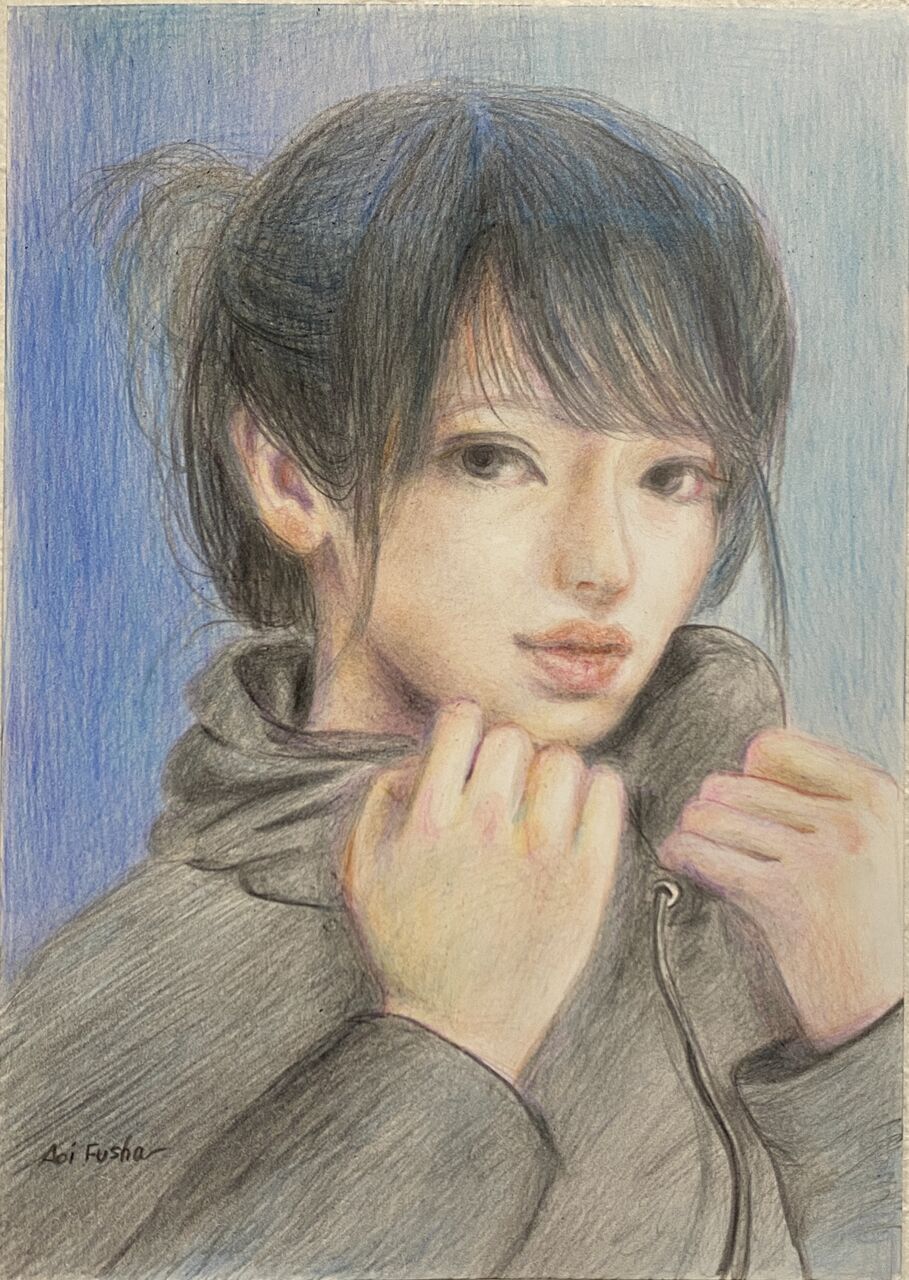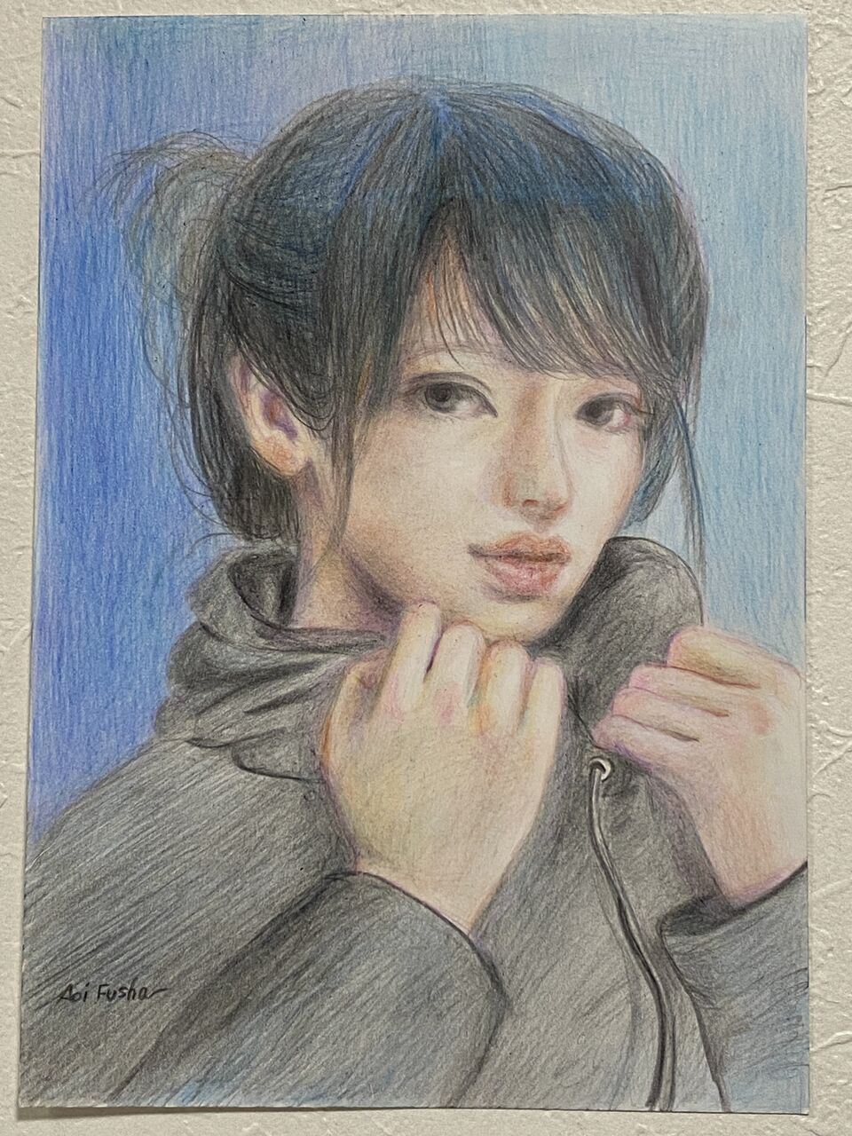 葵風紗 新作、手描きイラストのオリジナル色鉛筆作品原画です。【簡易額付き】