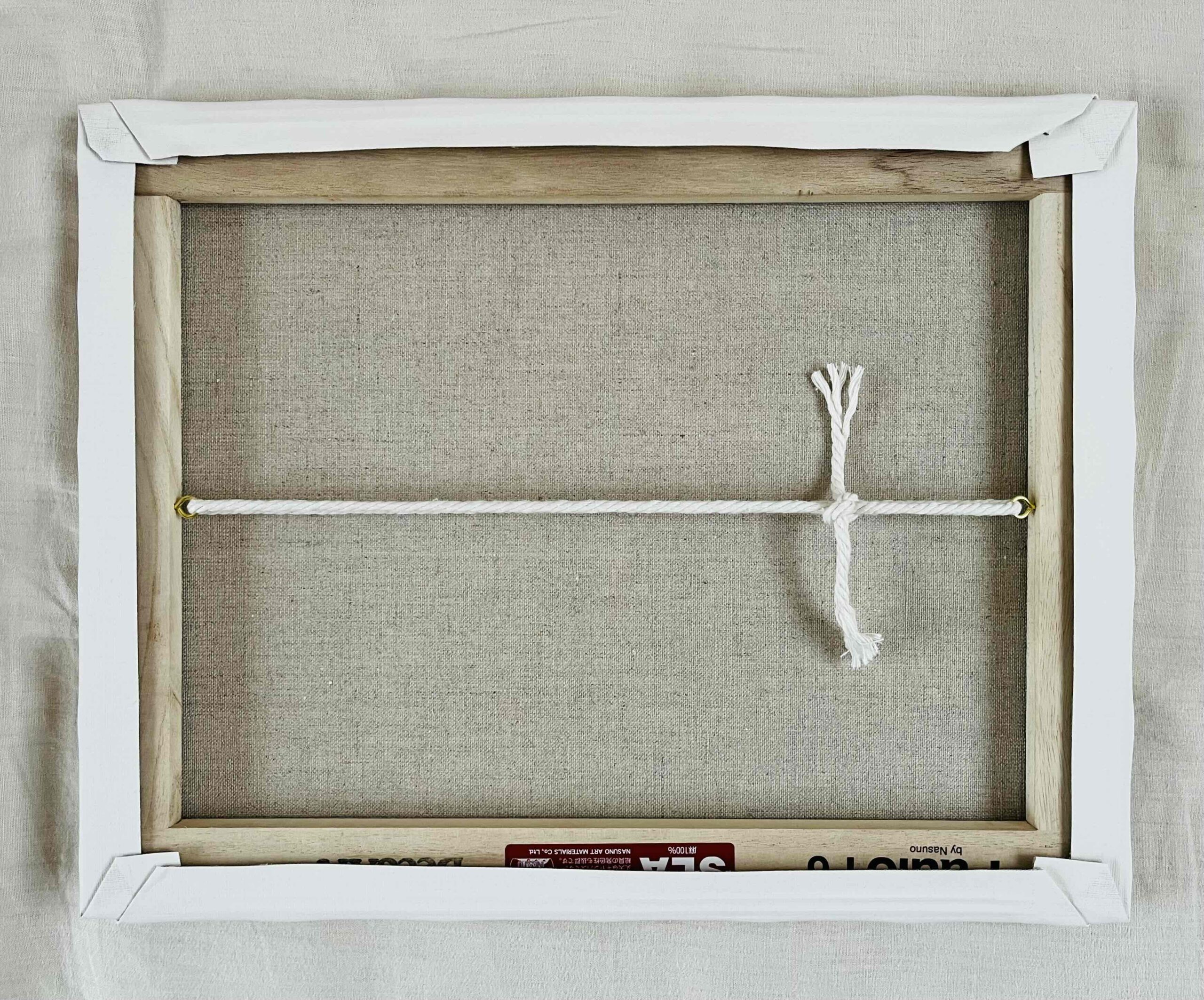 絵画の裏面には紐が取り付けてありますので、そのままでも飾れます。
