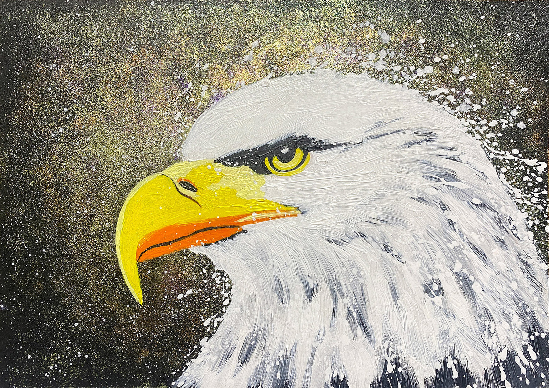 黄金の瞳は遥か彼方を見据え、鋭き嘴は風を裂く刃となり、ただ静かに飛翔の時を待つ。