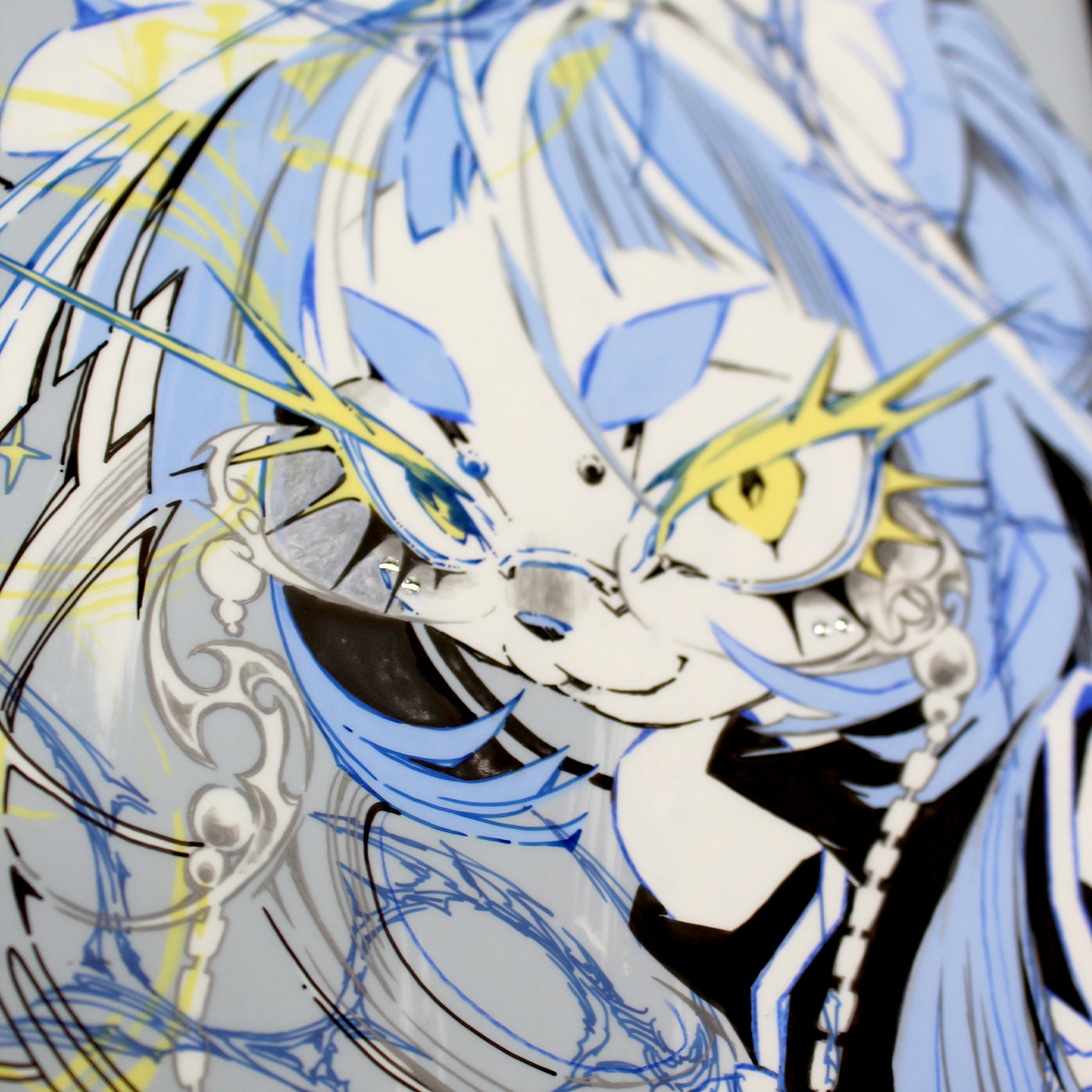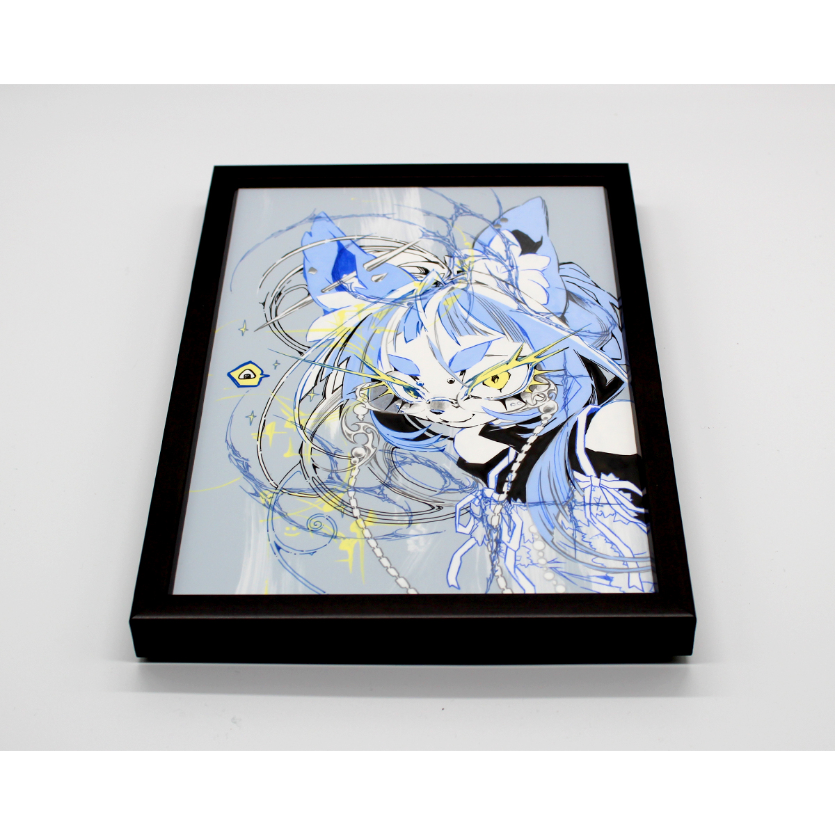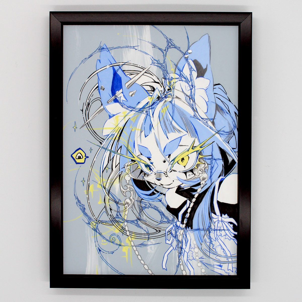 ▼ アクリルガッシュ作品です。部分的に箔を使用しているので角度によって見え方が変化します。