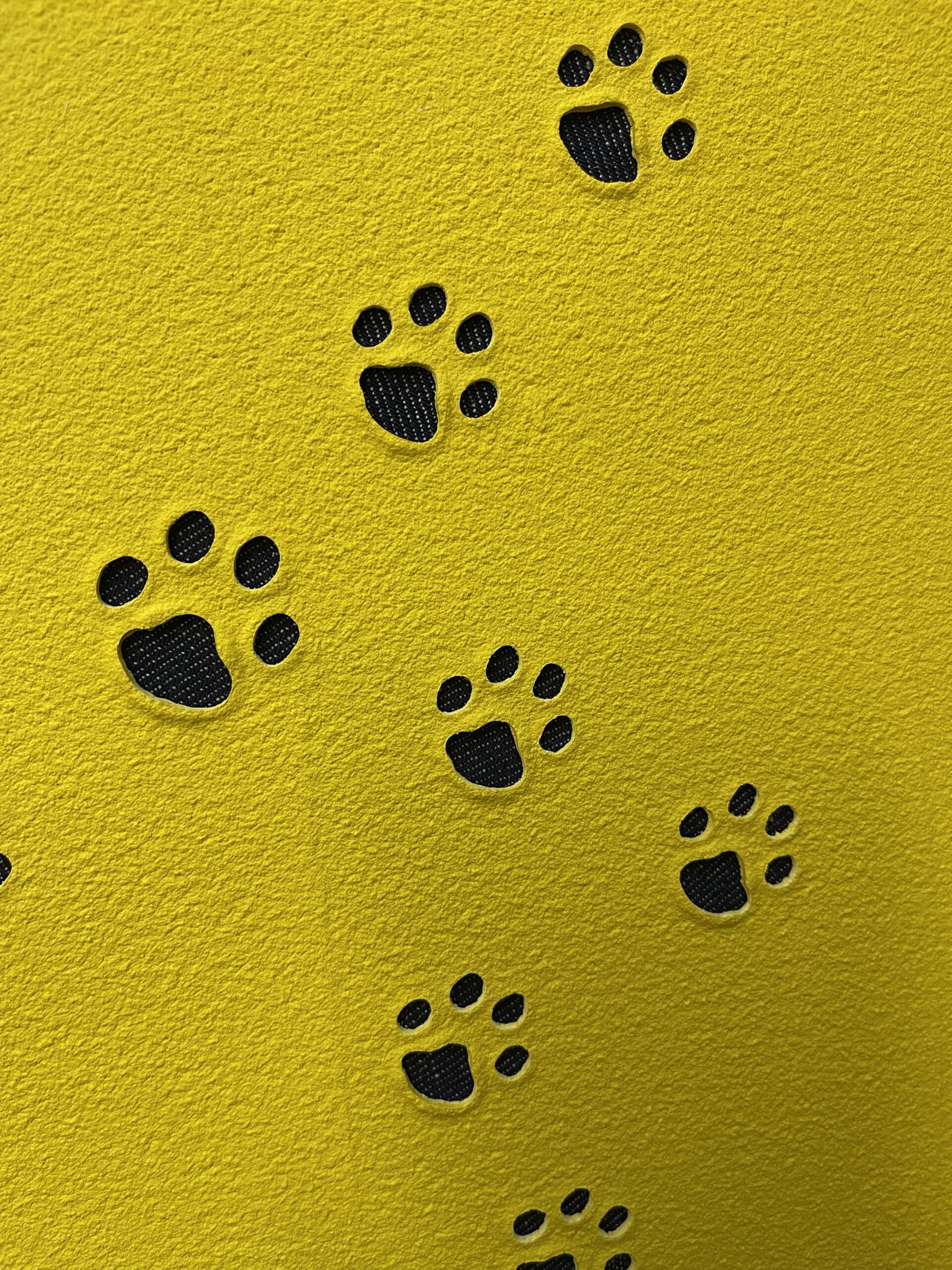 塗装に使う材料の中に砂が入っている塗料があります。この材料のことを砂骨材といいこの砂骨材をベースにしたアートを砂骨アートと名付け、肉球が付いた物を肉球砂骨アートと名付けております。このアートを更にシート化した物これを砂骨アートシートと名付けております。(独自で名付けたもの)