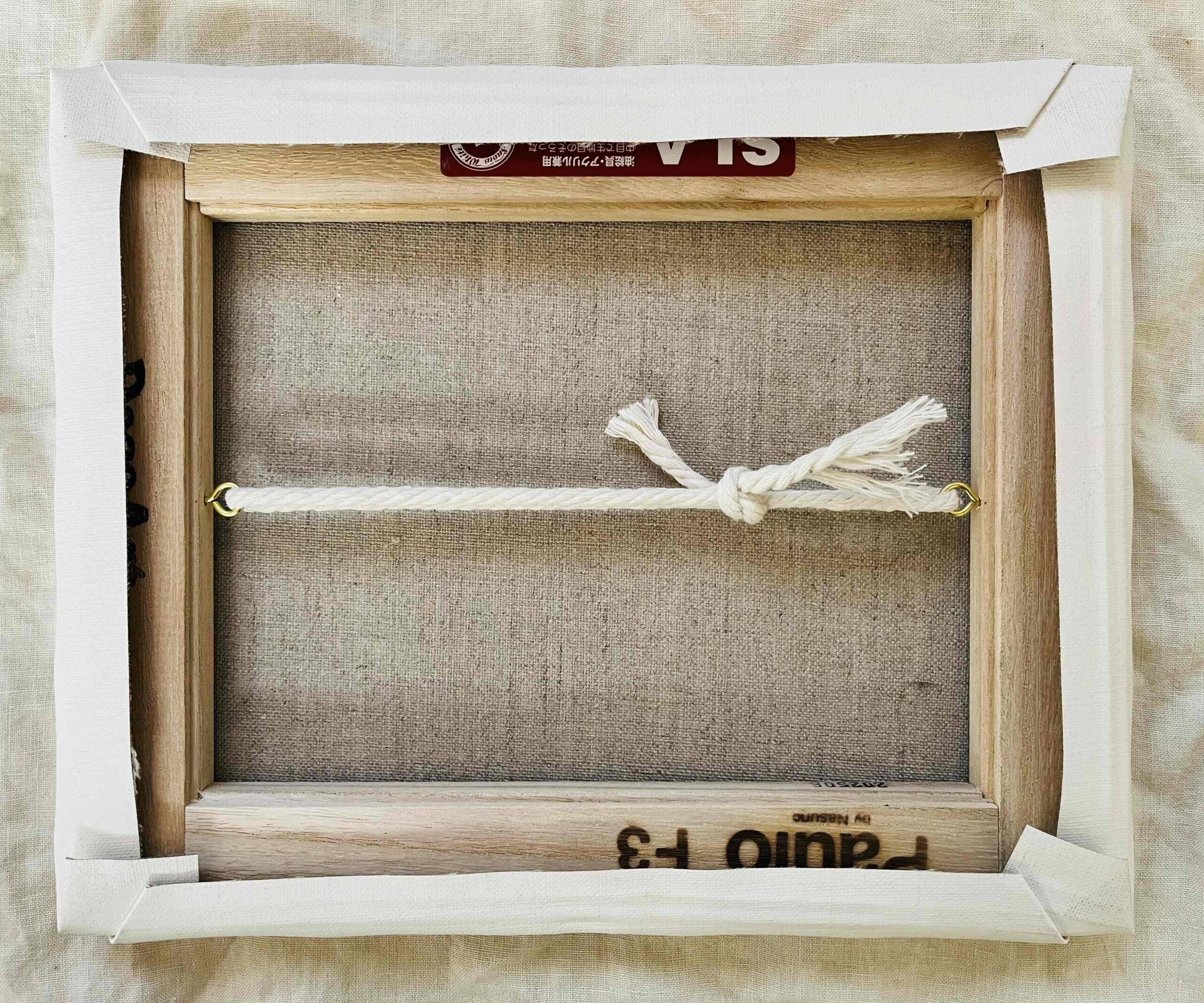 絵画の裏面には紐が取り付けてありますので、そのままでも飾れます。
