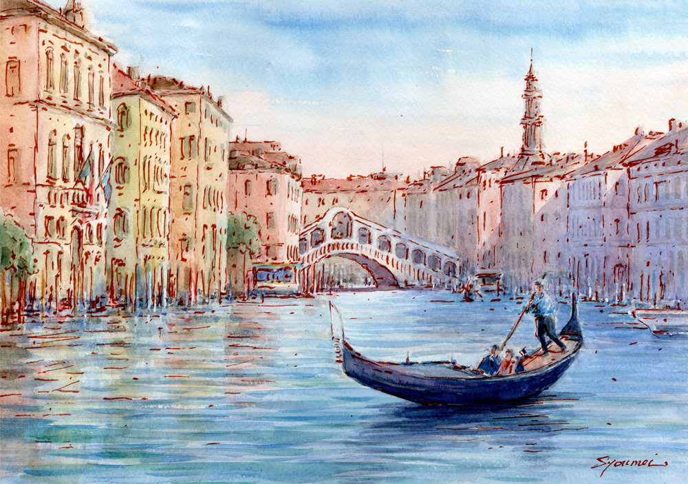 水彩画原画 ヴェネツィア運河・リアルト橋 #710