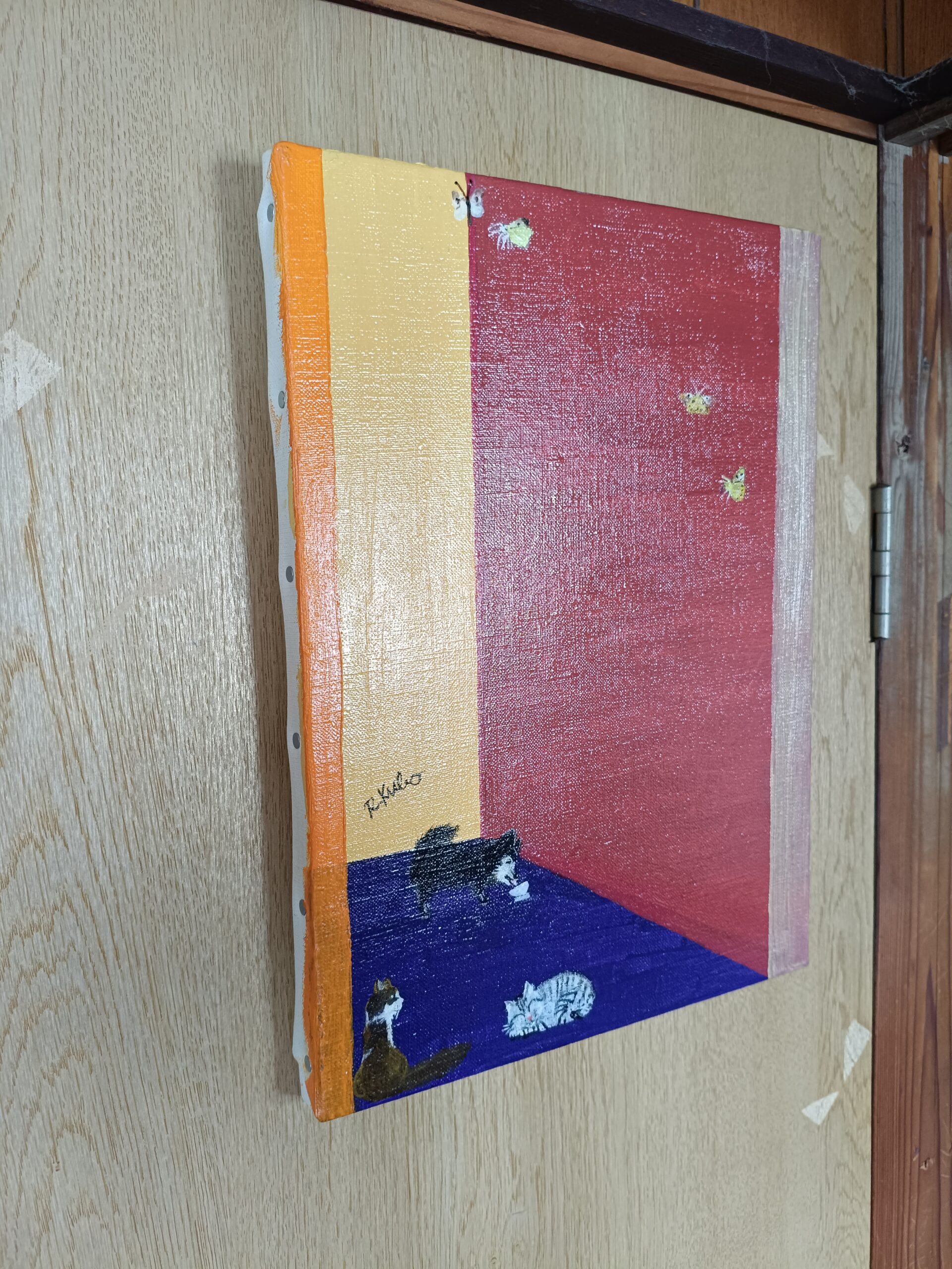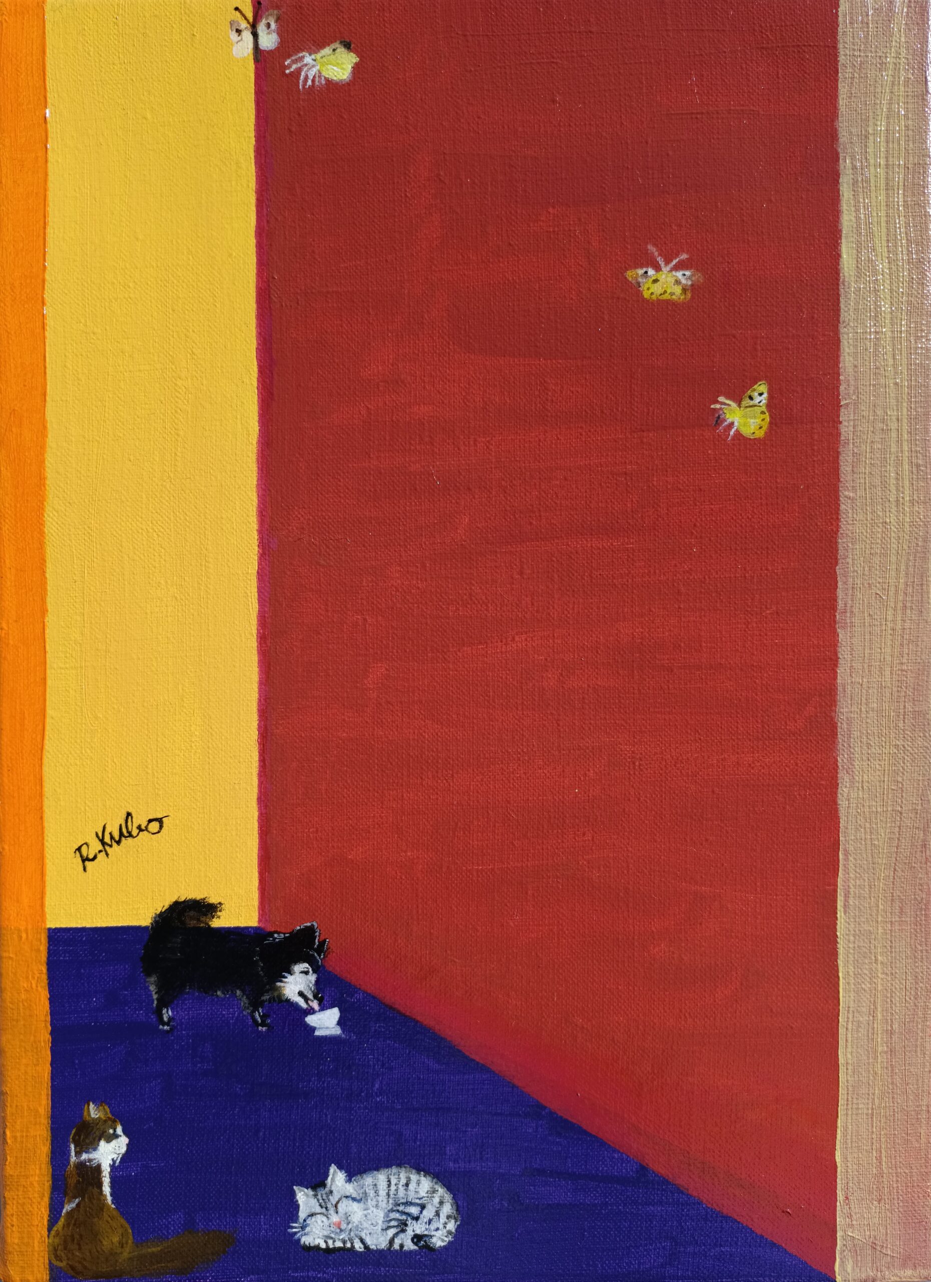 この作品では、鮮やかな色彩と抽象的な形を融合させ、遊び心あふれるエネルギーを注ぎ込み、温かさと好奇心を呼び起こしました。小さな動物や蝶々が、見る人を立ち止まらせ、微笑ませ、ささやかな喜びを思い出させてくれます。人生の静かなひとときを鮮やかに祝福するこの作品は、どんな空間にも明るく遊び心のある活気を与えてくれます。見るたびに、心地よく喜びに満ちた鼓動を感じることでしょう。