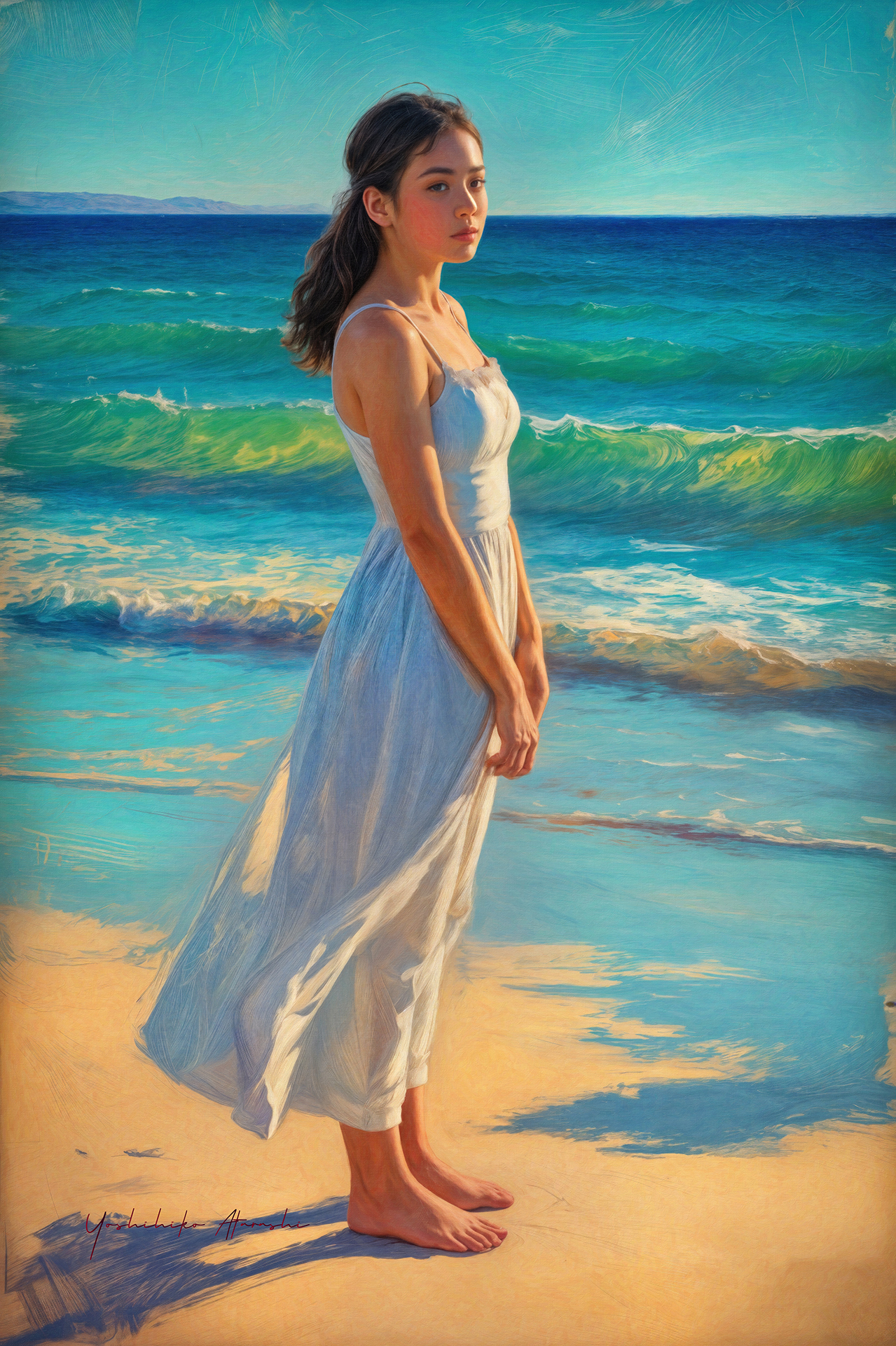 鑑賞者が潮風や砂の感触を想像し、過去への懐かしさや未来への希望を同時に感じ取れるよう願っています。