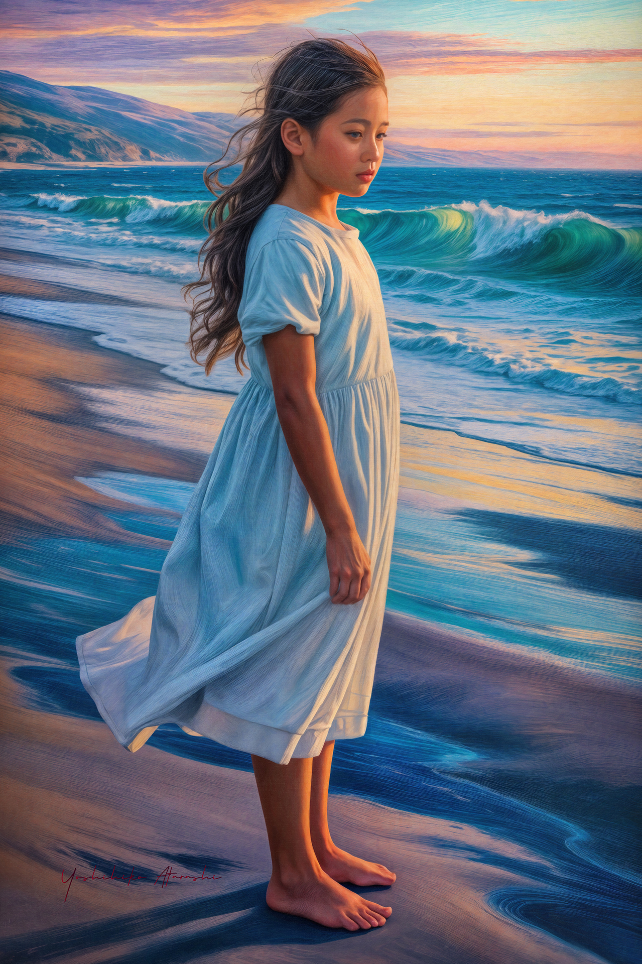鑑賞者が潮風や砂の感触を想像し、過去への懐かしさや未来への希望を同時に感じ取れるよう願っています。