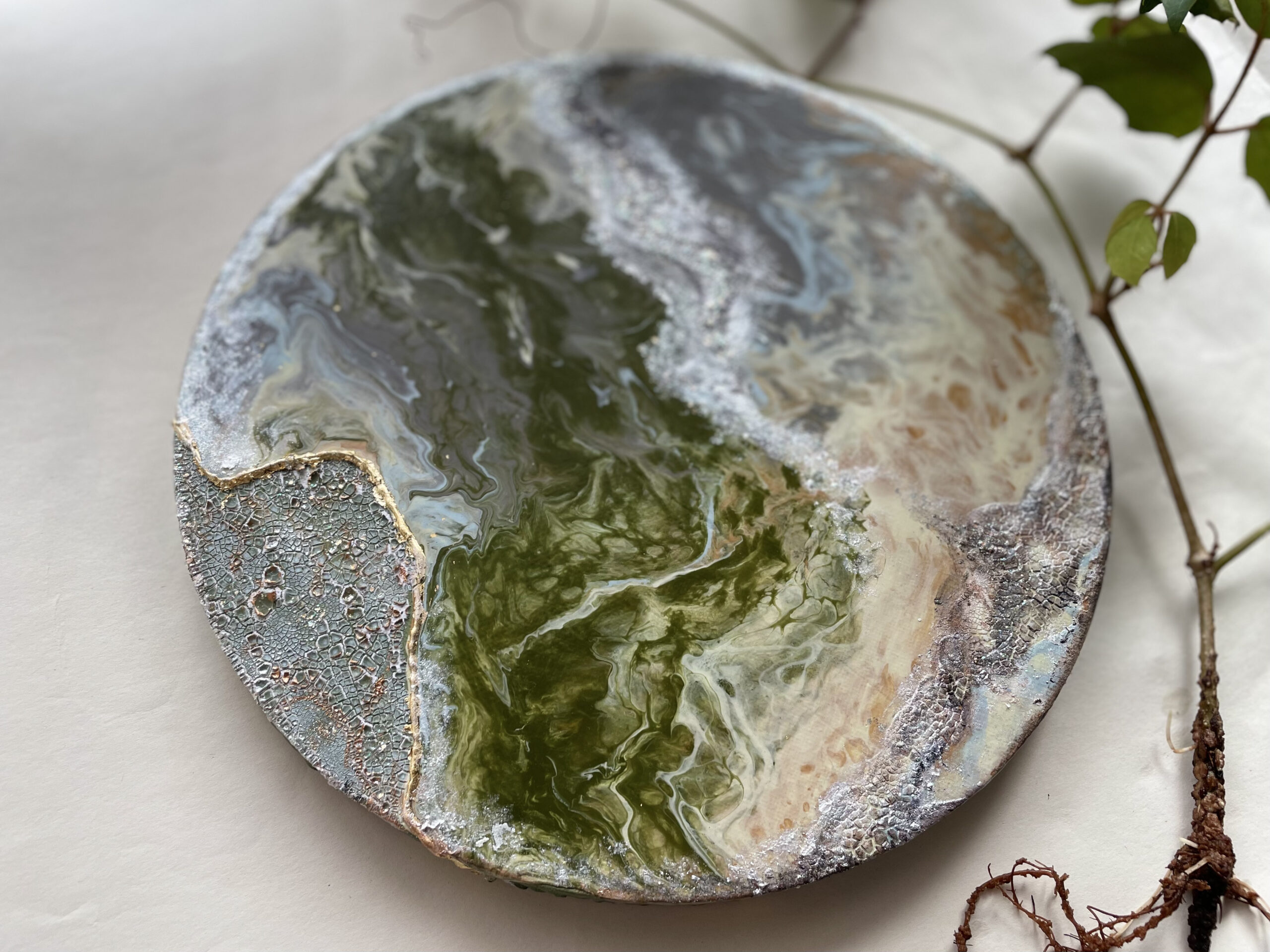白部分はシルバーに、鱗が剥がれる質感部分はグリーンとブロンズに見えます。