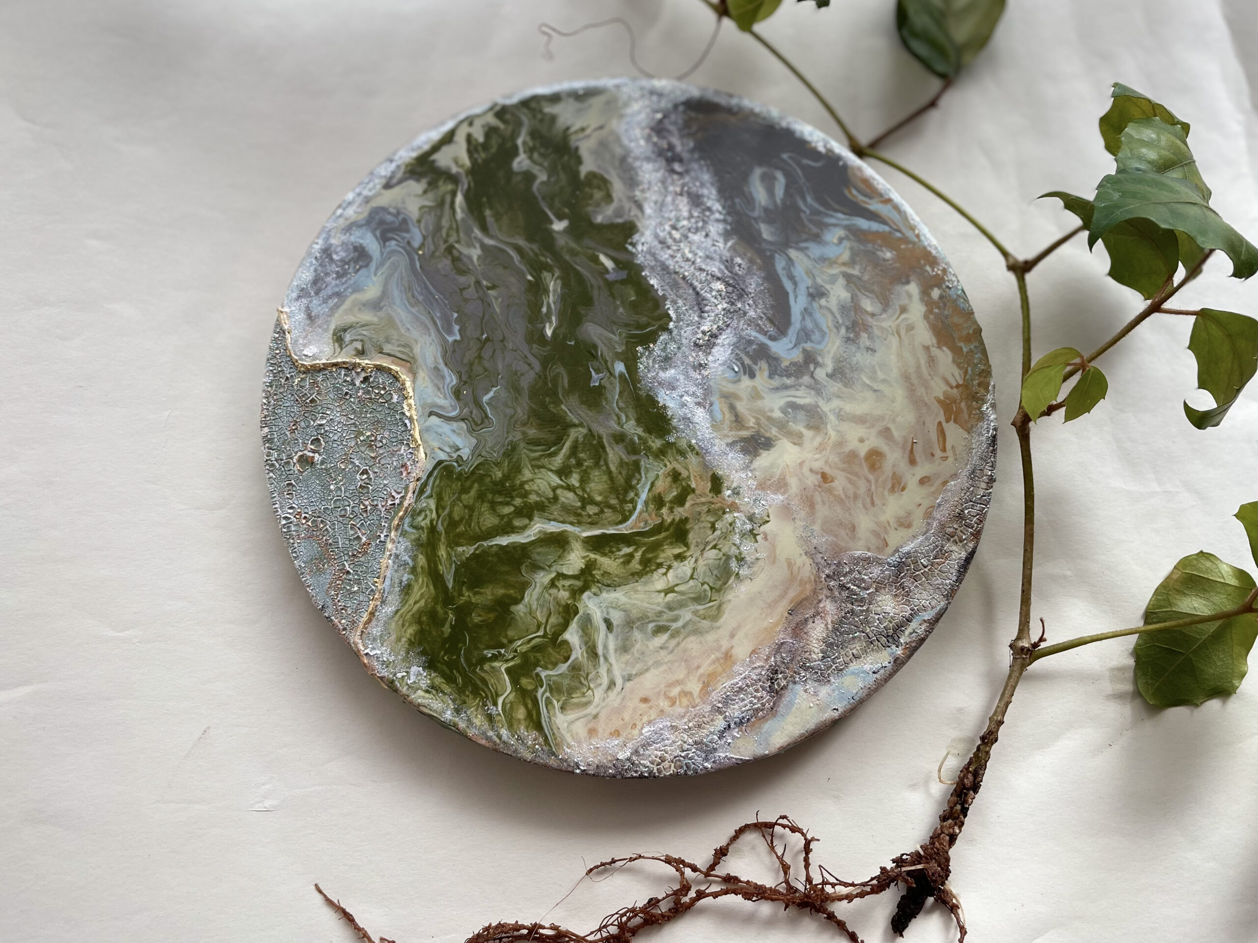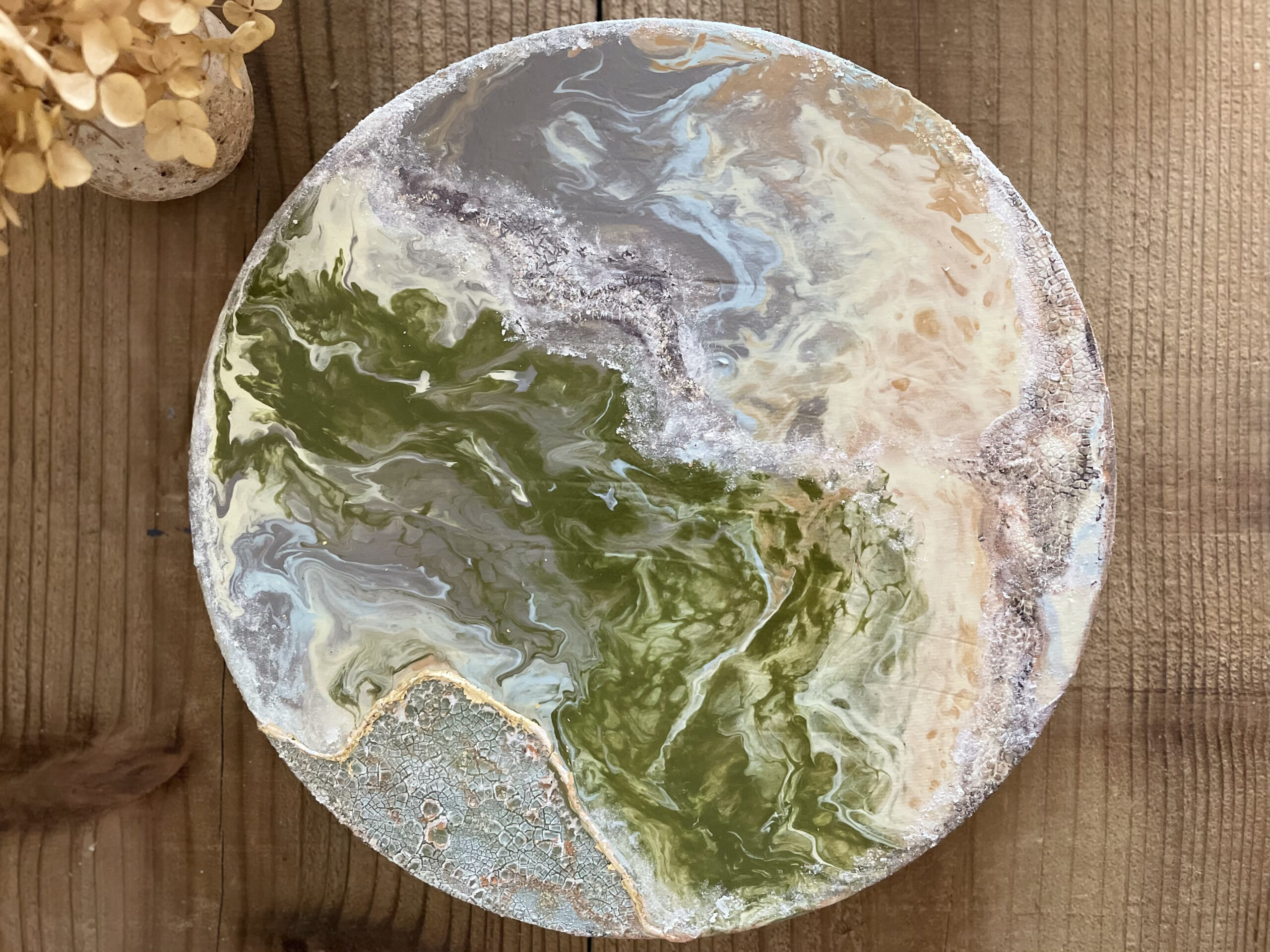 (お写真ご確認をしたい方はメッセージをいただけましたら、詳細お写真をお送り致します。)製作時、画材同士が混ざり合うことや製作環境下の中で塗料のヒビ割れが生じることがございます。