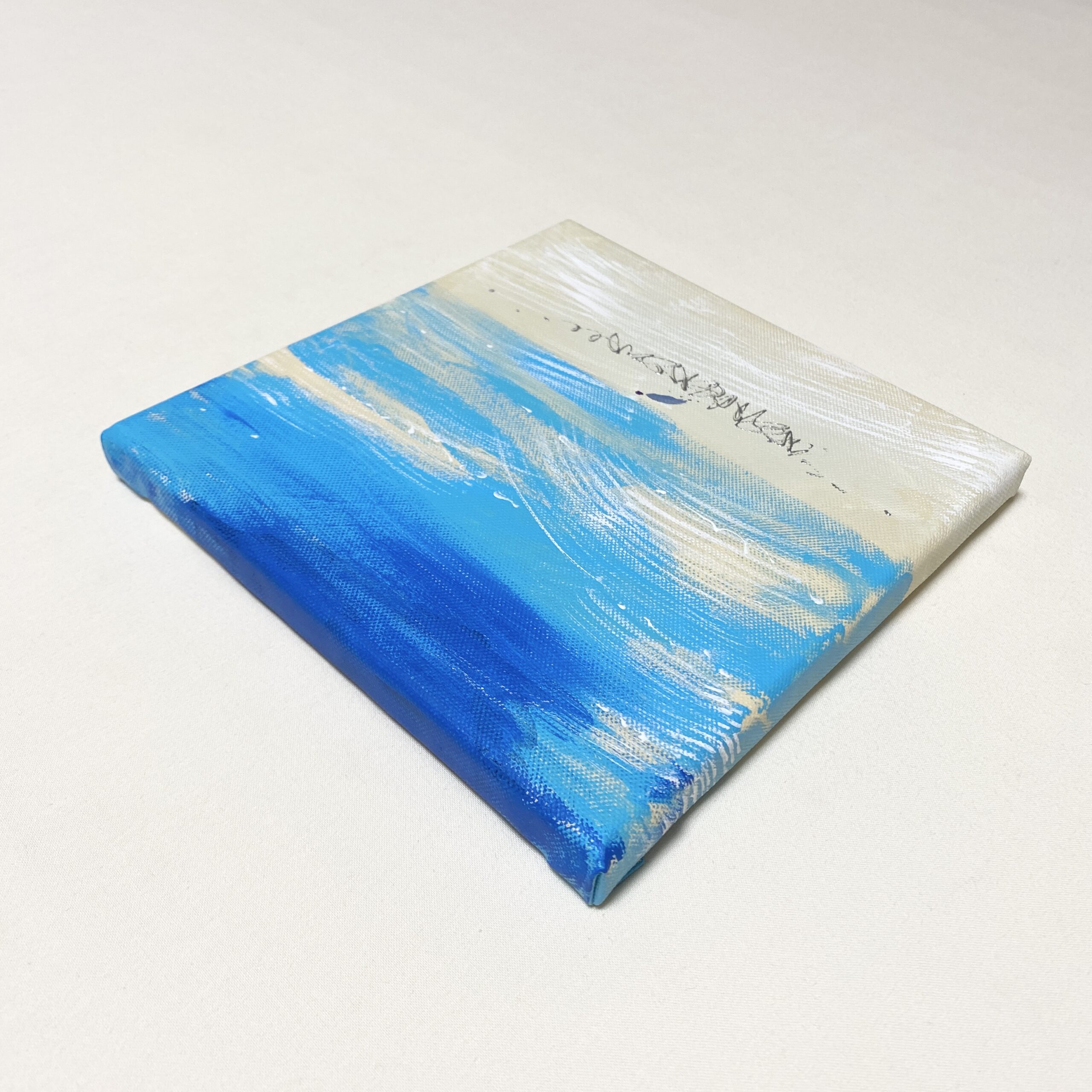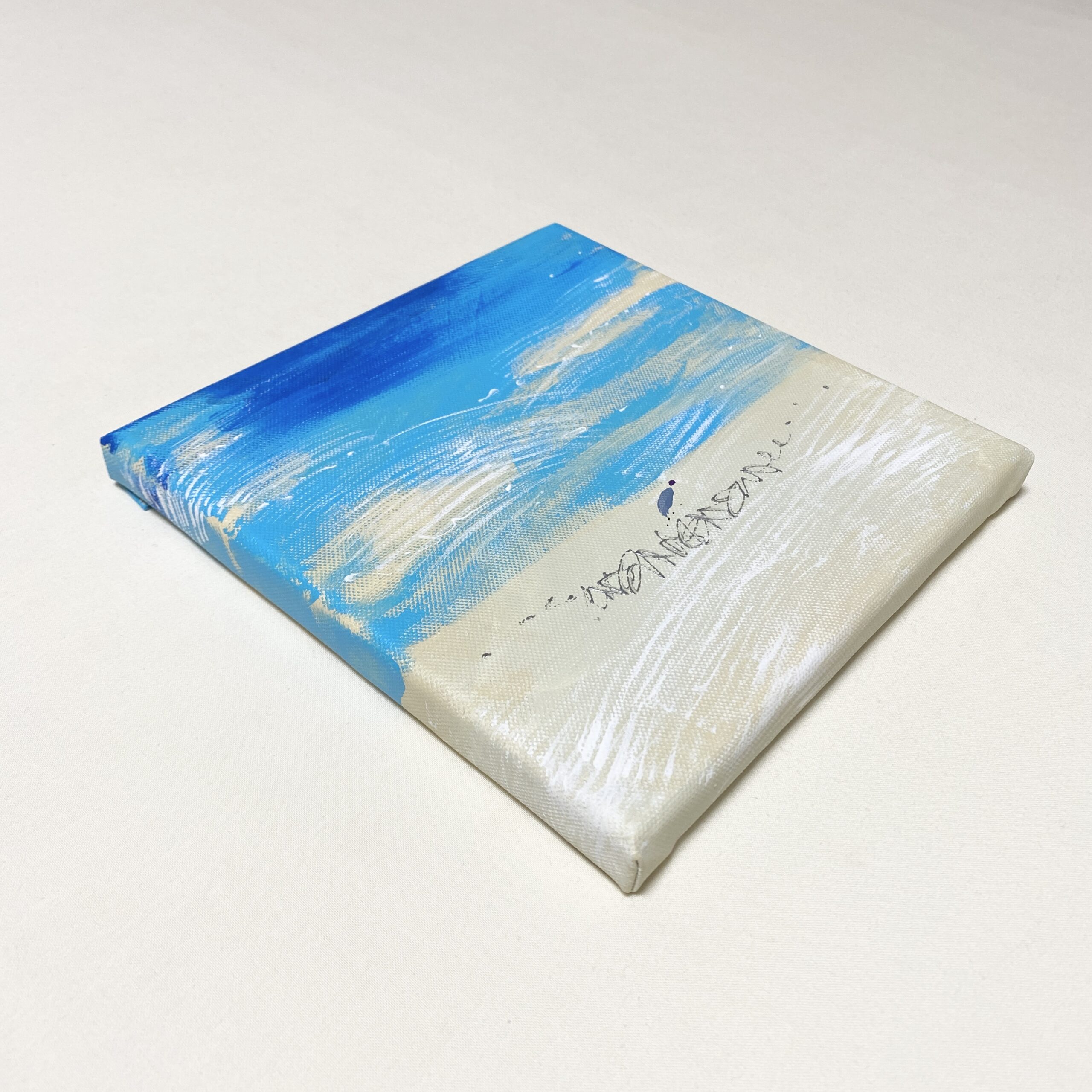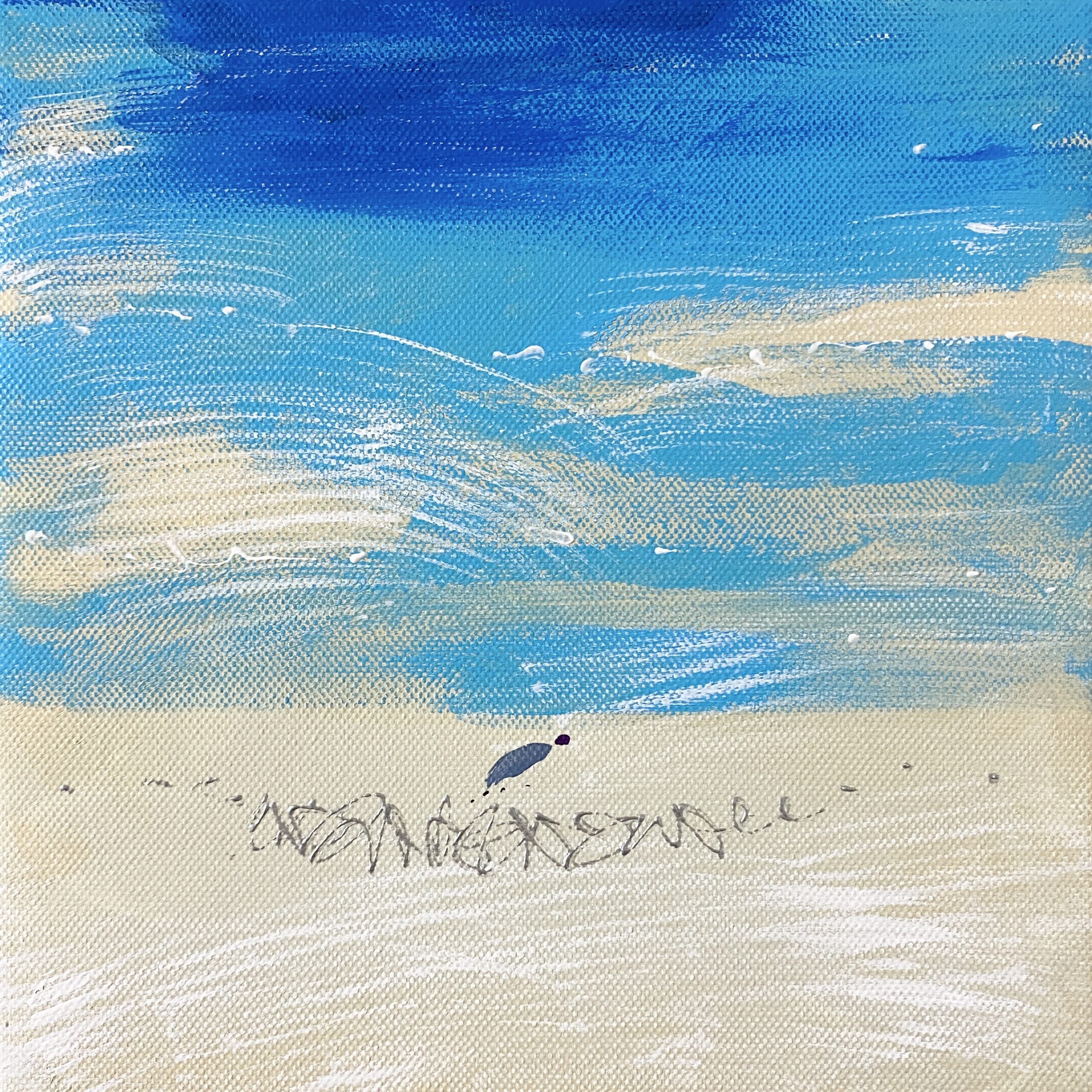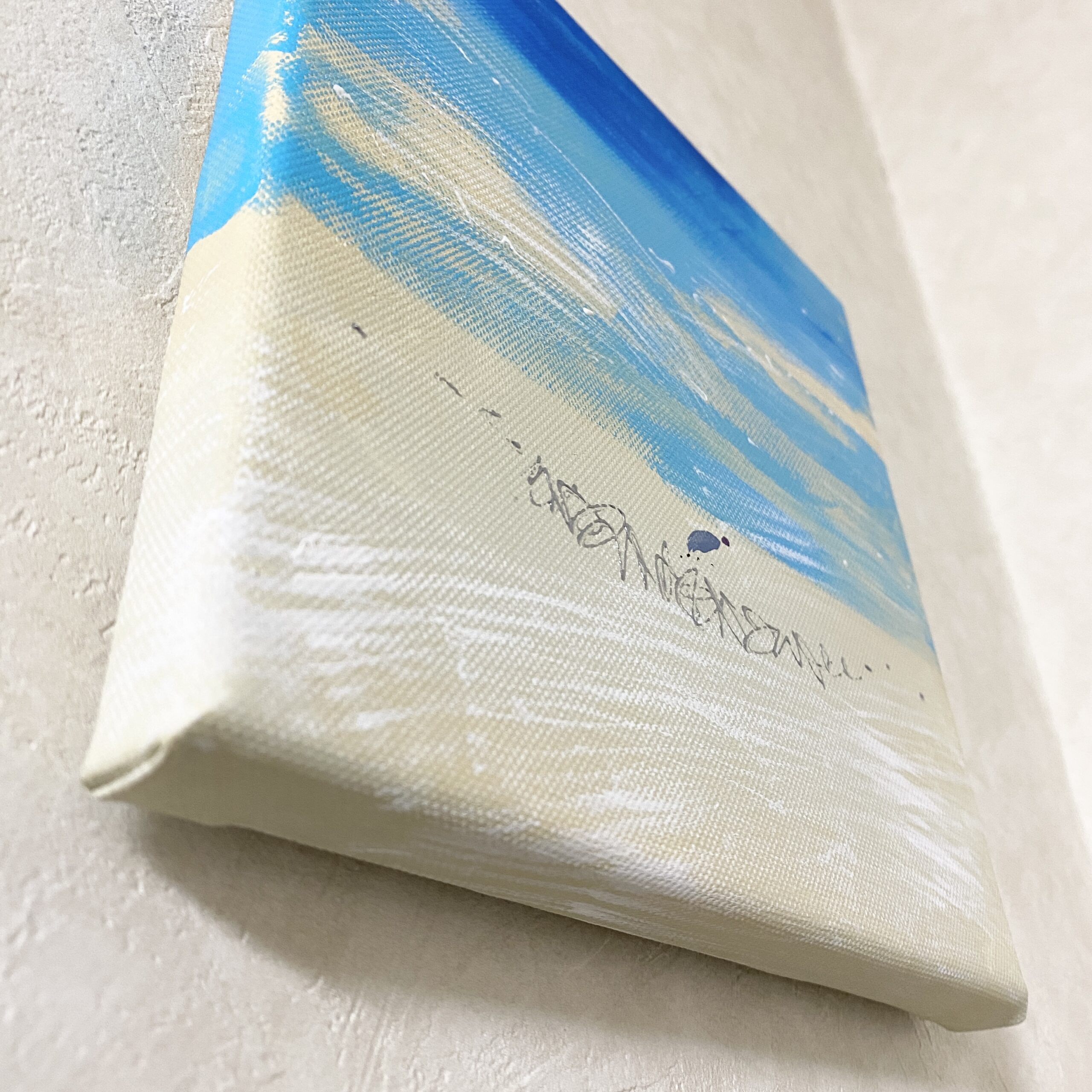 「流れていく」 朝から外に出て、移動し、戻り、また出かける一日。バスの中で見た空と、流れていく雲の記憶が、この絵になりました。特別な出来事はないけれど、時間は確かに流れていて、その感覚だけを留めた一枚です。