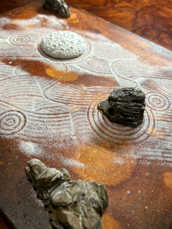 石や砂で山や川、宇宙を表現し、その鑑賞を通して精神を落ち着かせることを目的とします。