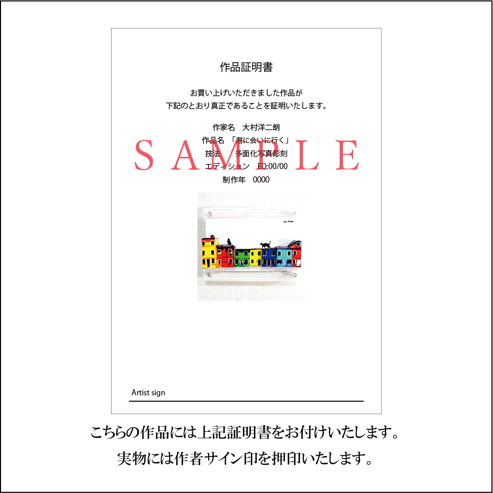 こちらの作品には作品証明書をお付けいたします。(画像参照)