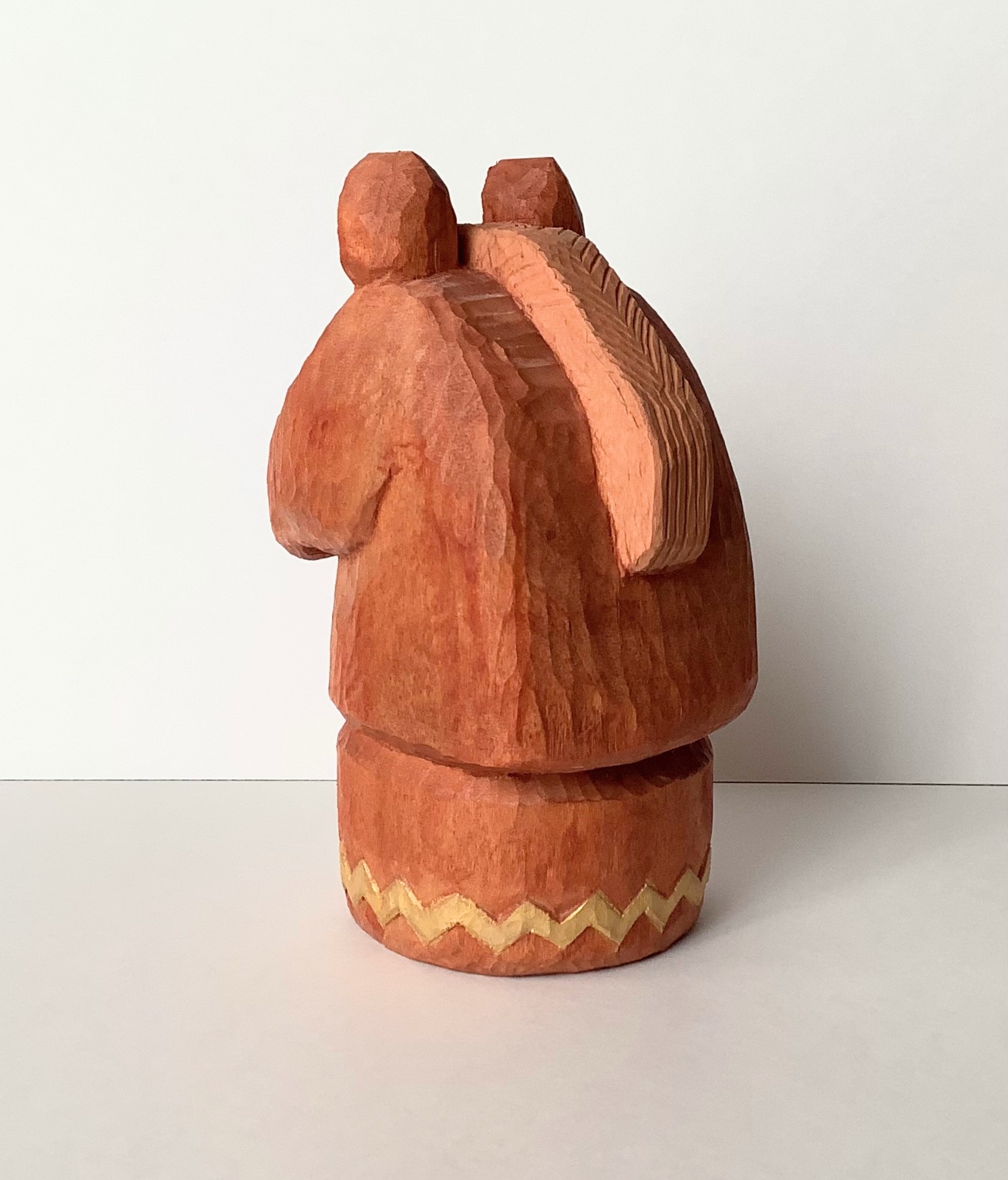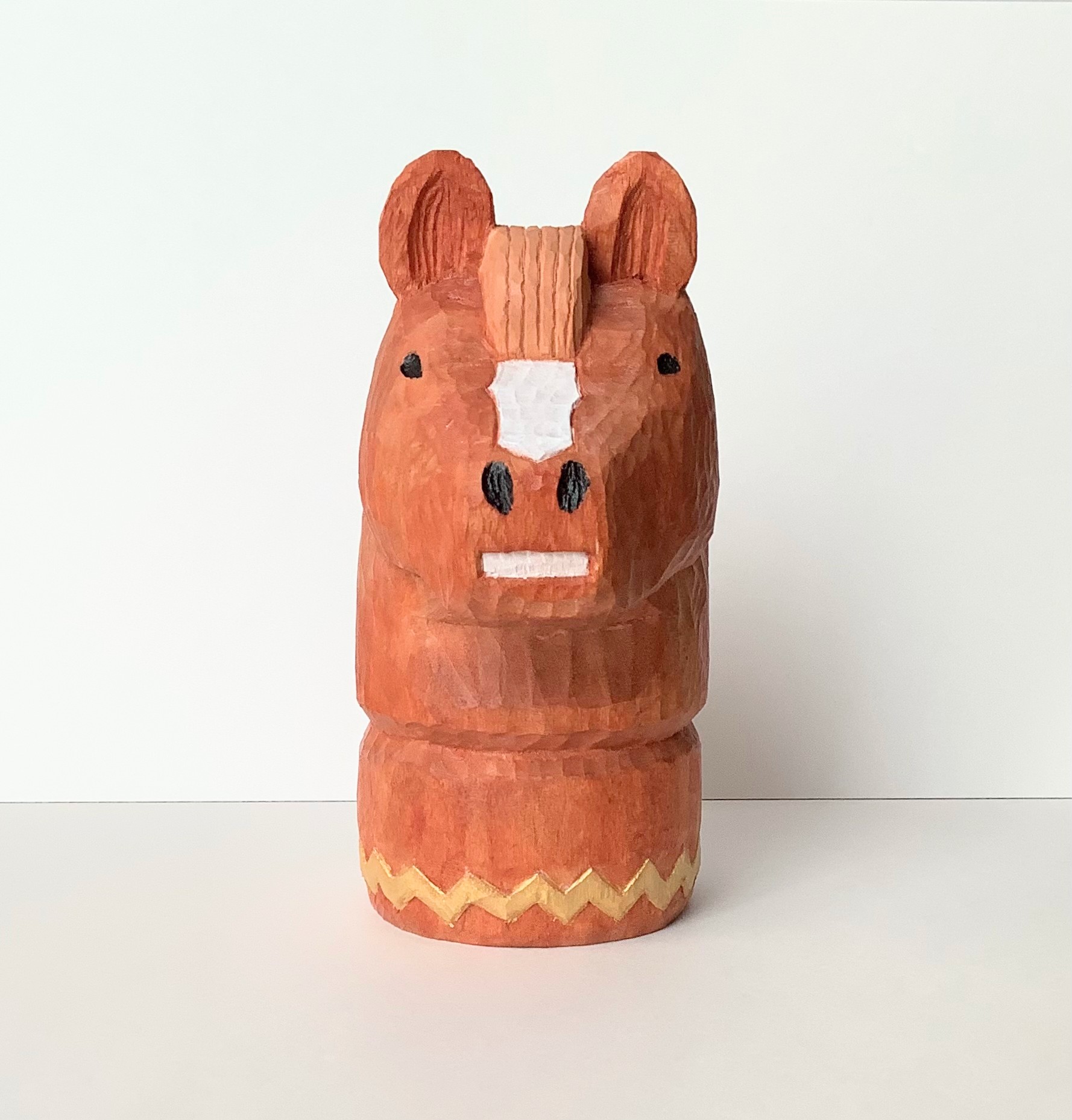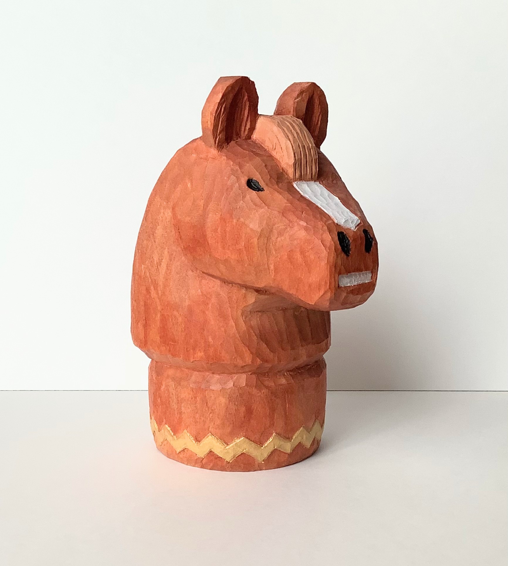 彫刻刀による手彫りです。アクリル絵の具で着彩しました。艶消し保護ニスで仕上げています。