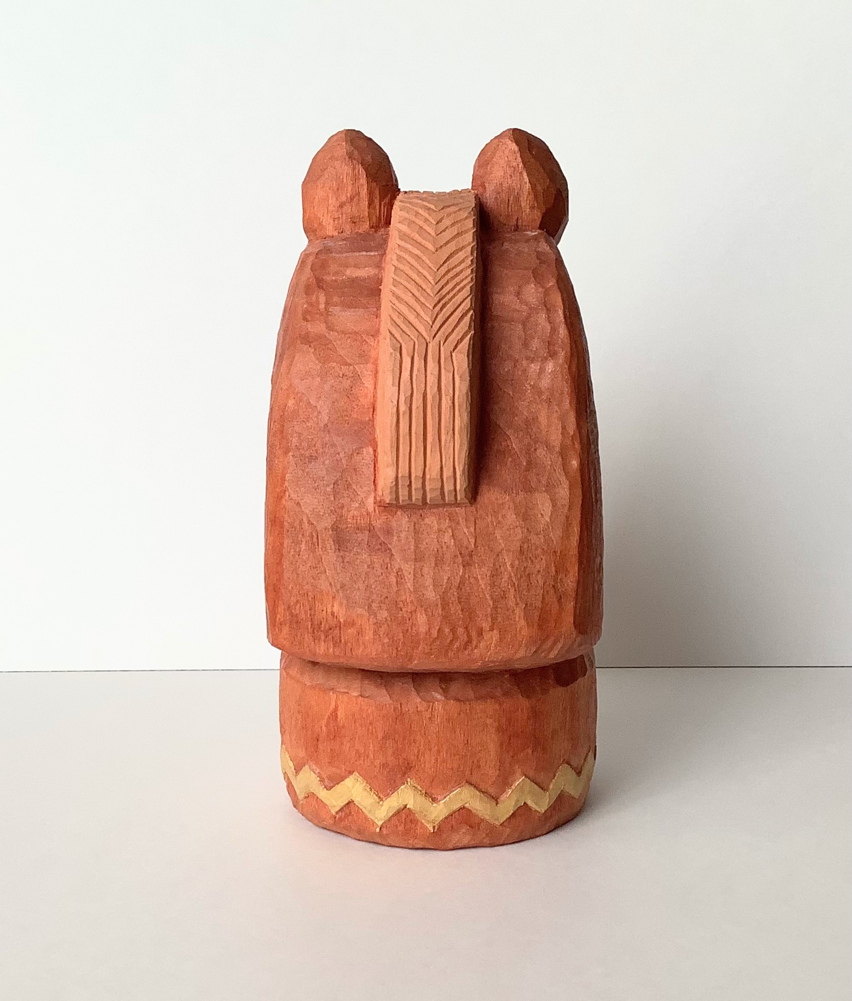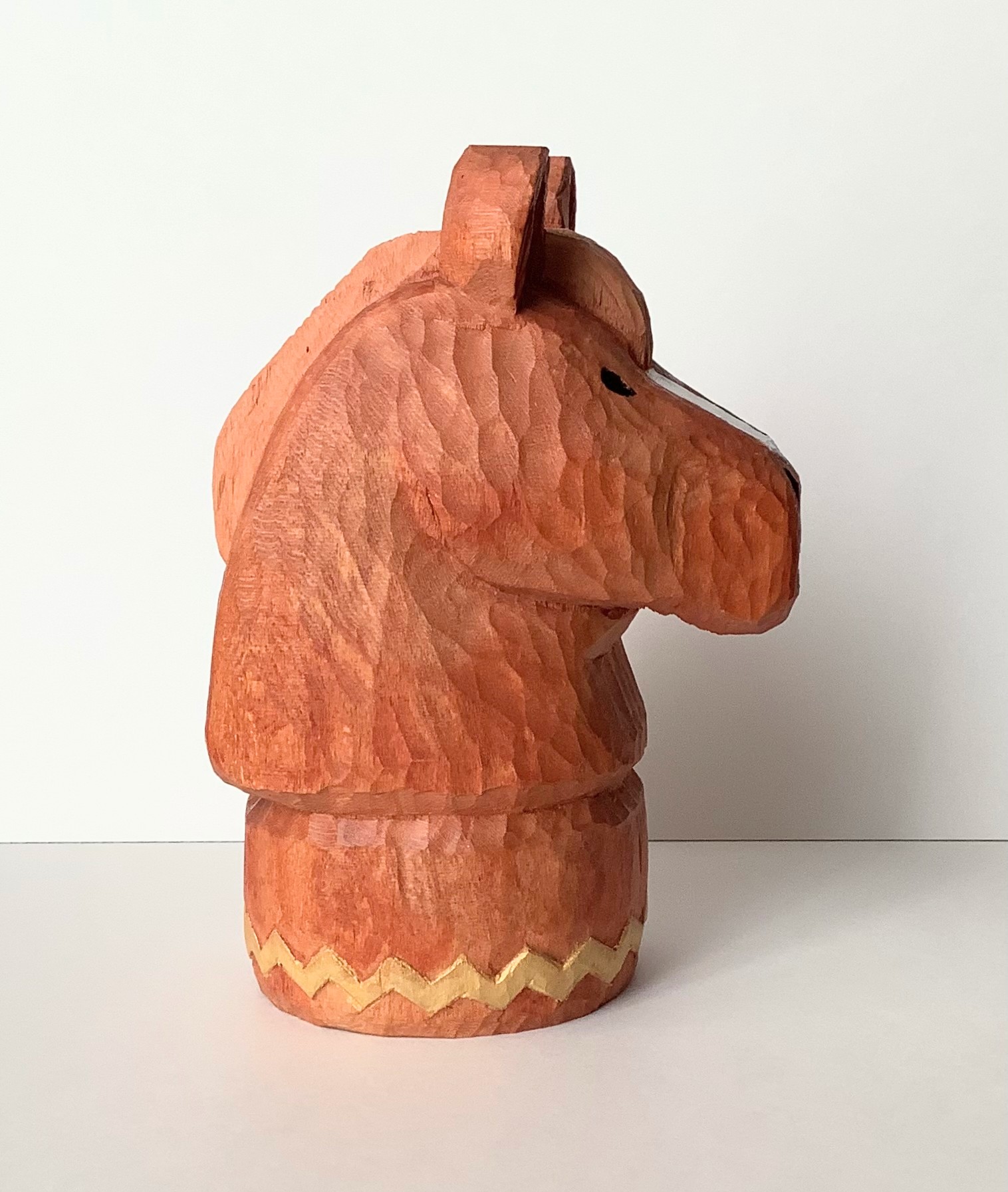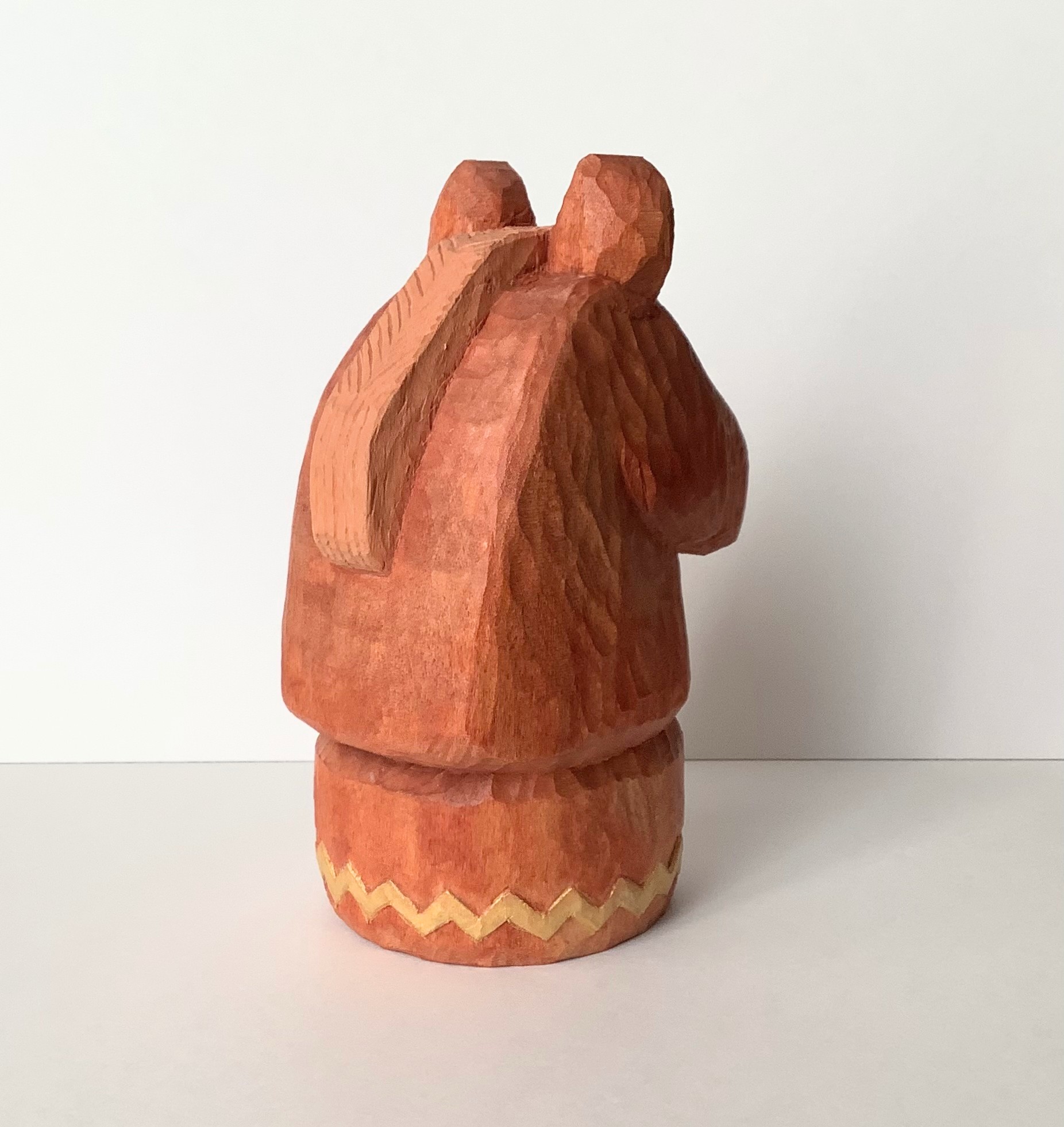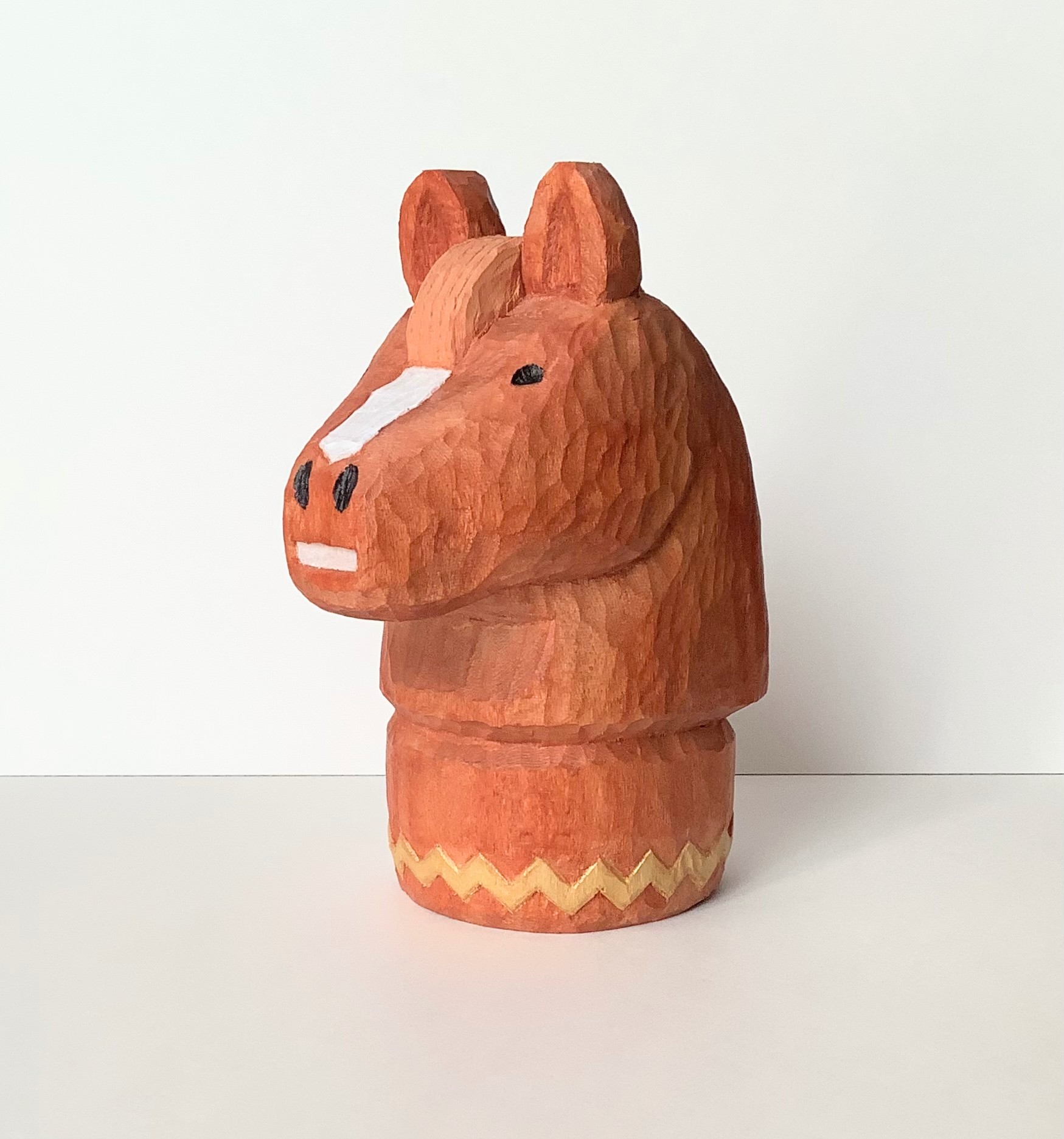 彫刻刀による手彫りです。アクリル絵の具で着彩しました。艶消し保護ニスで仕上げています。