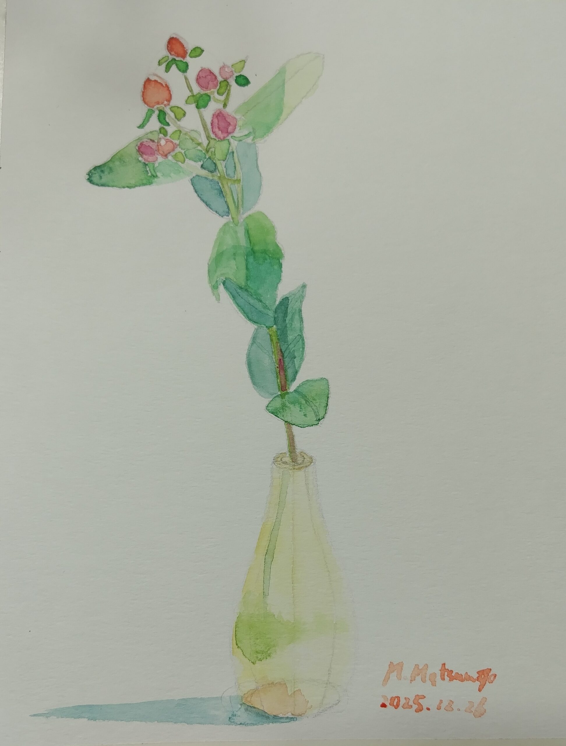 冬の植物を淡い透明水彩で仕上げました。お部屋にさりげなく温かな色味をお届けします。