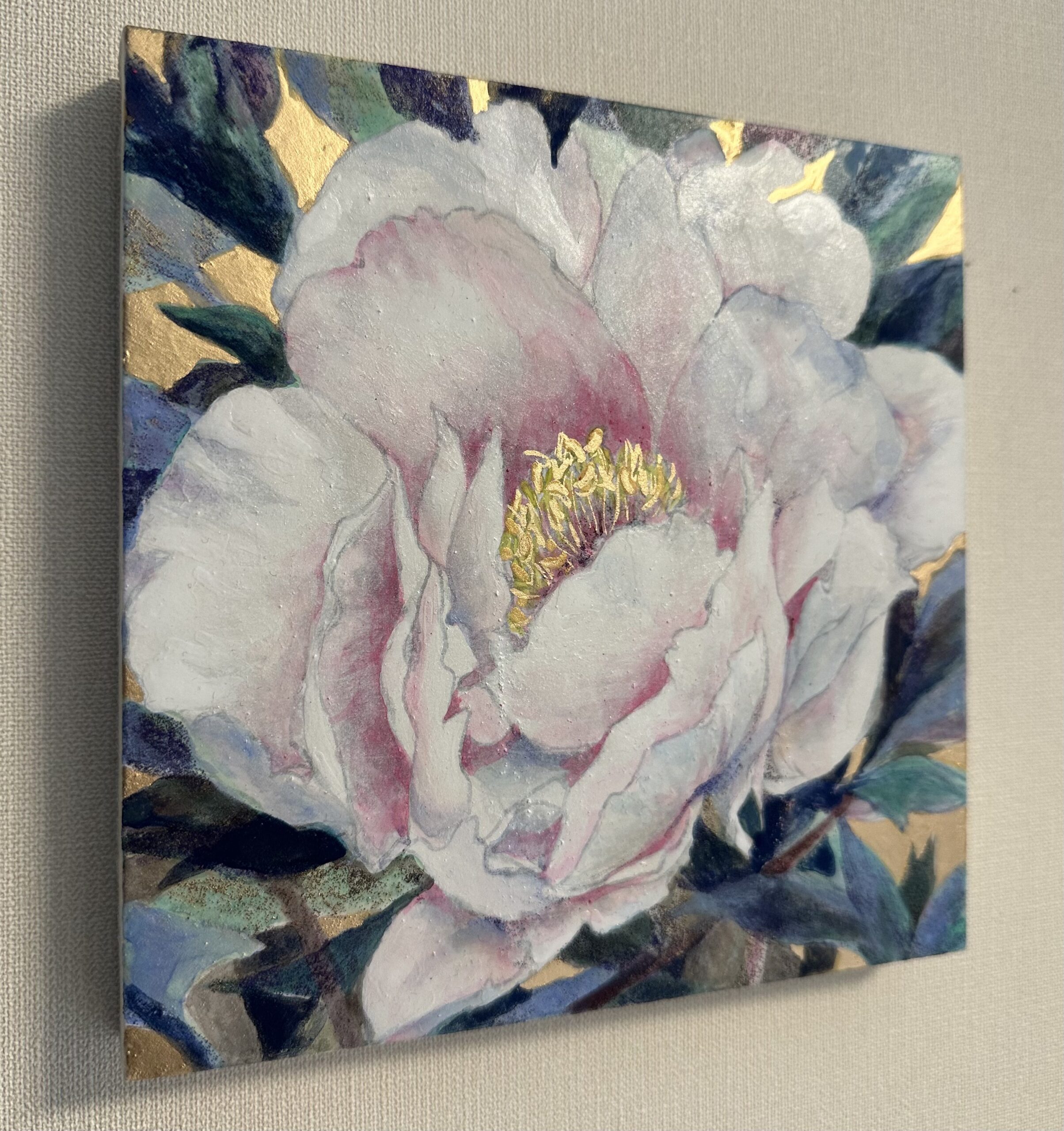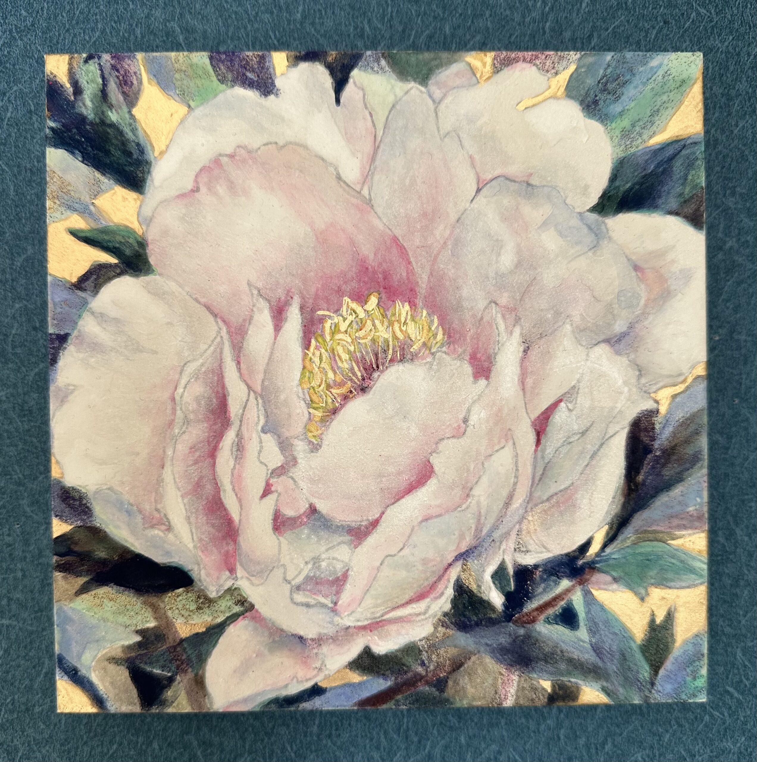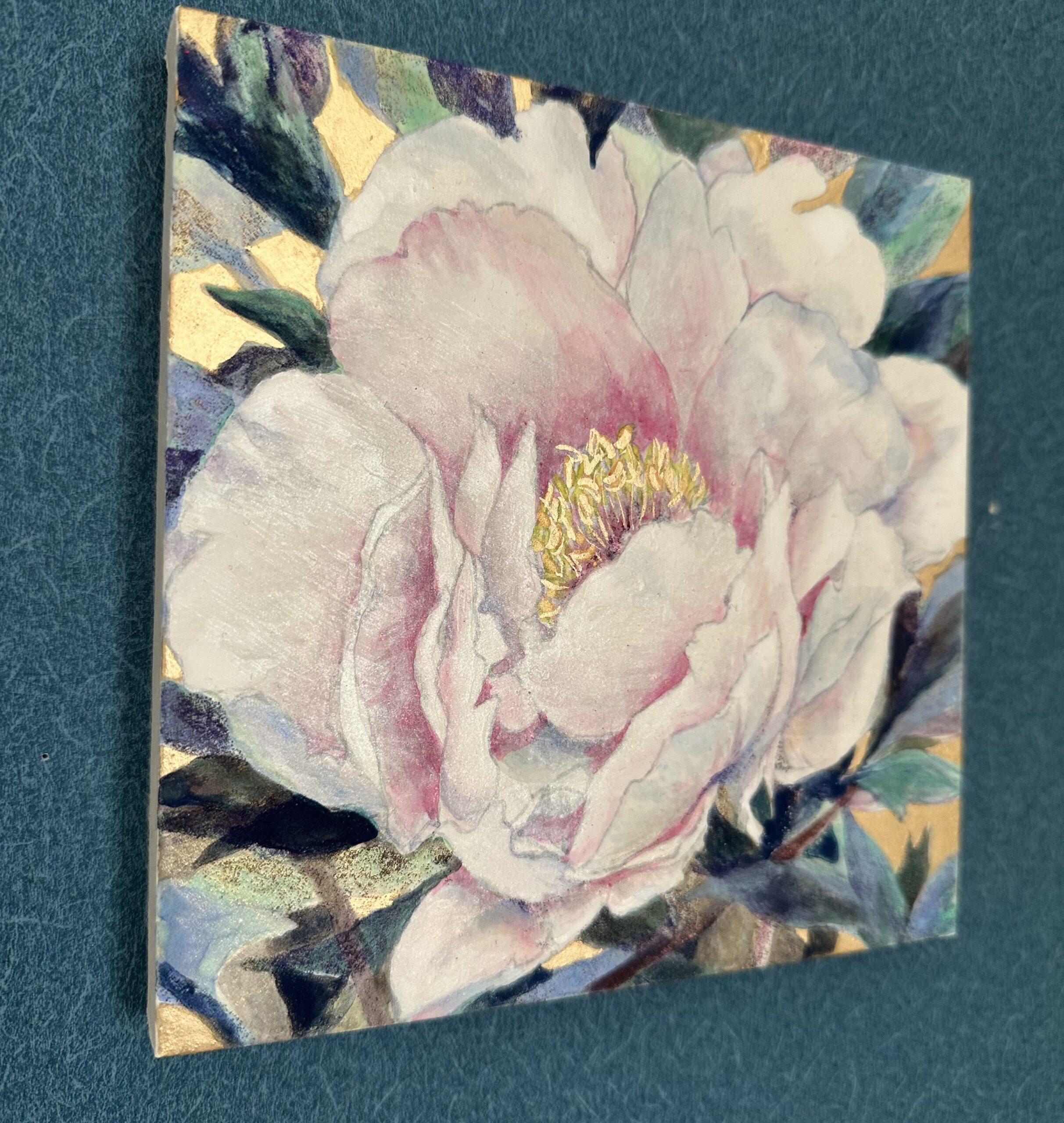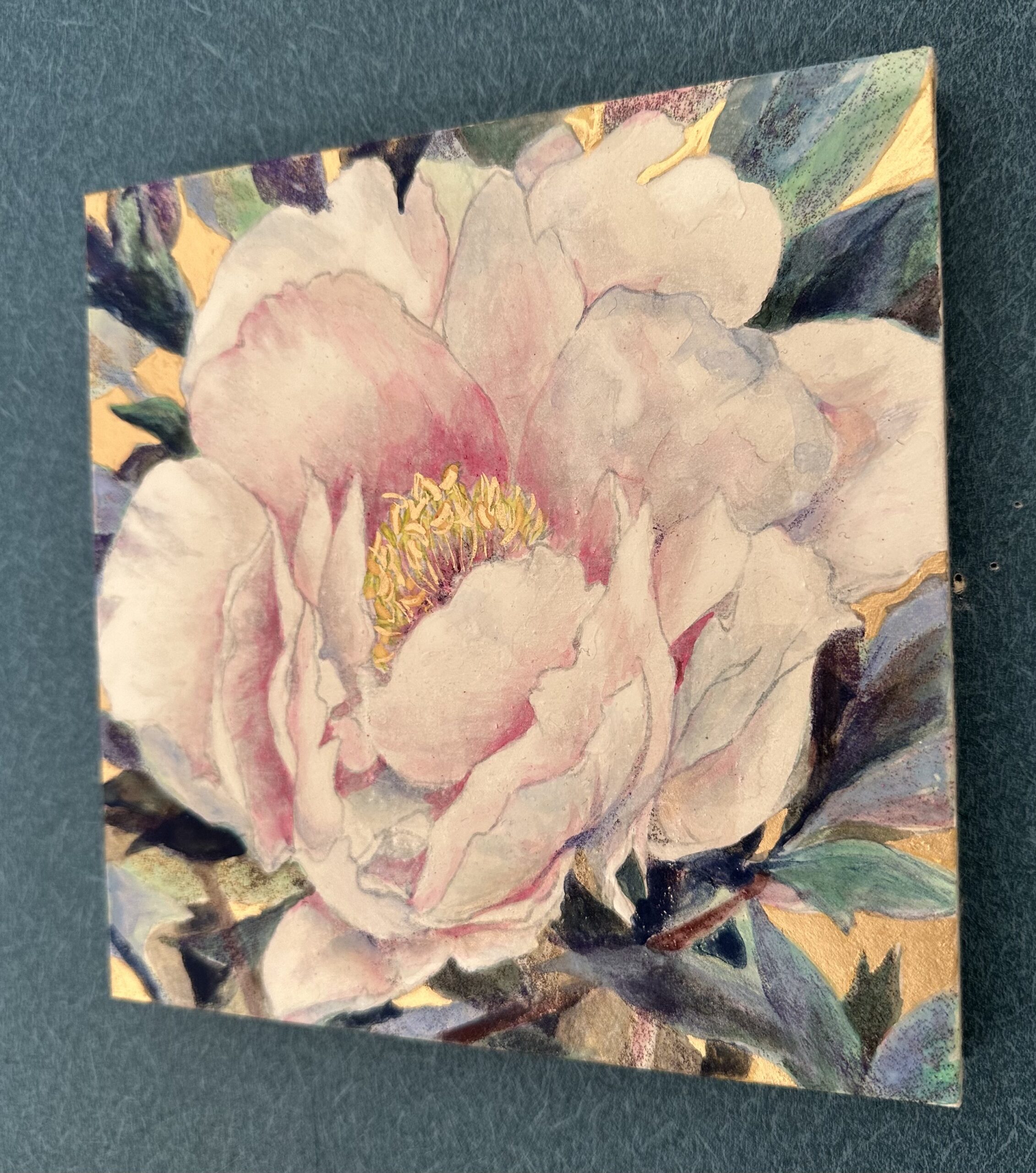 箔を使用した作品は、光のあたり方によって輝き方が変わります。日中の窓から入る自然光、夜の照明の光など、光の違いにより表情がかなり変わります。また、箔の変色を抑えるためのコーティングをしておりますが、時間経過とともに少しずつ色味が変化します。その変化もお楽しみいただけますと幸いです。