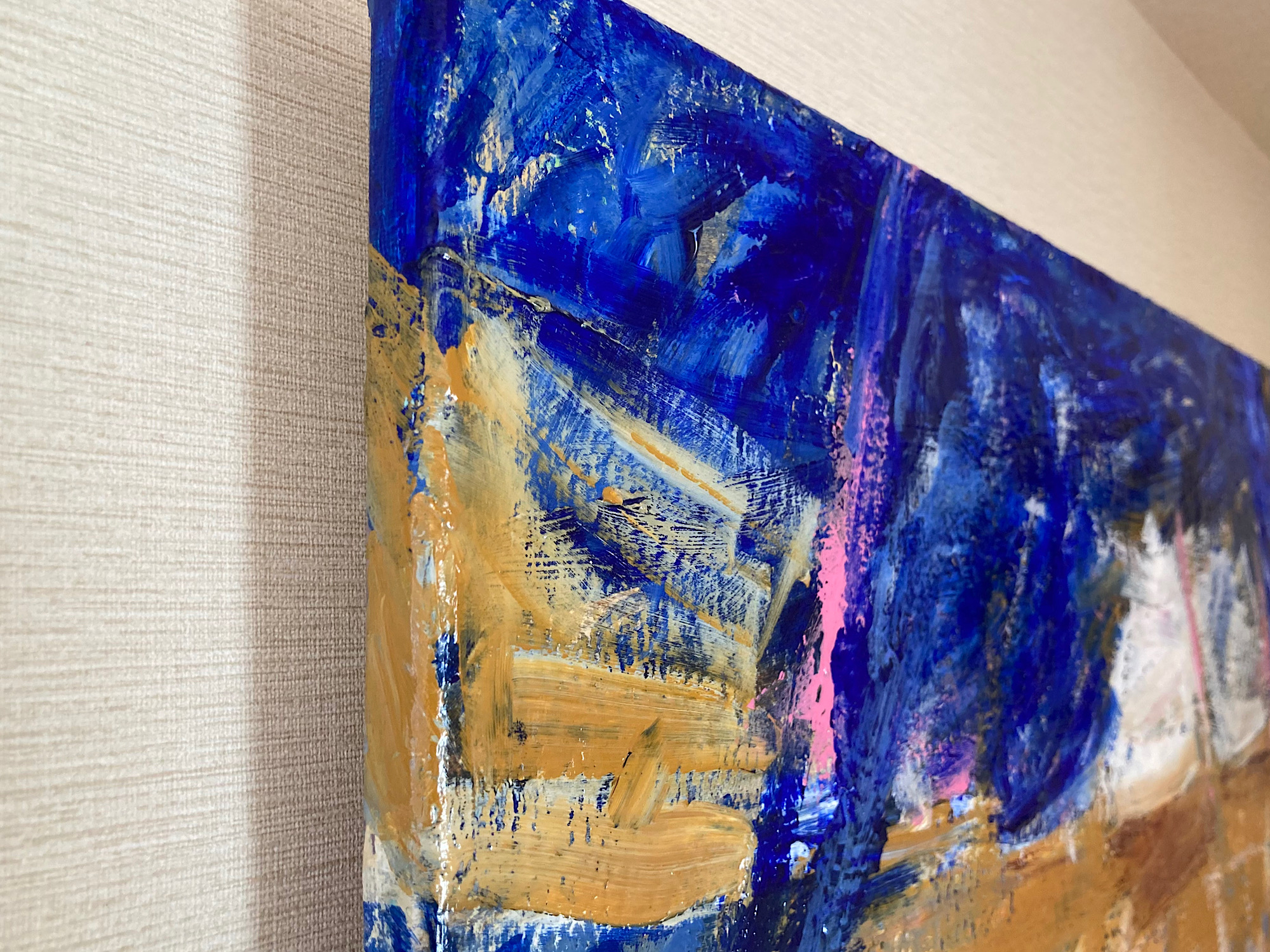 抽象画は、明確な答えのないテーマに適した表現形態です。個々の感性によって、またその時々によっても解釈は異なります。暖かな光が差し込む時に窓から外を眺めれば、生き生きとして色彩に富んだ景色が目に映るかもしれません。気持ちが沈んでいる時には、木々の香りを含んだ風が心を癒してくれるかもしれません。私の作品を、そんな「窓辺の景色」の一つとして、日々の暮らしに取り入れていただけたら幸いです。