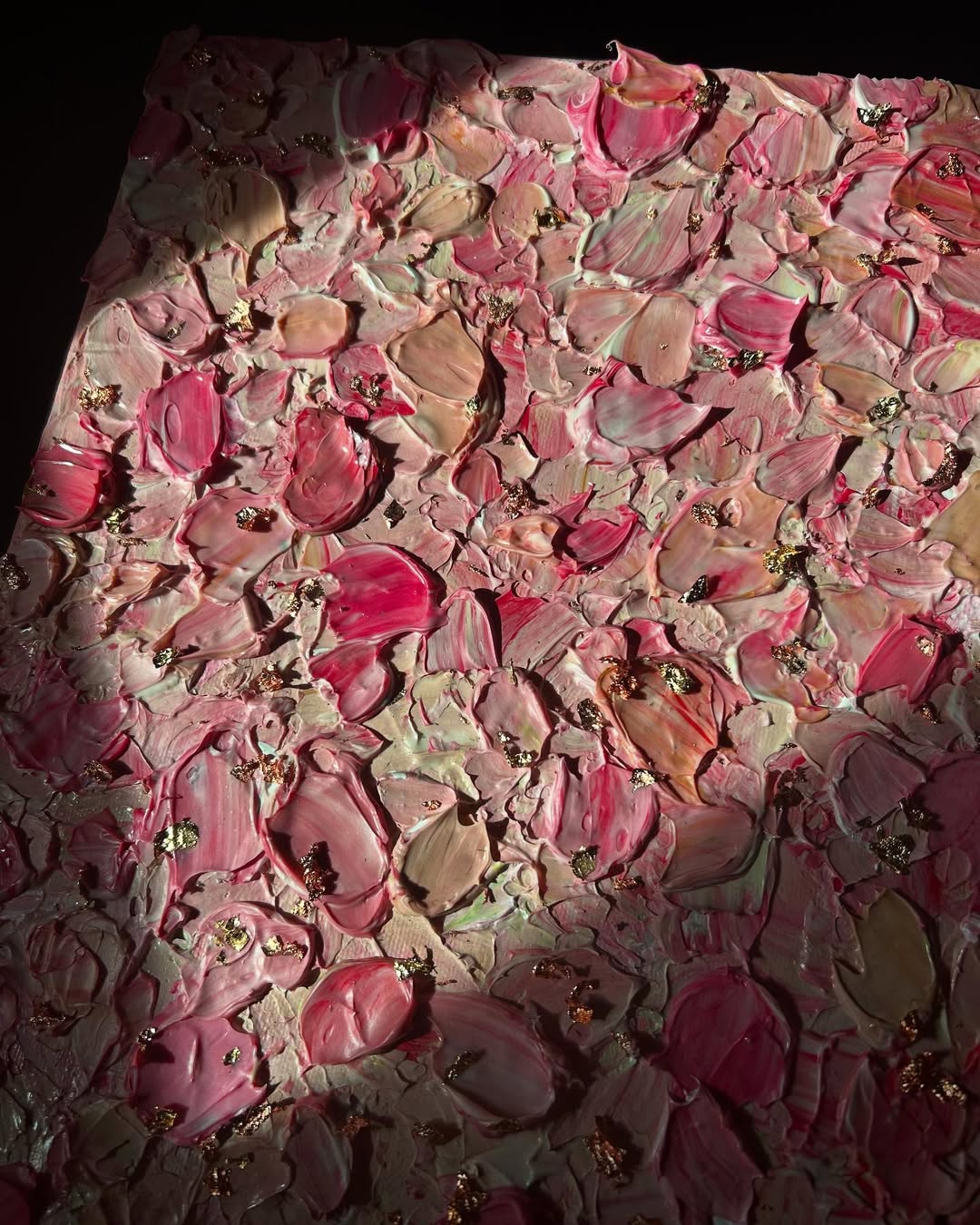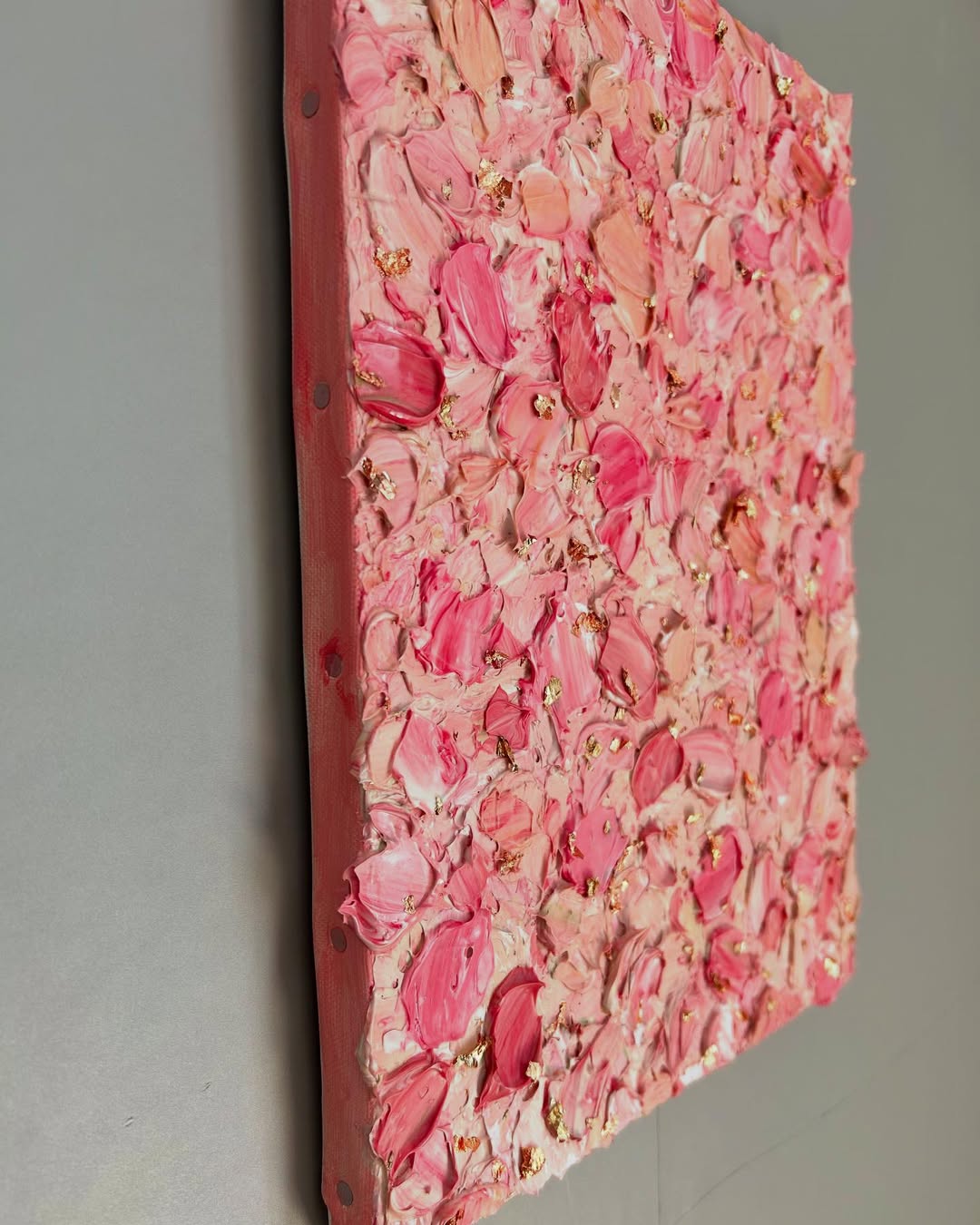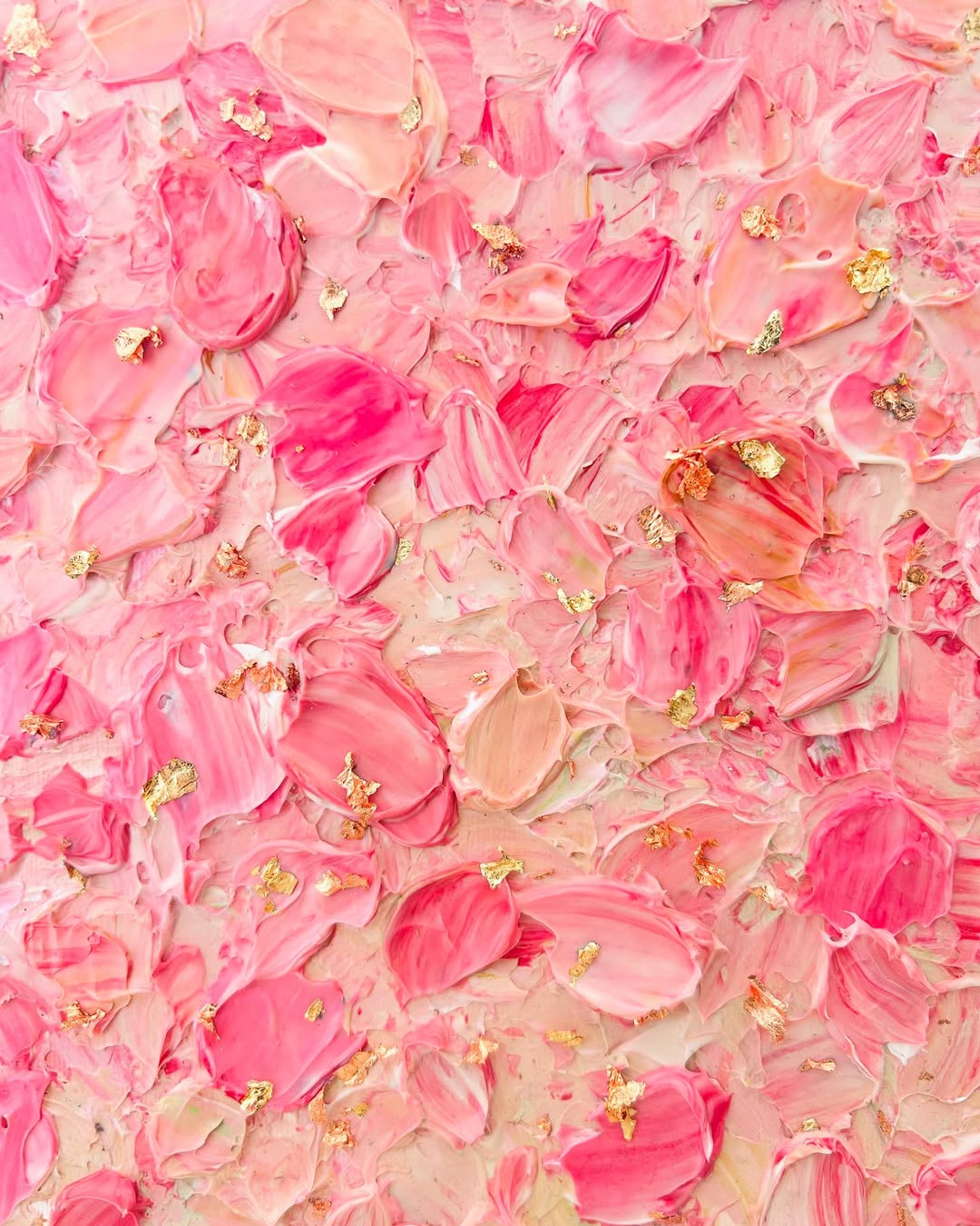 舞い散る桜吹雪や、花びらの絨毯、花筏をイメージして描きました。