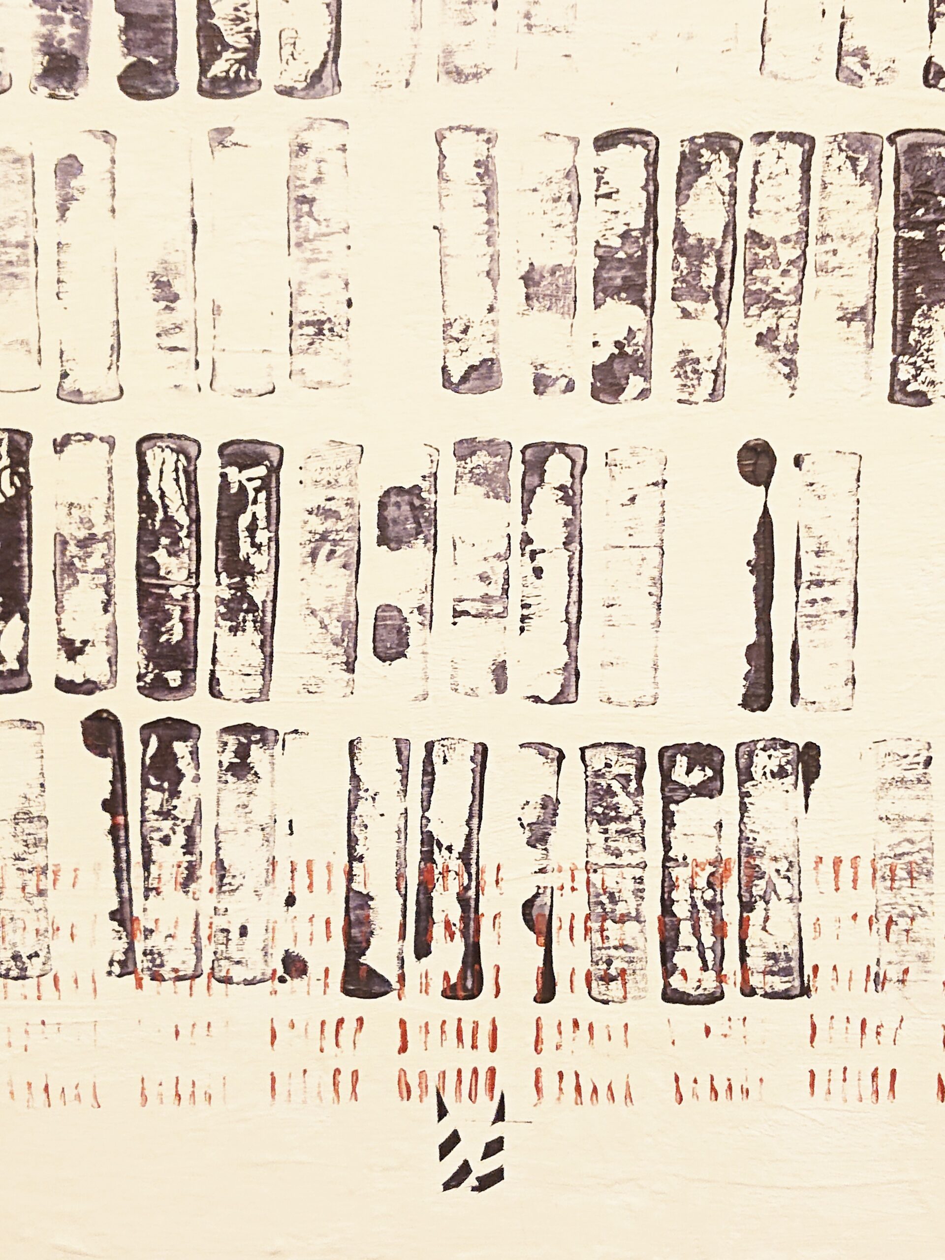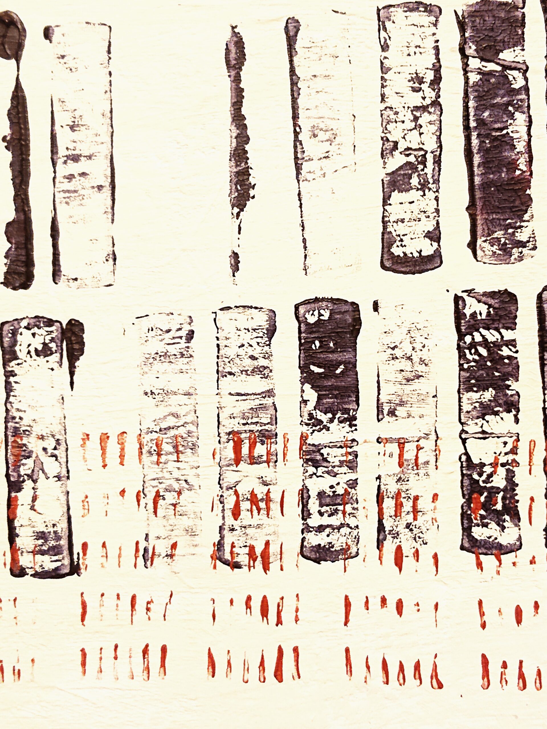 身の回りにある工具をつかい転写しています。反復や繰り返しには、夢中にさせる何かがあり、そこには楽しさと、ある域を越えた時の満足感、伴う延々と続く苦痛があります。