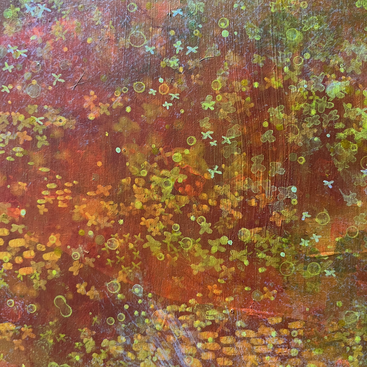 制作の途中では、自分が何をしているのか分からなくなる時間が、何度もあります。 それでも手を動かし続けて、最後にこの絵を見たとき、もがいていた頭の中が、すっと静かになりました。 「我に返った」ような感覚と一緒に気づいたら涙が出ていました。 あれは、安堵の涙だったのかもしれません。 言葉の力を少し弱めて、目の前の景色から、概念が抜けていく。 この絵は、そんな場所を思い出させてくれました。