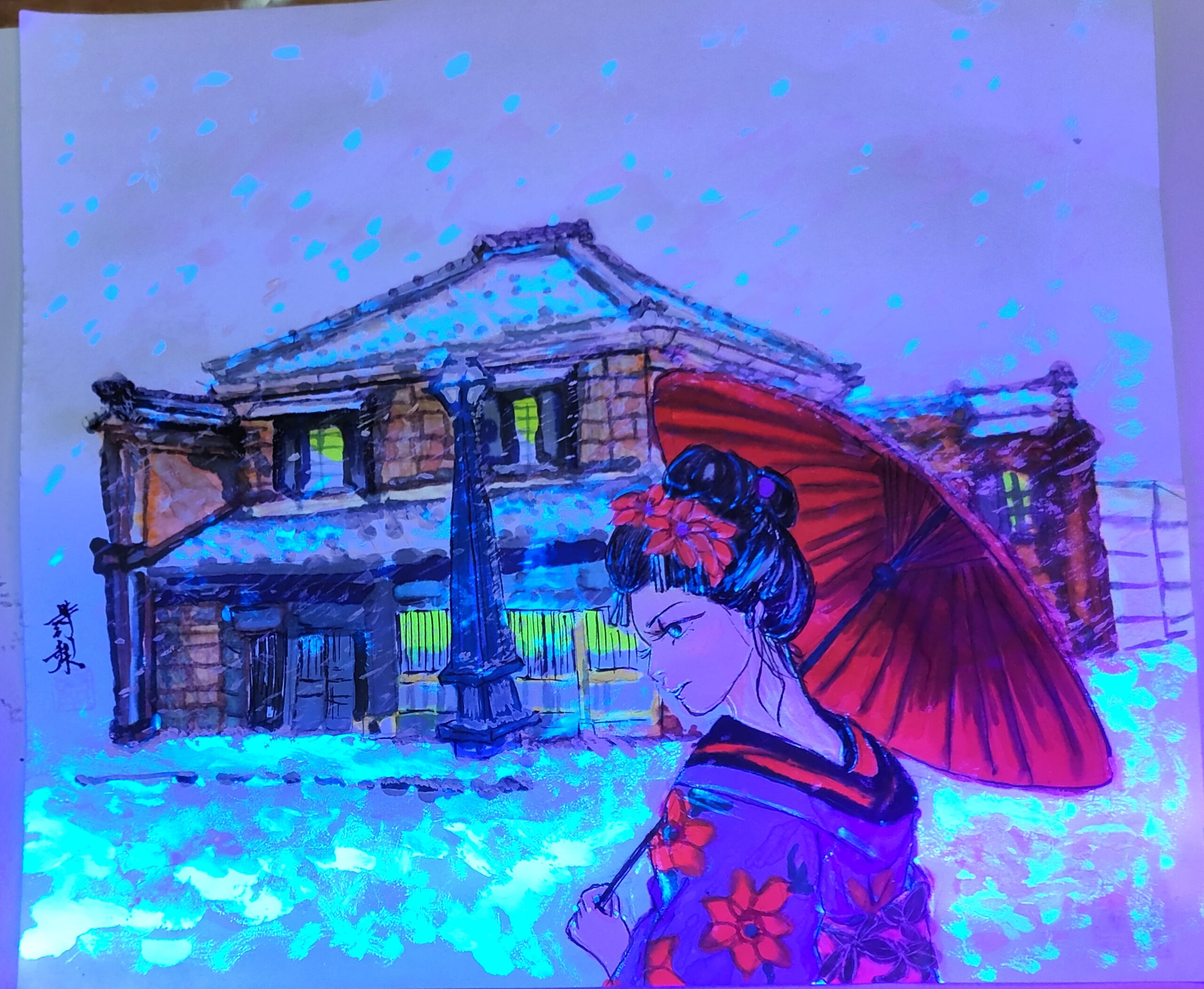ブラックライトをあてると、光る演出がされています。楽しんでみてもらえるとうれしいです。