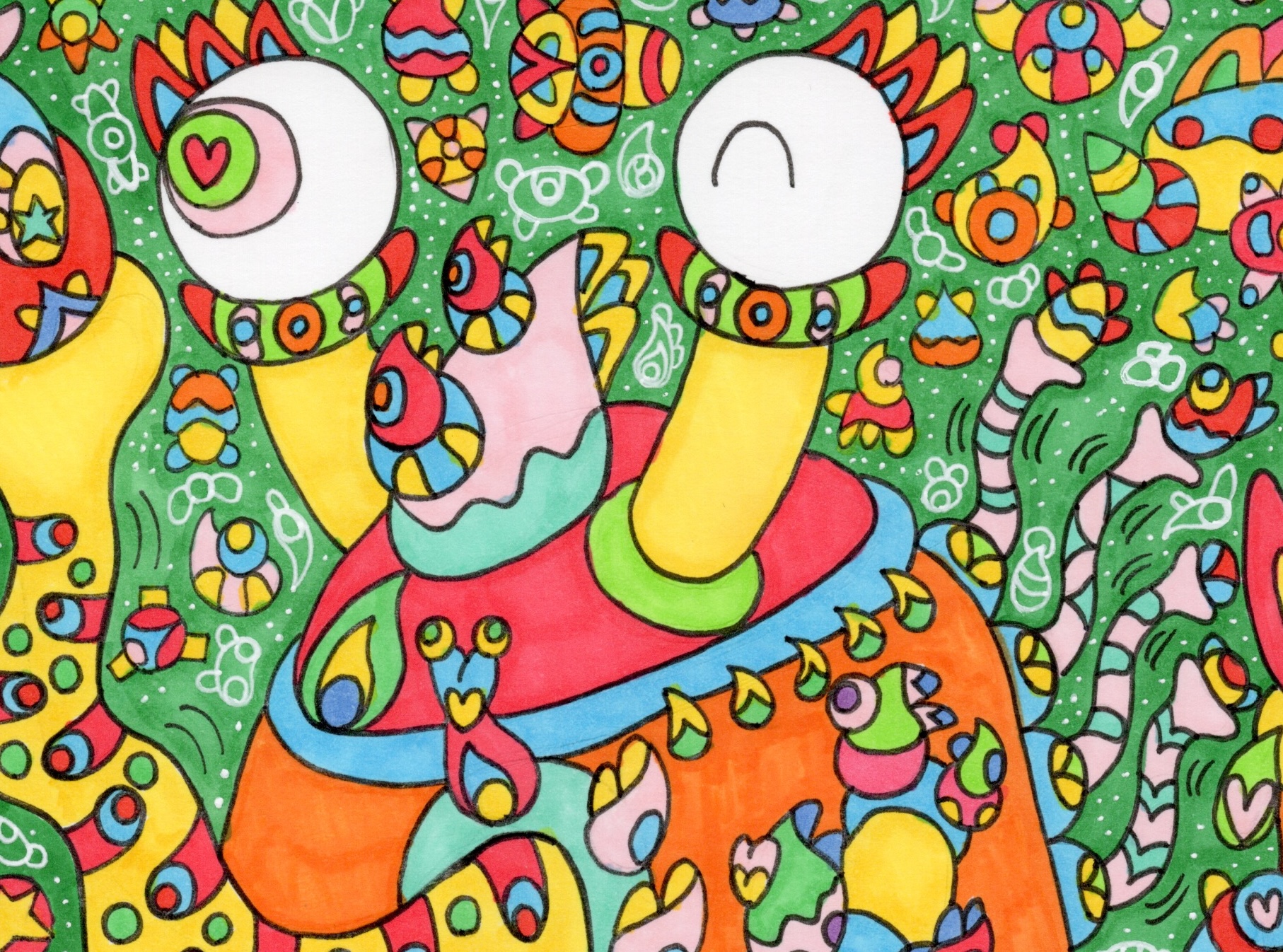 都市が大好きな竜のアナログタイプの第三弾です。この竜は、都市に浮かんでいるドローンのようなメカが大好きで、長く伸ばせる目でそれらを見つけ出し、長く伸びる口や長く伸びる触手で掴んで遊んでいます。